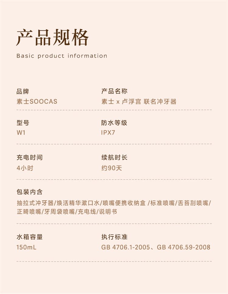 素士冲牙器水牙线便捷式家用口腔清洁洗牙神器卢浮宫联名礼盒W1