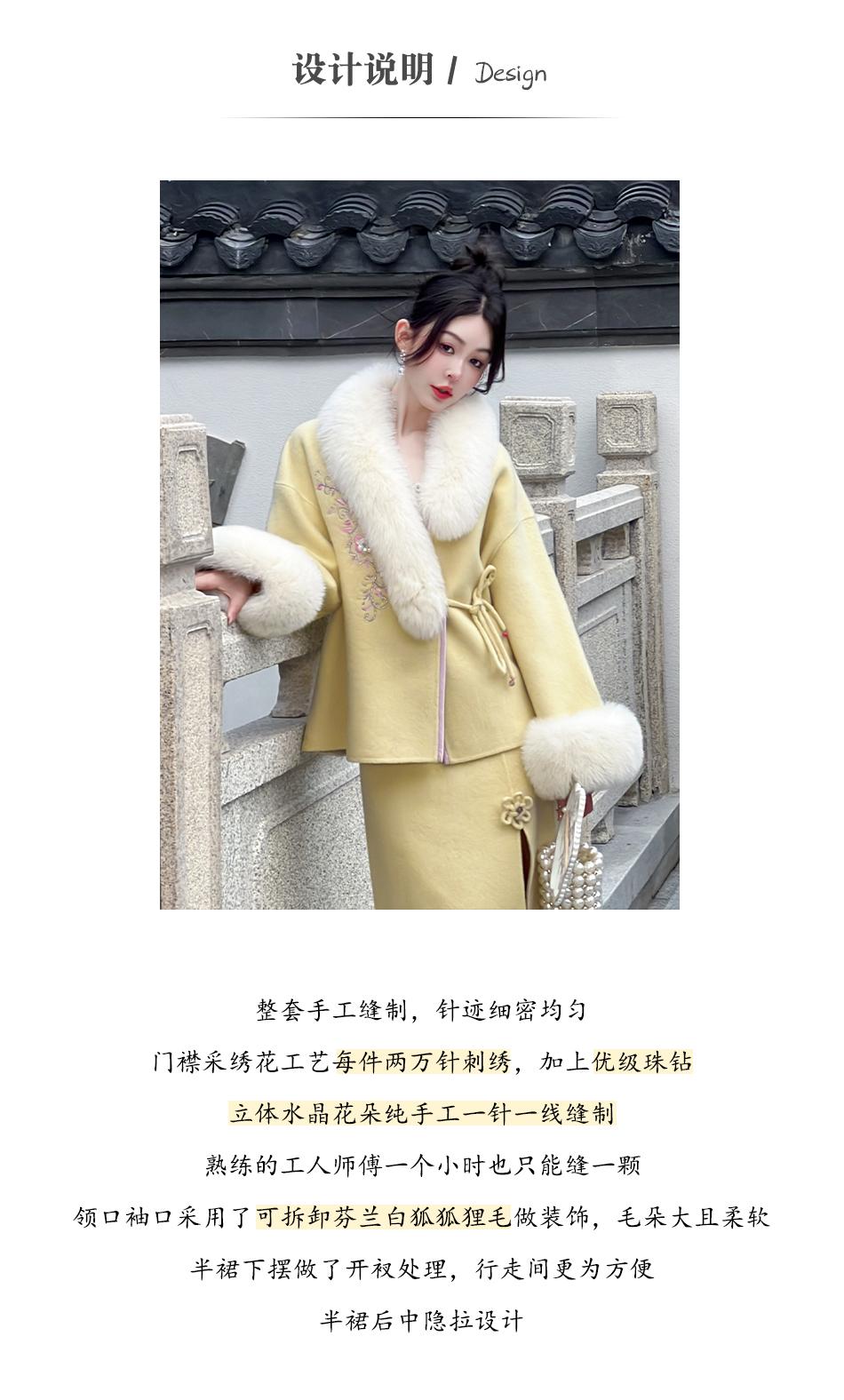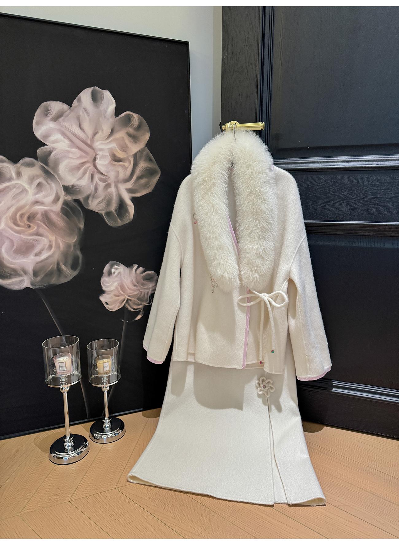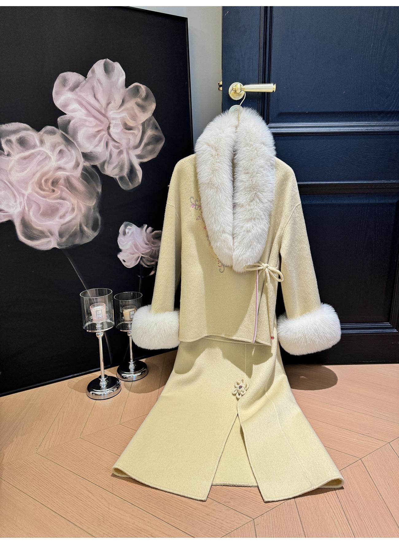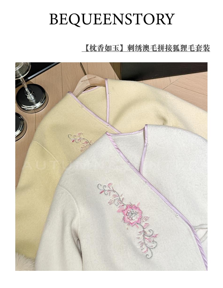 BeQueenStory【枕香如玉】新中式刺绣纤细澳毛拼接狐狸毛毛呢套装