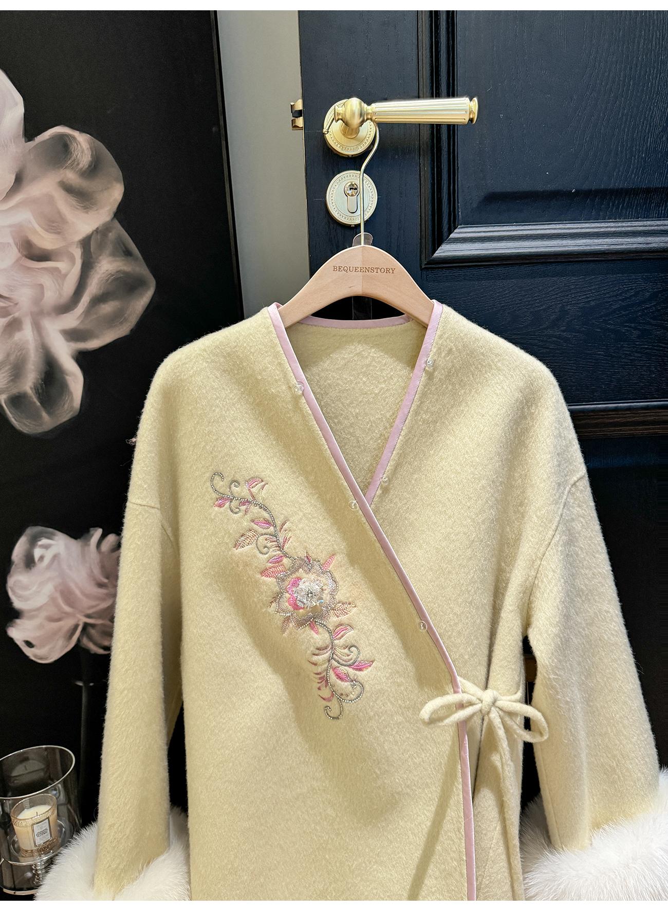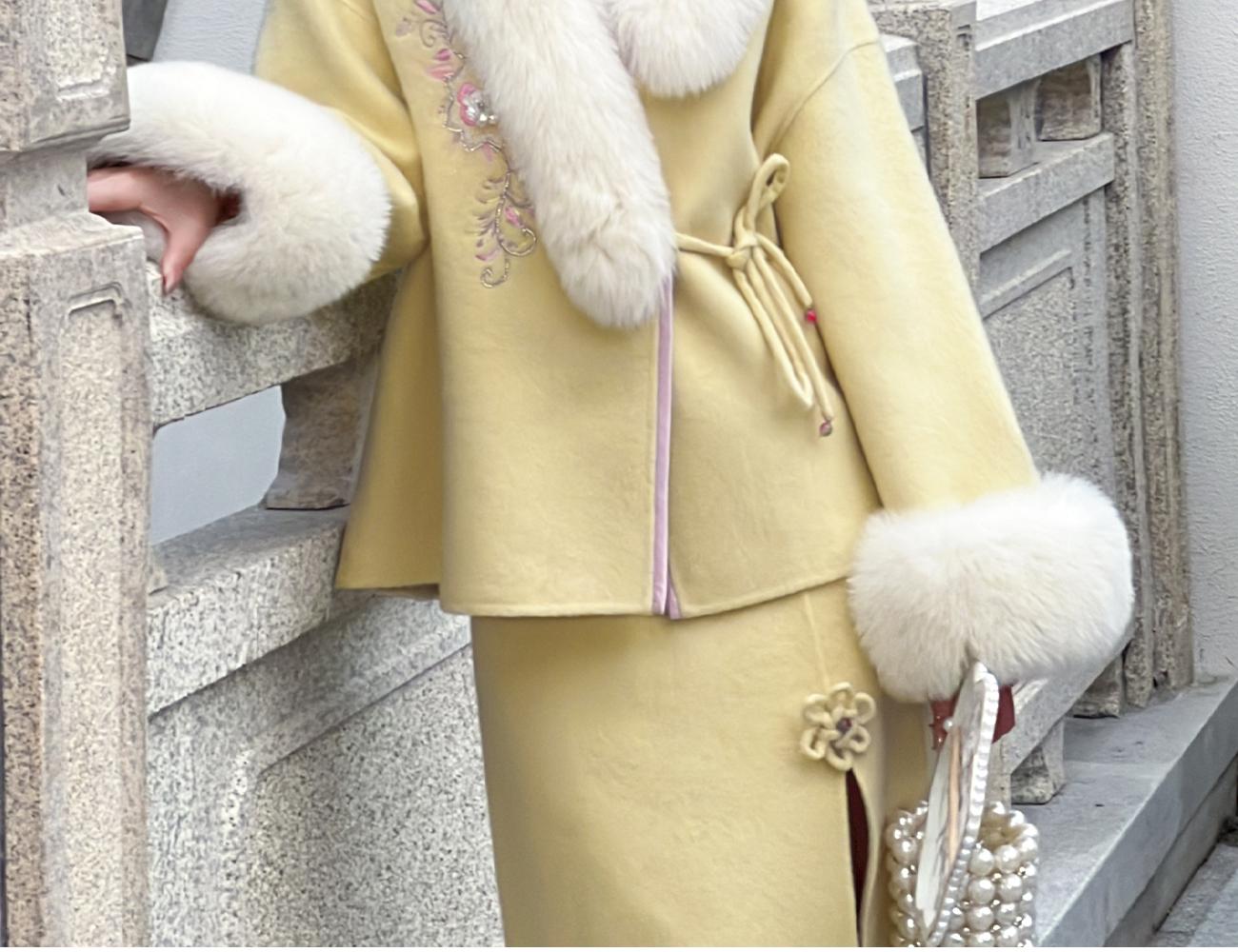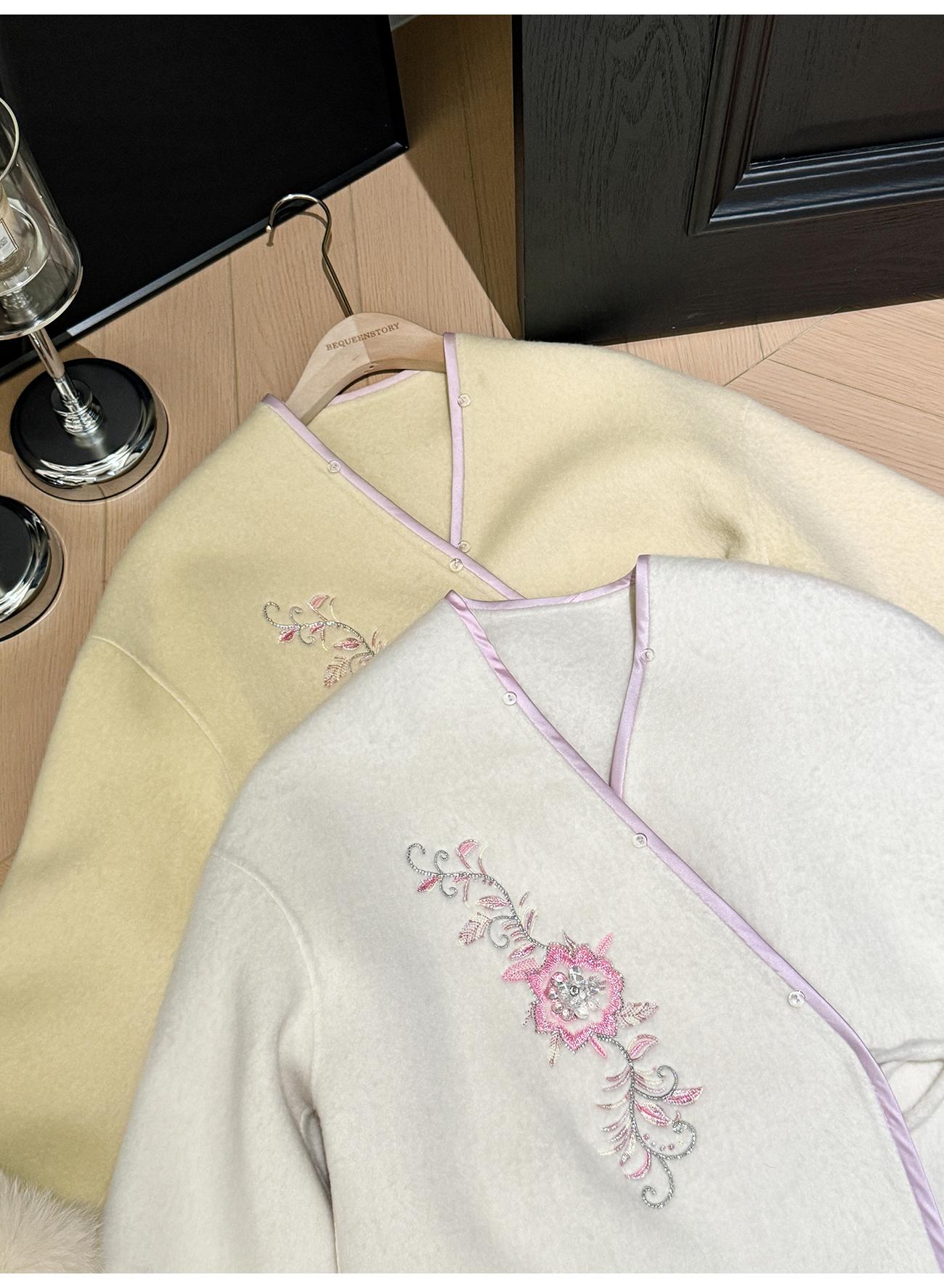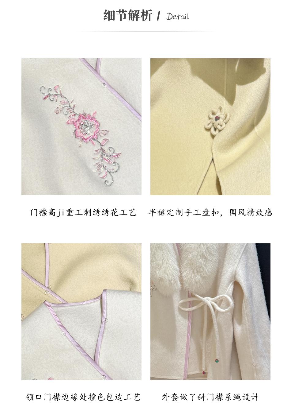 BeQueenStory【枕香如玉】新中式刺绣纤细澳毛拼接狐狸毛毛呢套装