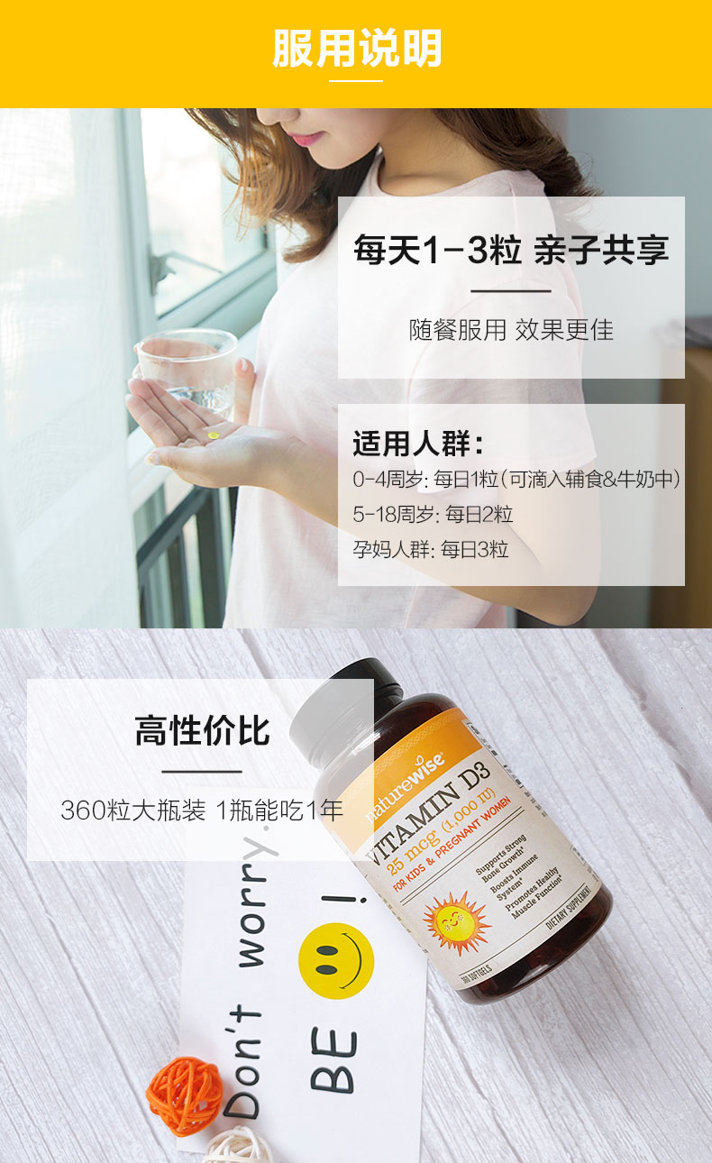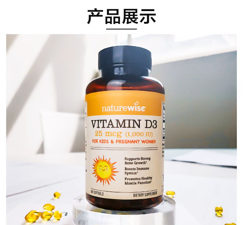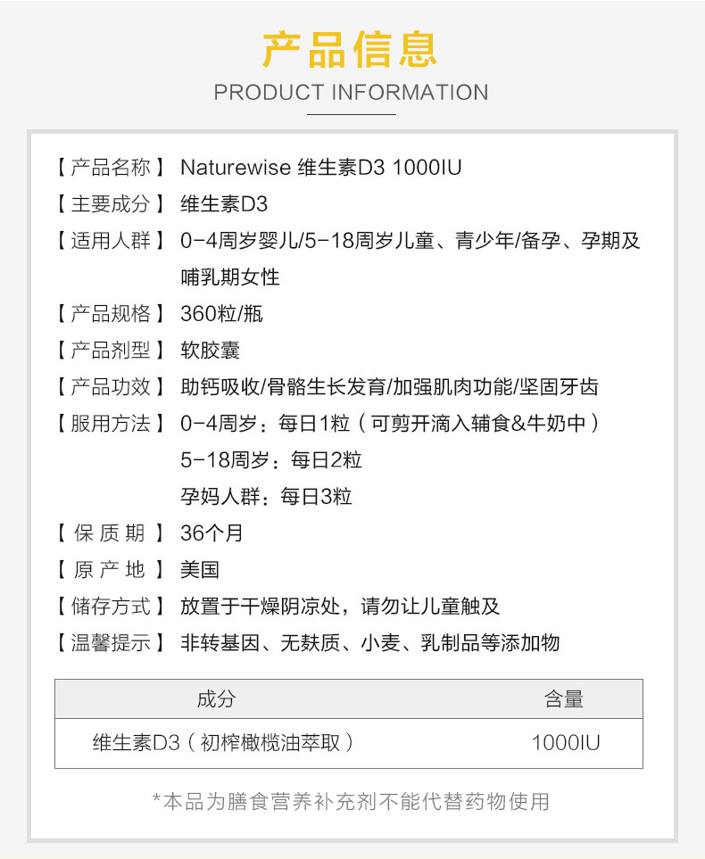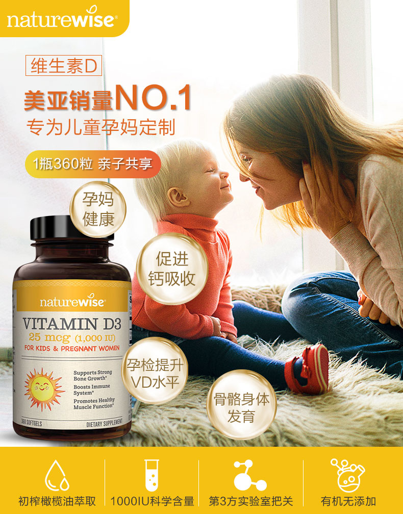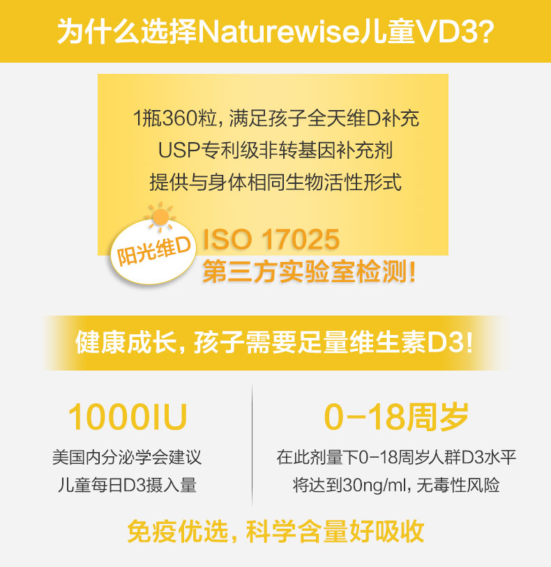 【1000IU】Naturewise阳光维生素D3 (1~12岁 每日一粒) A-3898(效期28-3)