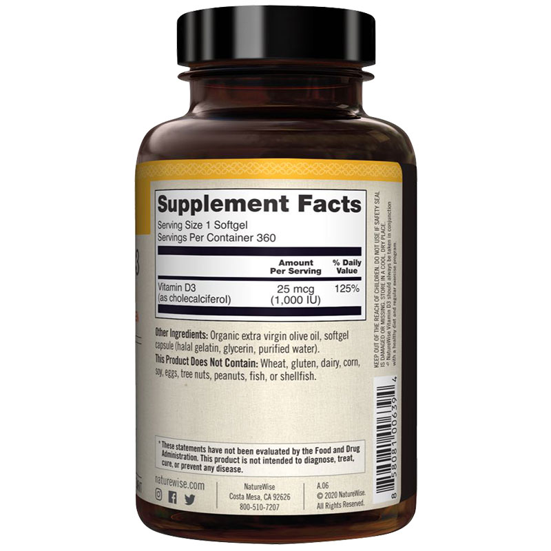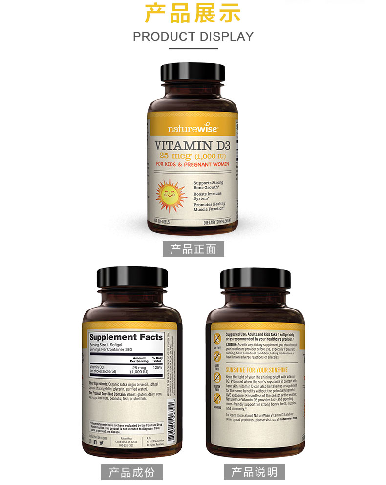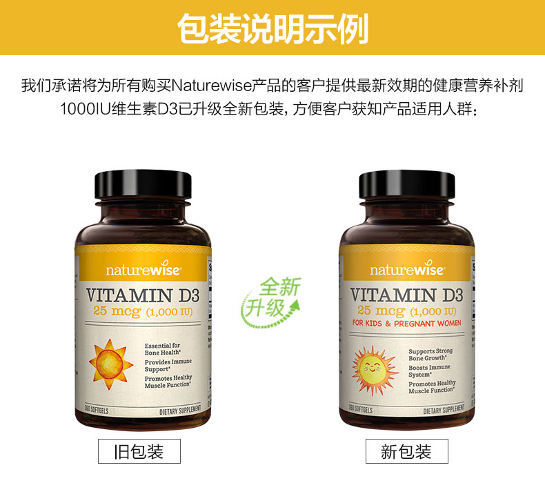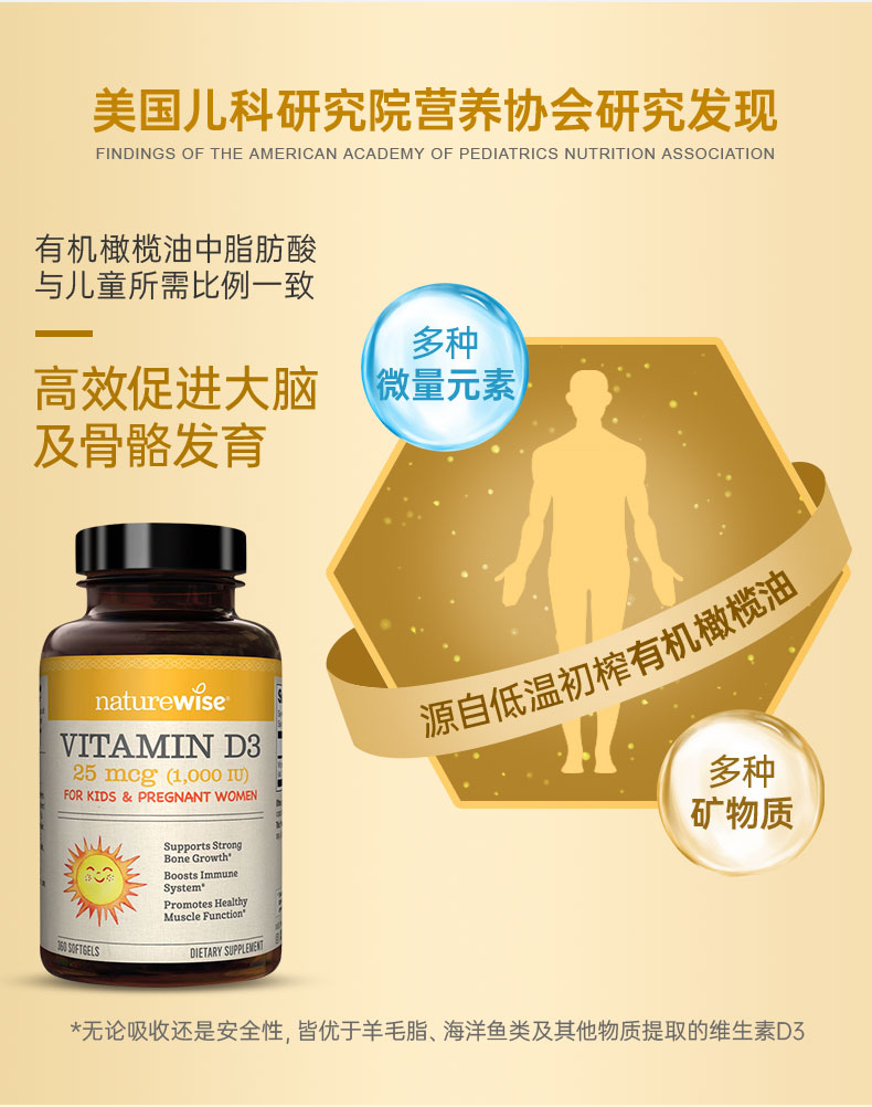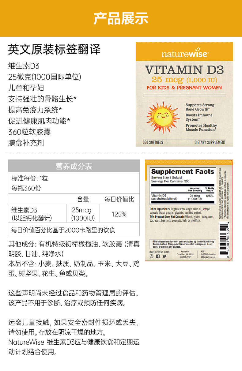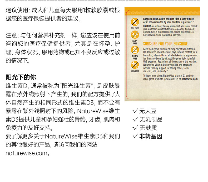 【1000IU】Naturewise阳光维生素D3 (1~12岁 每日一粒) A-3898(效期28-3)