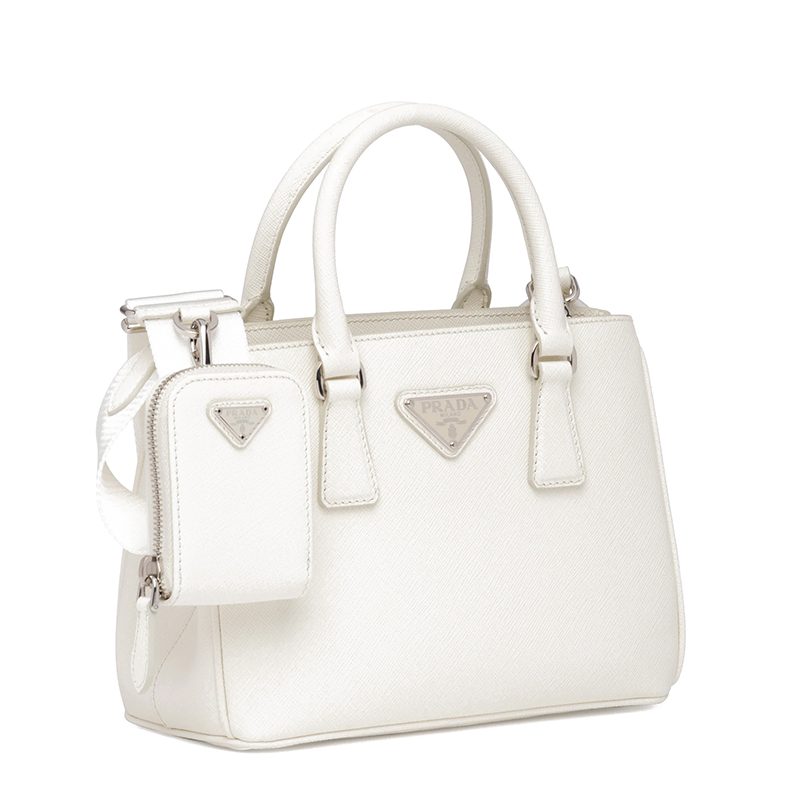 【包税】PRADA/普拉达 21年秋冬新款Galleria系列 女士白色Saffiano皮革附徽标印花可拆卸调节编织肩带手提单肩包1BA296_NZV_F02EO_V_V21