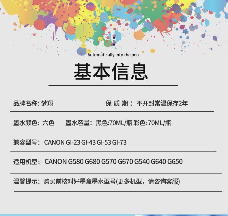 兼容佳能CANON GI-83 GI-73 GI-53 GI43 G580 G680打印机墨水GI83