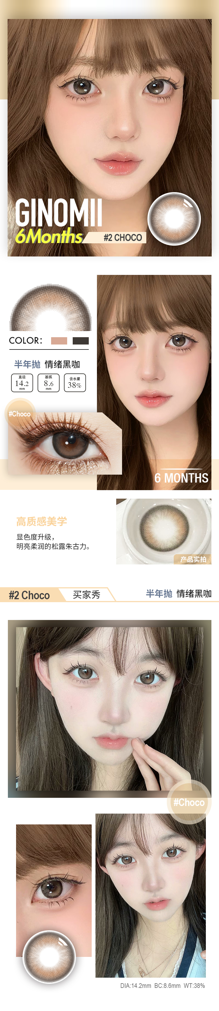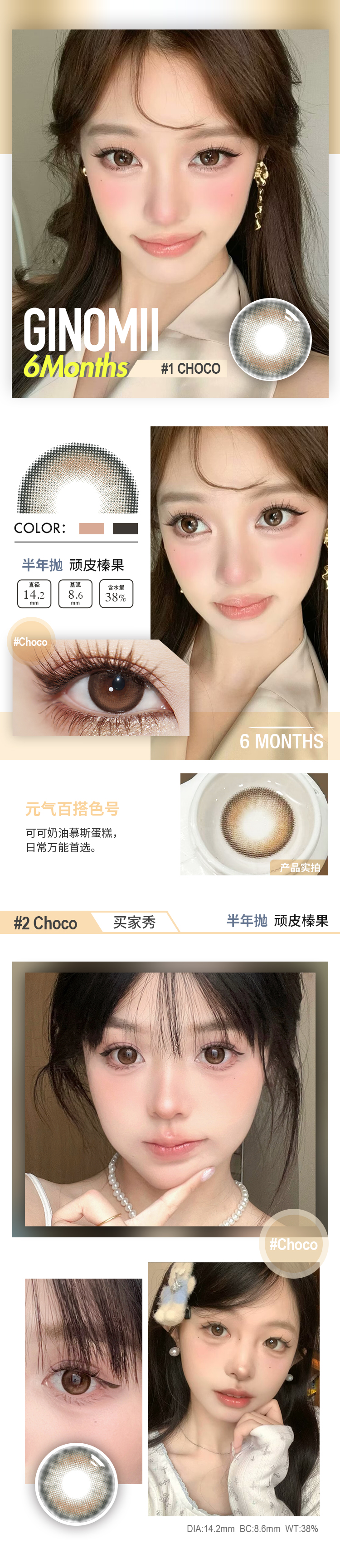 GINOMII 半年抛 顽皮榛果 / 情绪黑咖 (巧棕黑 14.2mm 最高800度)