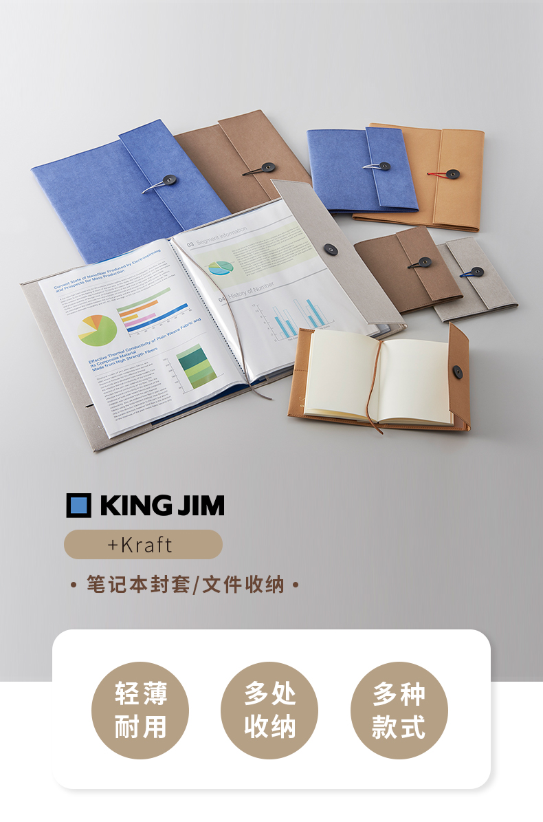 日本KINGJIM锦宫笔记本封套A4文件夹资料收纳B5手帐封皮简约复古本子保护套