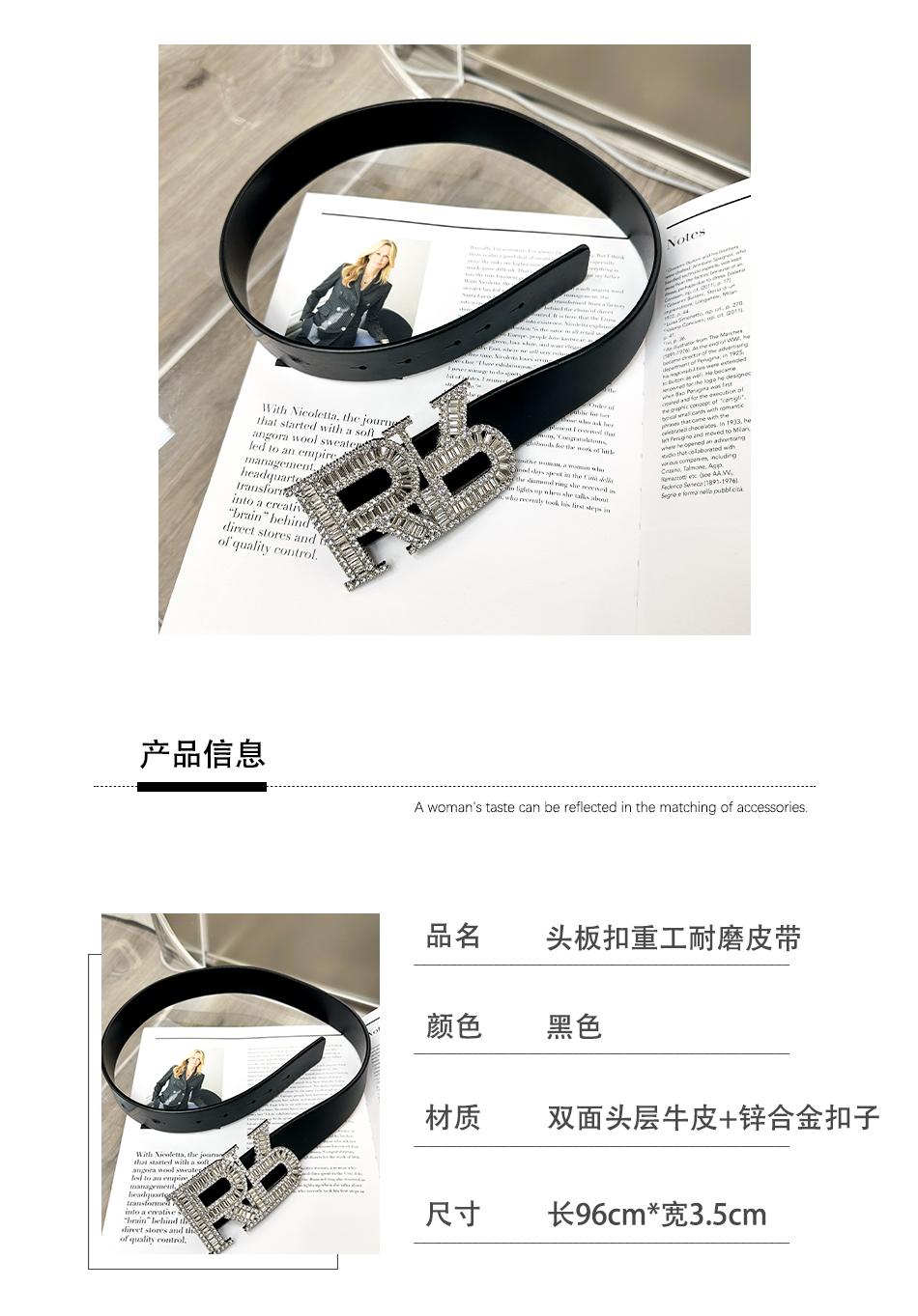 BeQueenStory 头层牛皮锌合金扣头板扣重工耐磨设计感腰带皮带