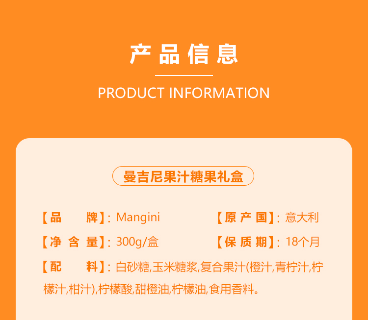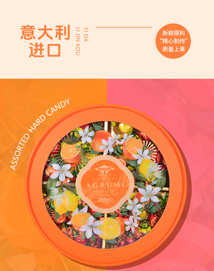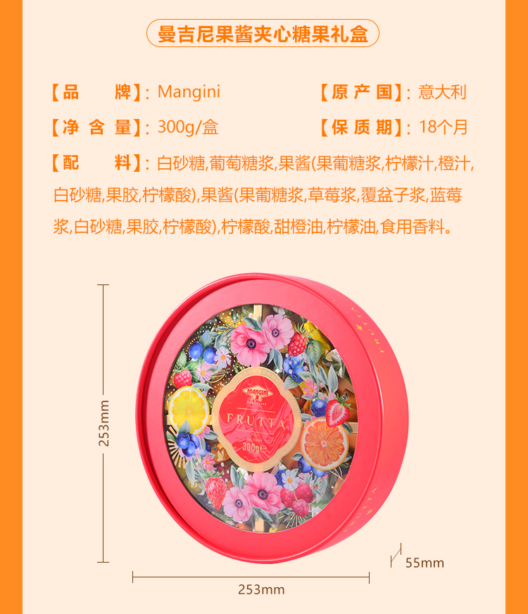 意大利曼吉尼果汁糖果/果酱夹心糖果礼盒300g 精致典雅送礼佳选 063284/063285