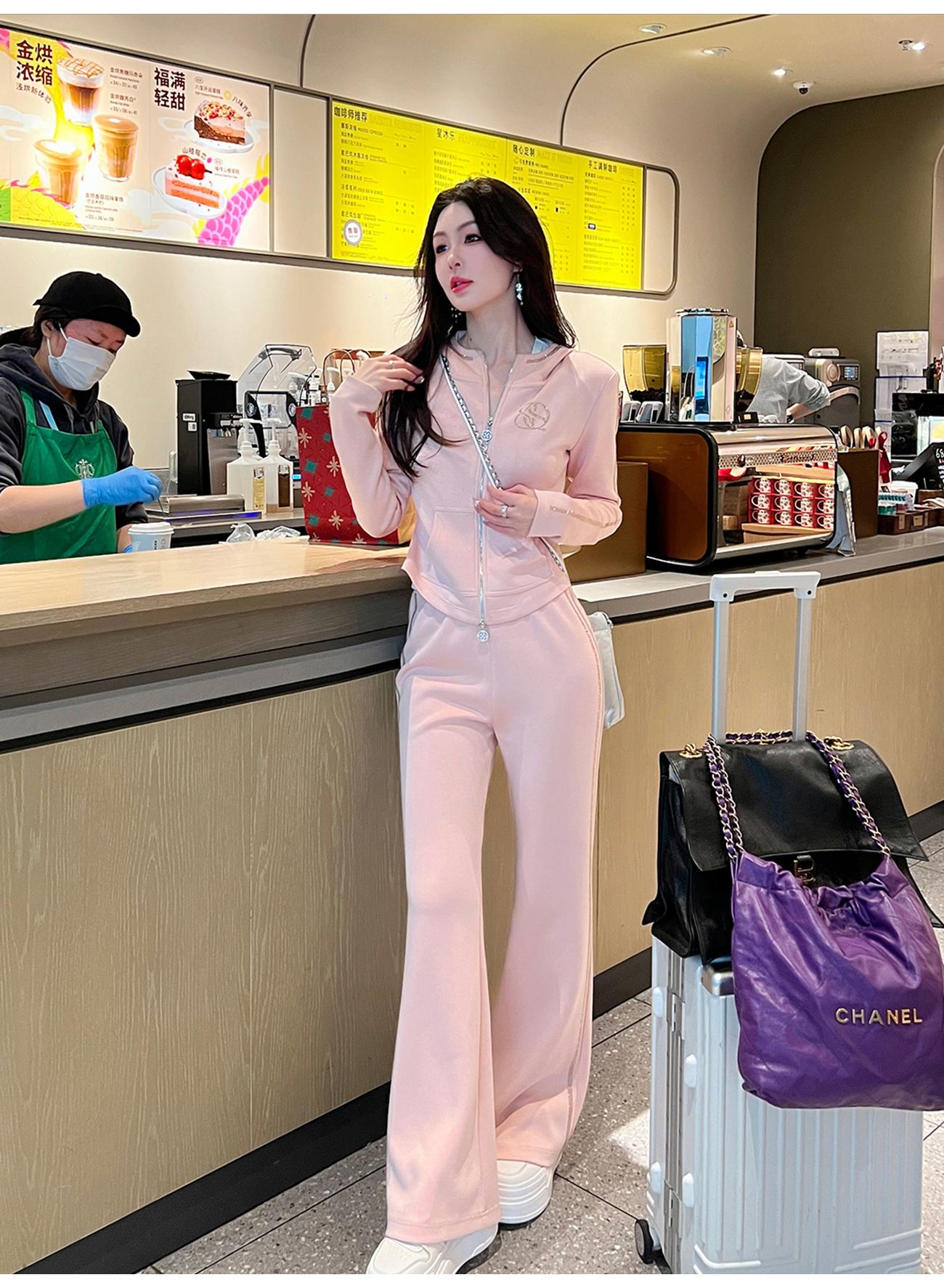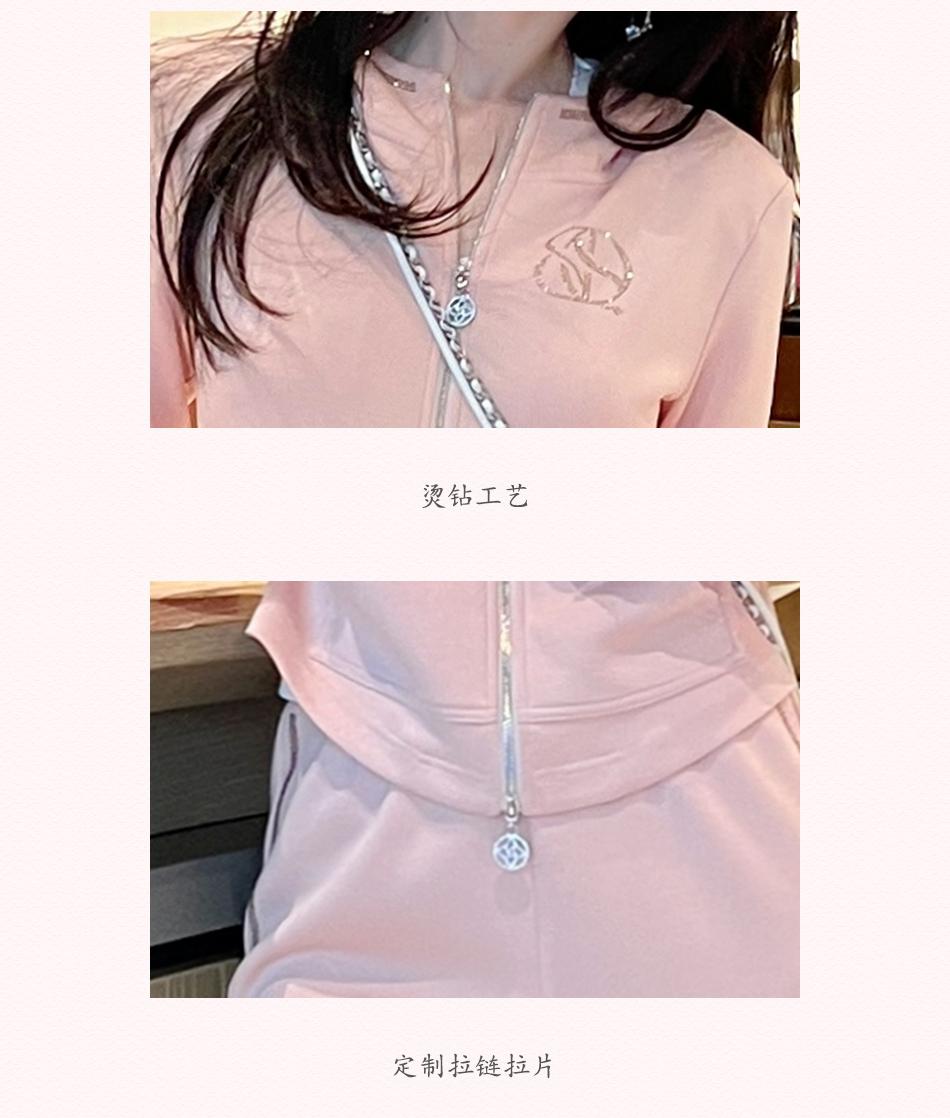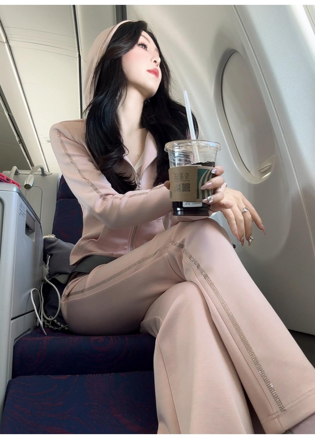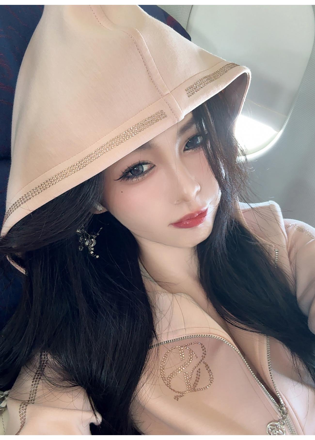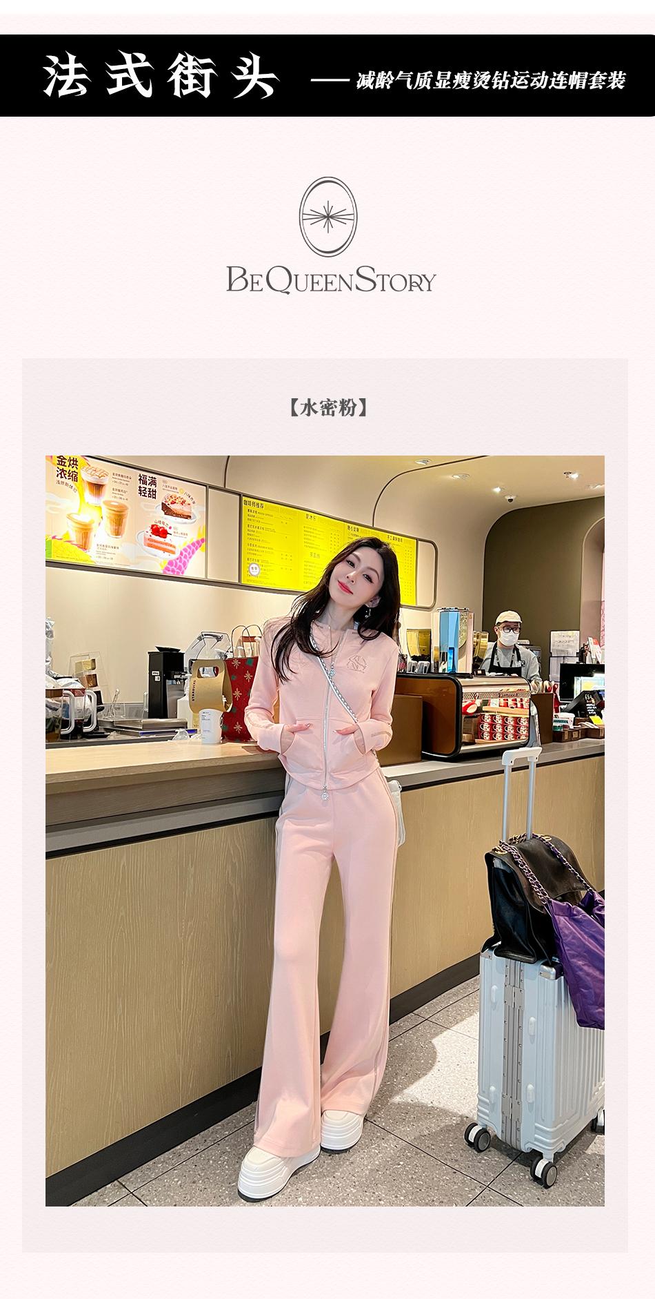 bequeenstory【法式街头】减龄气质显瘦休闲百搭烫钻运动连帽套装