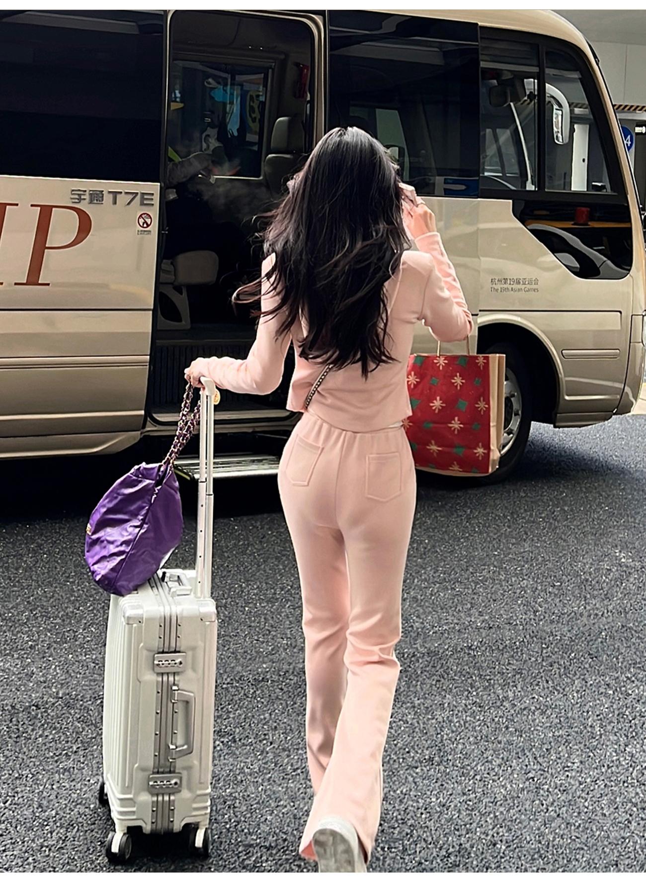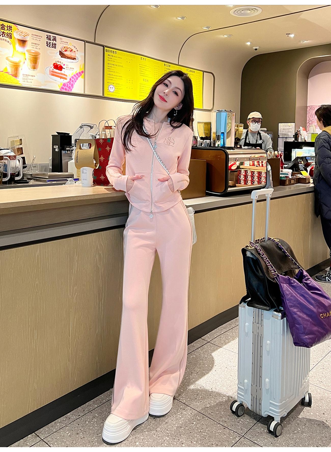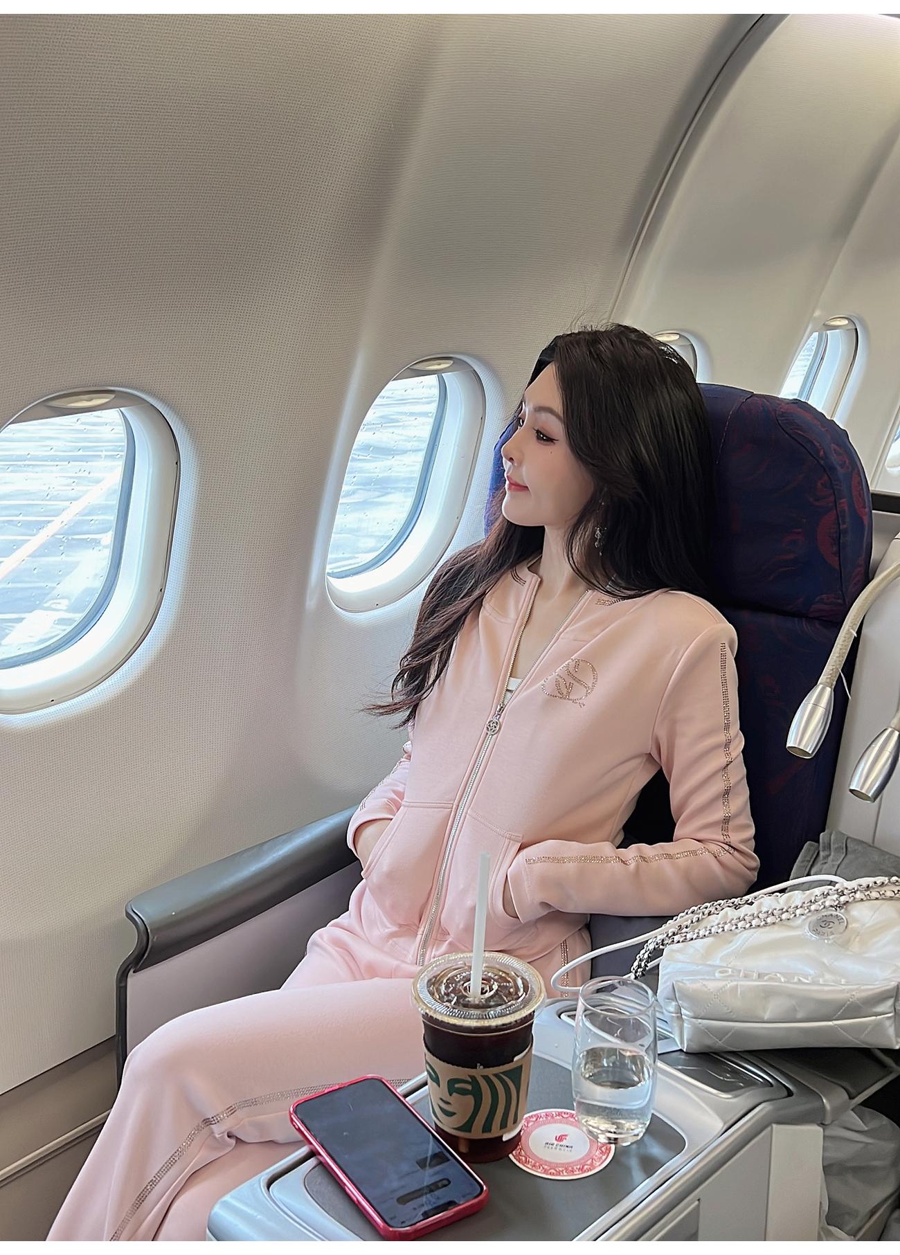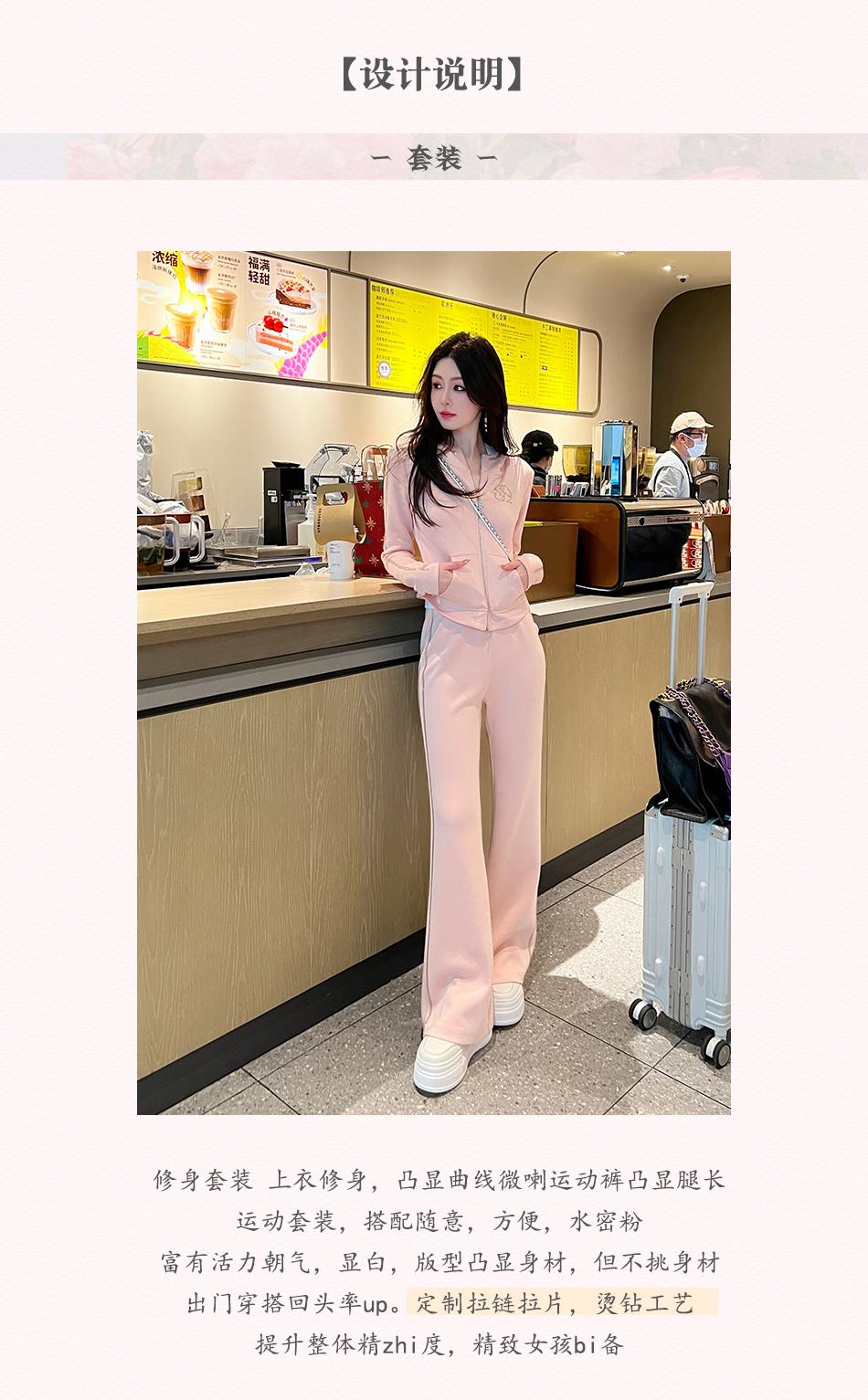 bequeenstory【法式街头】减龄气质显瘦休闲百搭烫钻运动连帽套装