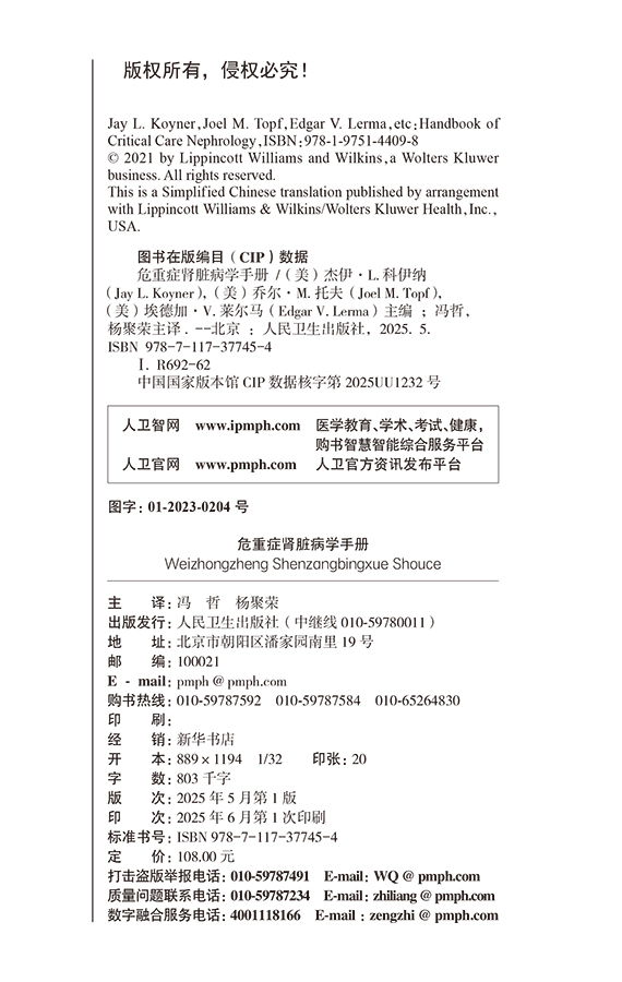书名:危重症肾脏病学手册
