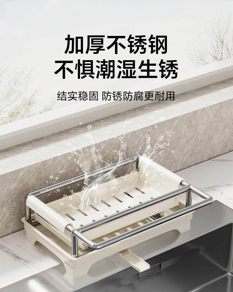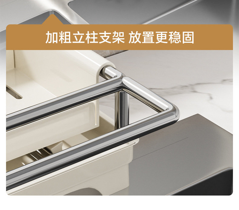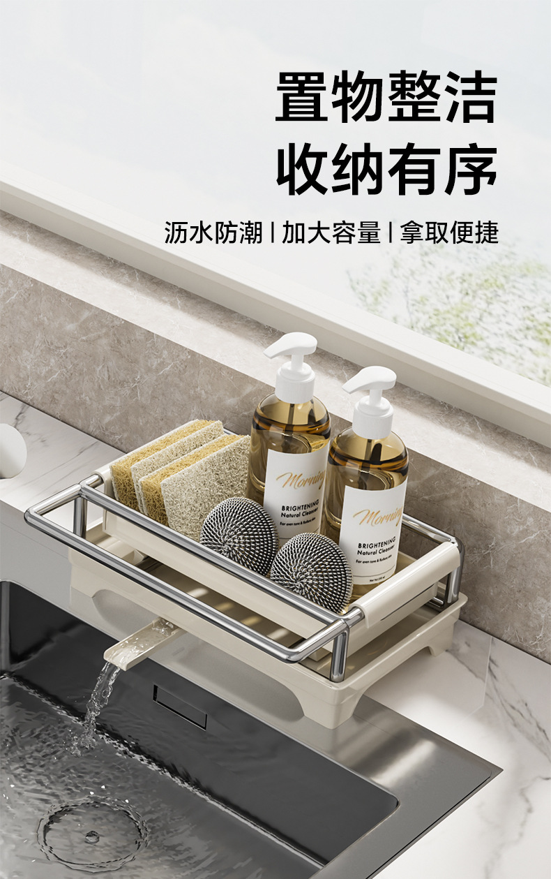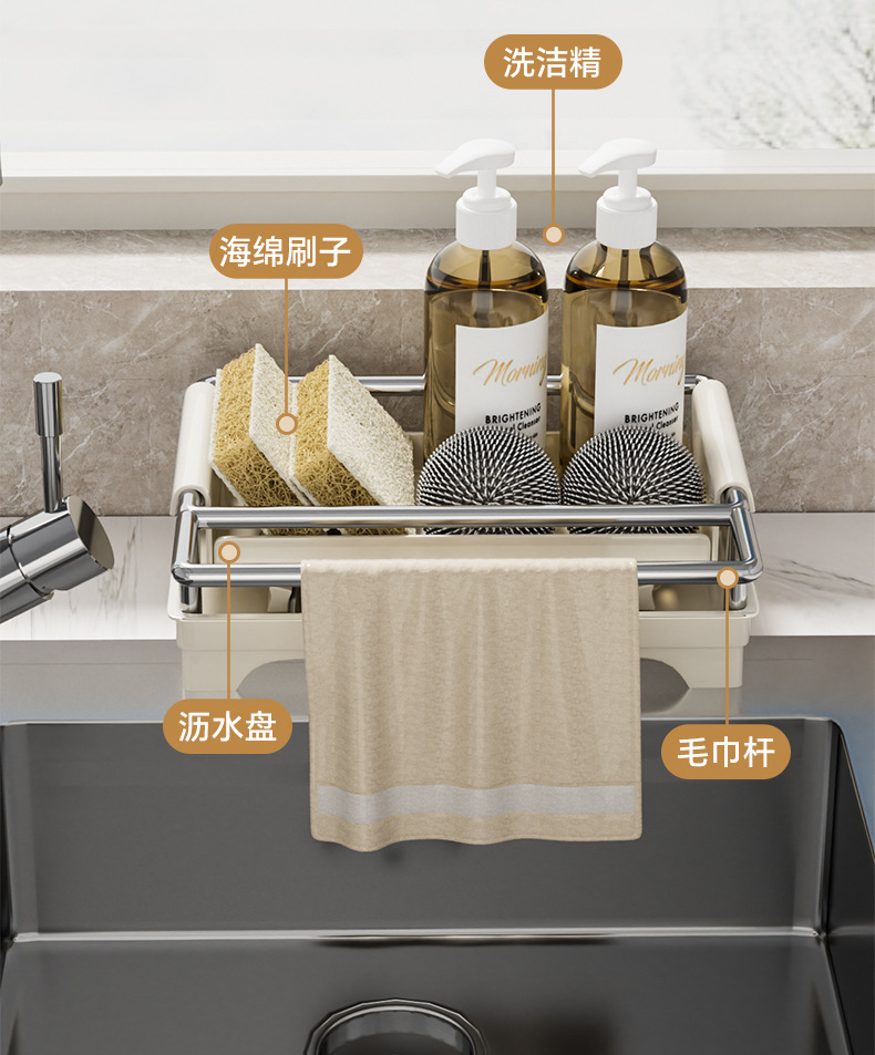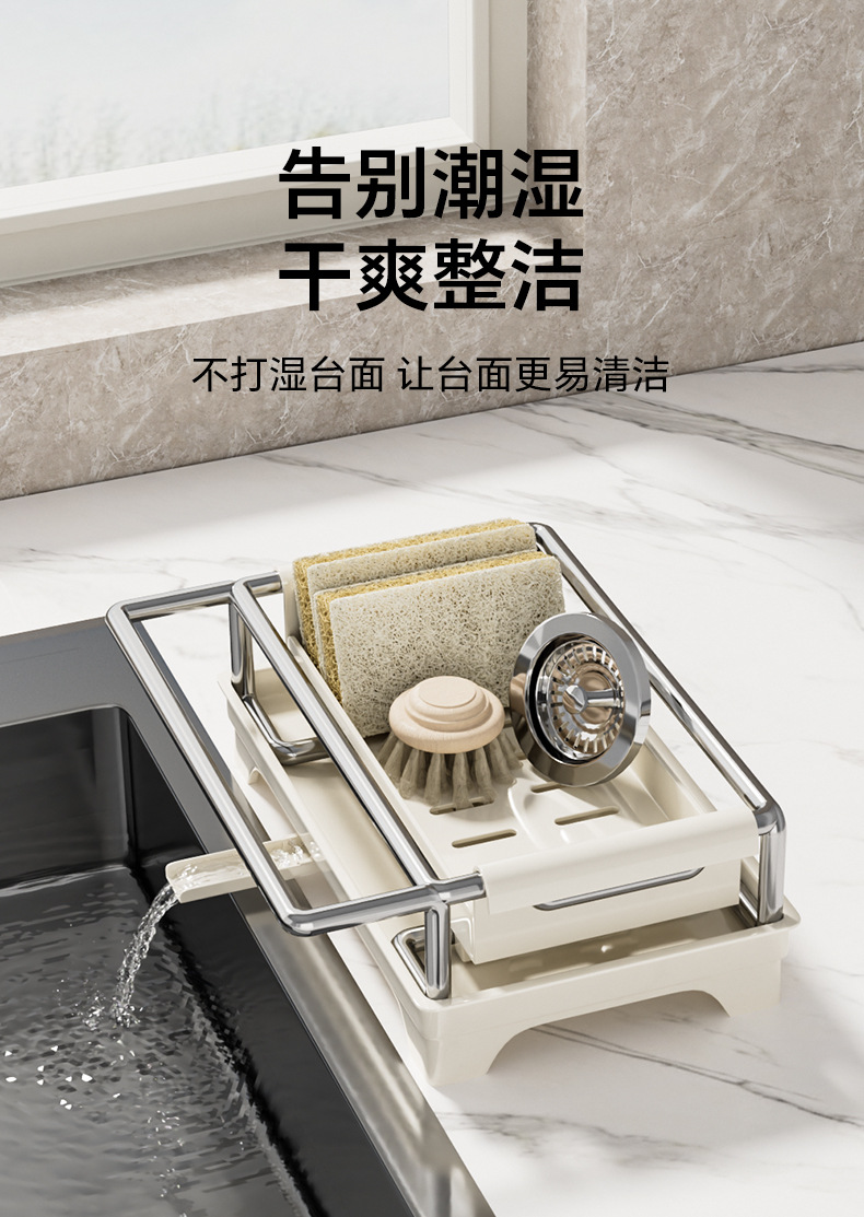 👍❤️【导流盘抹布架】奶白、枪灰、本色,1.沥水防潮 加大容量 拿取便捷 2.加厚不锈钢不惧潮湿生锈 3.加粗立杆支架 放置更稳固 4.通体可拆卸清洗便捷 5.伸缩加长导流管积水自动入池