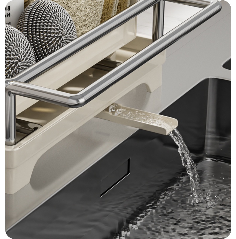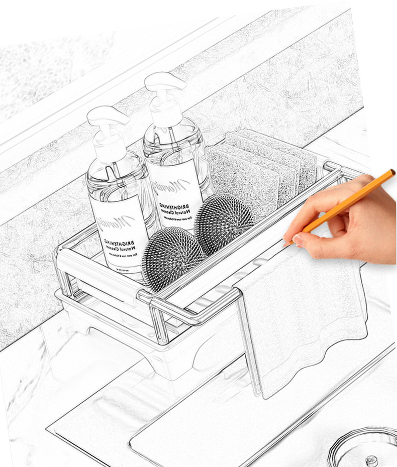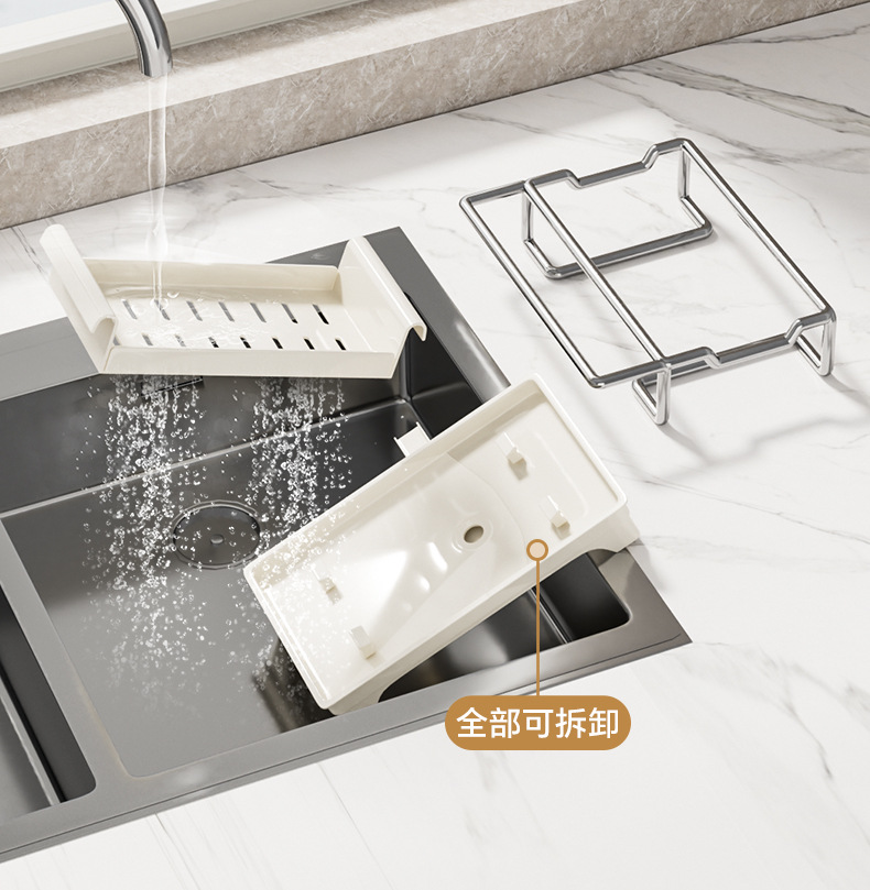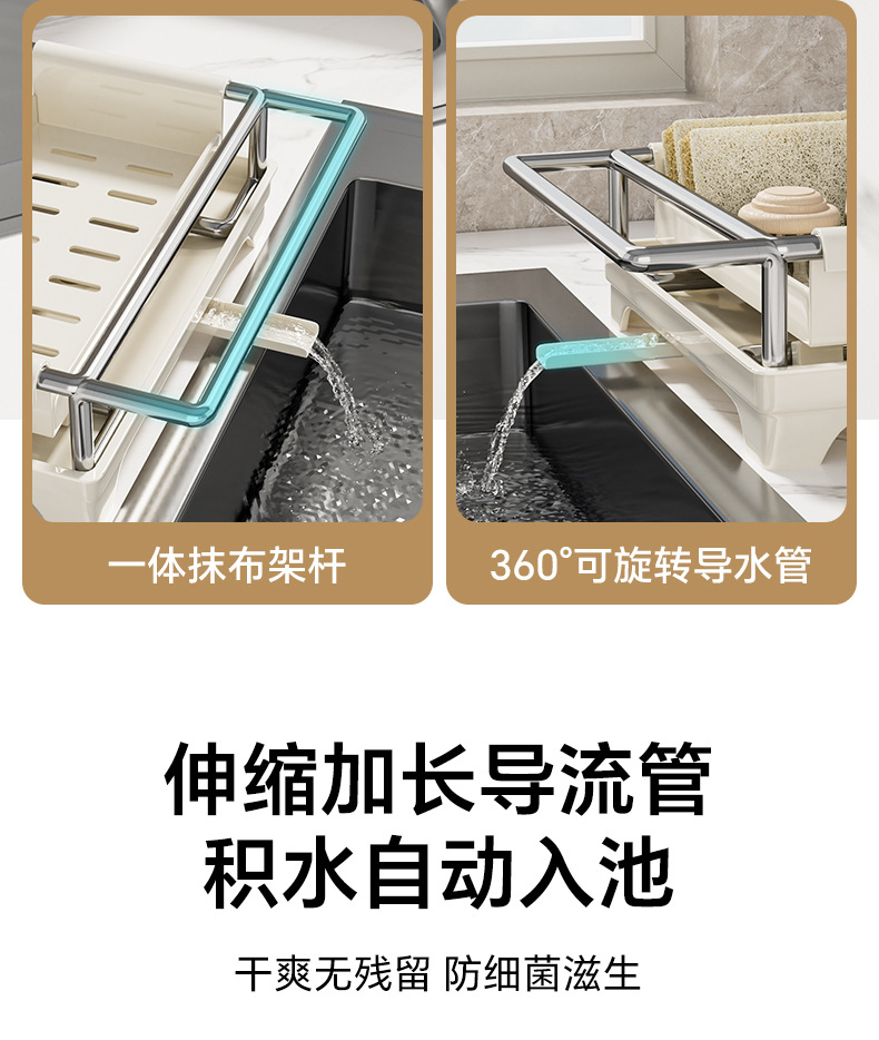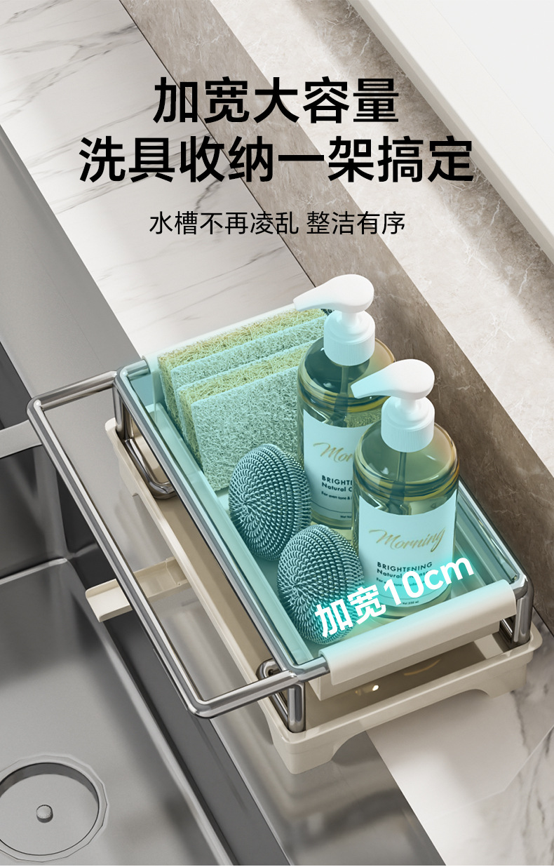 👍❤️【导流盘抹布架】奶白、枪灰、本色,1.沥水防潮 加大容量 拿取便捷 2.加厚不锈钢不惧潮湿生锈 3.加粗立杆支架 放置更稳固 4.通体可拆卸清洗便捷 5.伸缩加长导流管积水自动入池