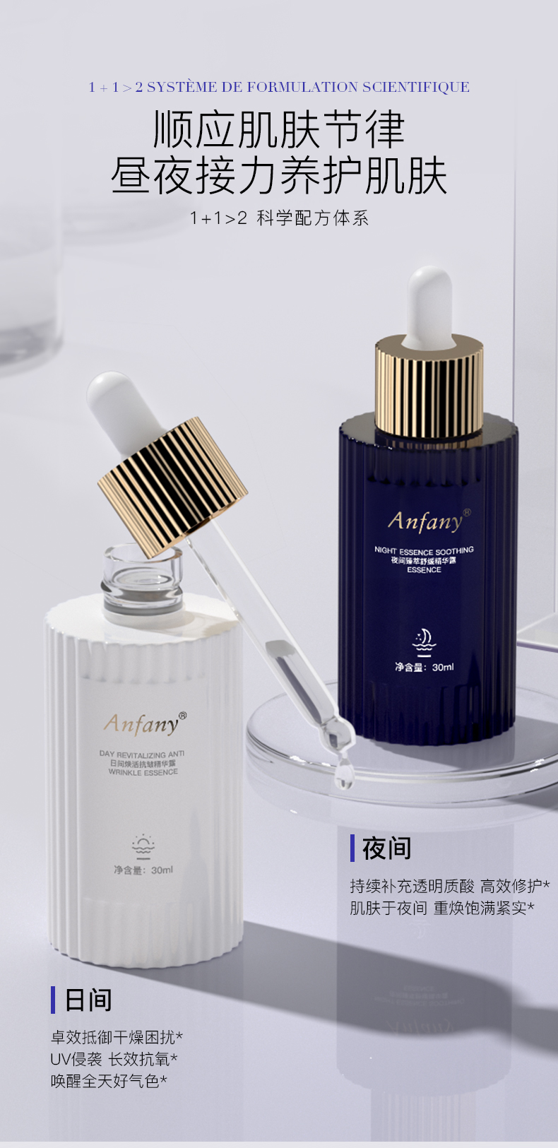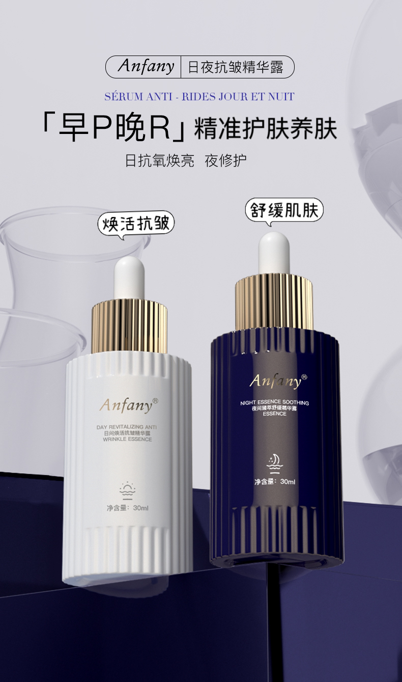 【Anfany伊芳妮-日夜抗皱舒缓精华露】早P晚R新模式护肤、抗皱/舒缓/保湿/补水/修护/维稳、3大专利加持+2大进口成分、成分温和不刺激、日间+夜间全天式保护肌肤