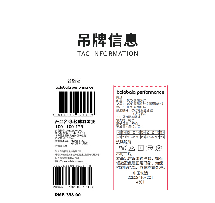 【bp】巴拉巴拉功能运动秋冬轻量保暖儿童羽绒服短款鸭绒外套