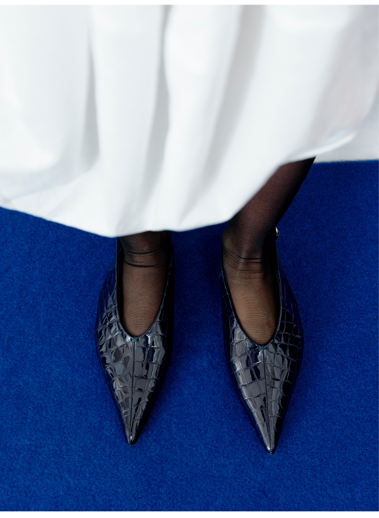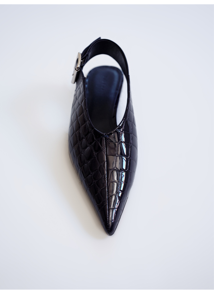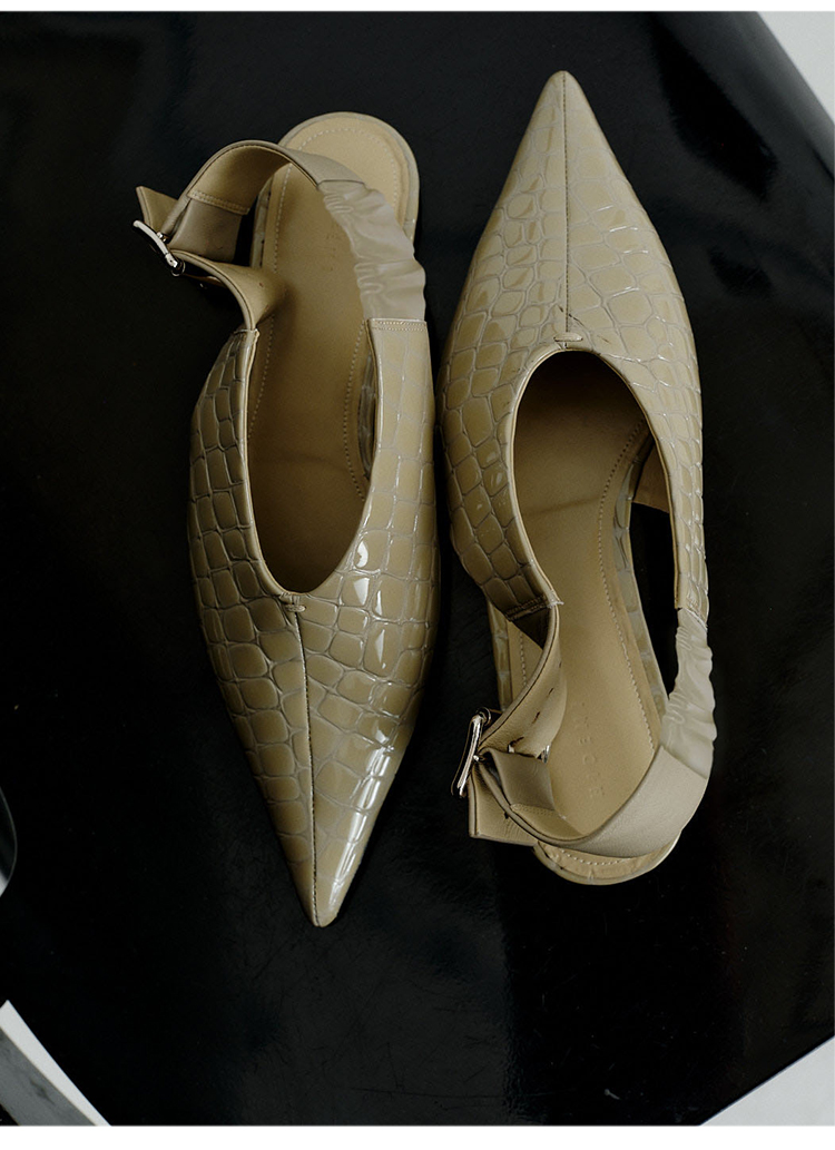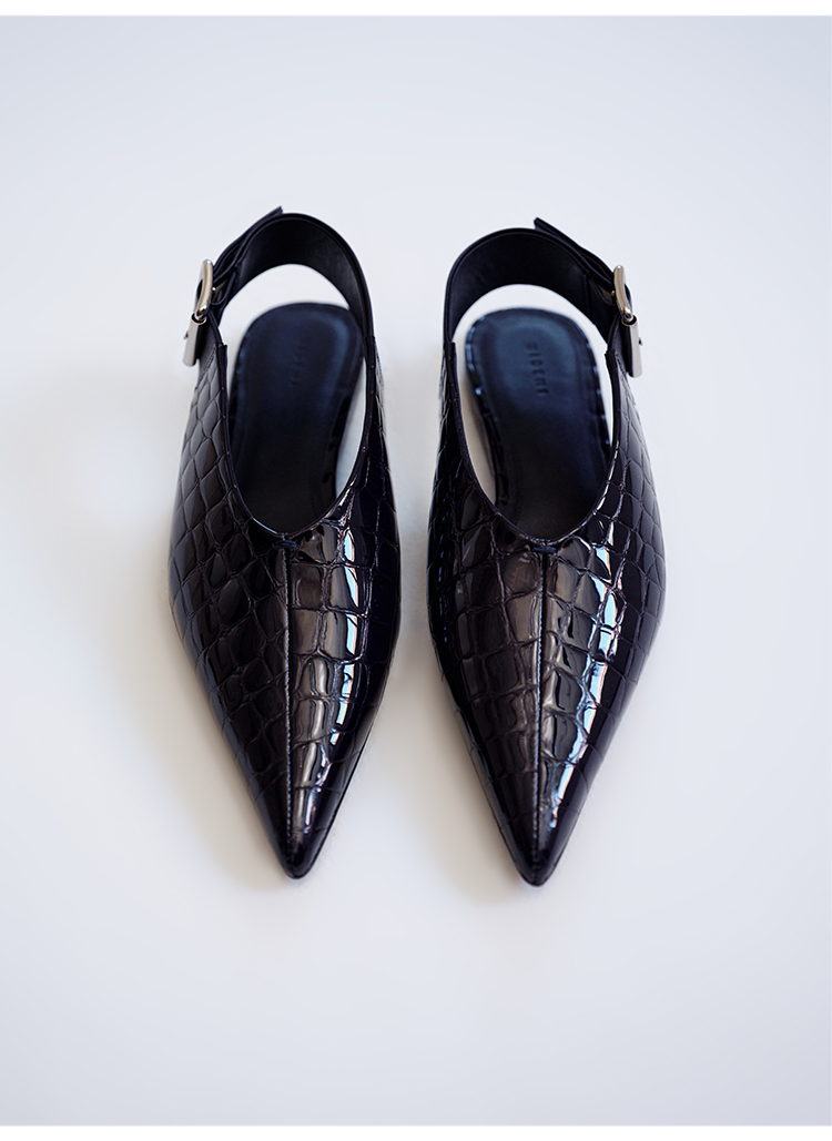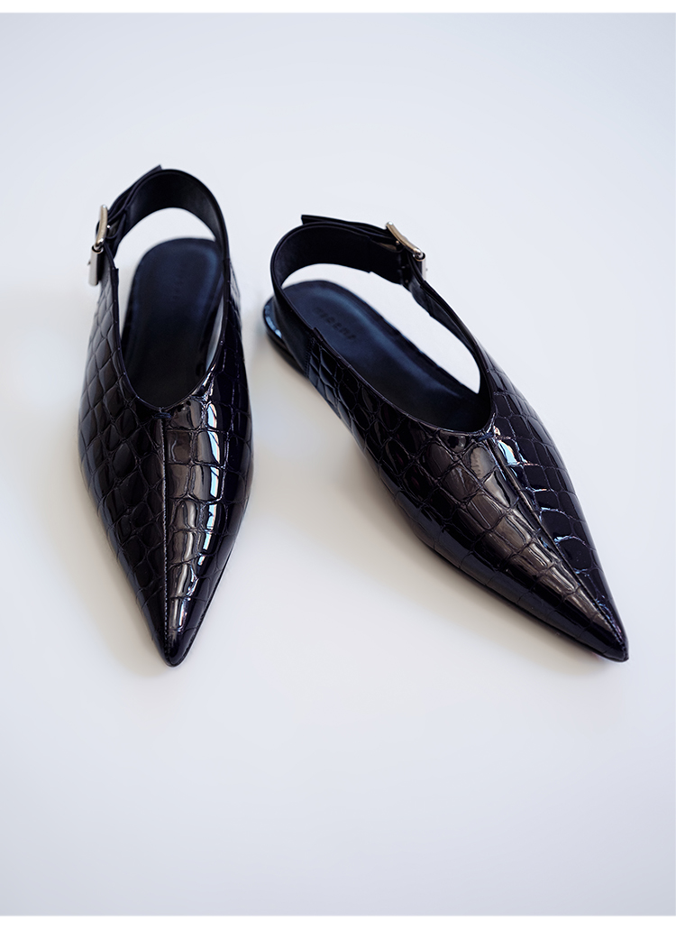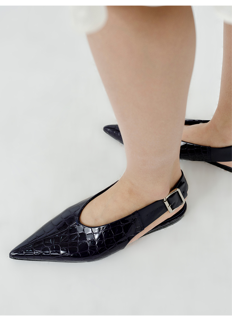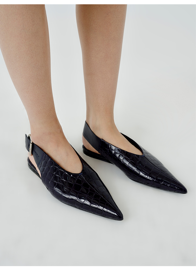HIDEMI 进口牛皮鳄鱼纹尖头摩登松紧带可调节扣平底鞋单鞋 夜空蓝/杏仁灰