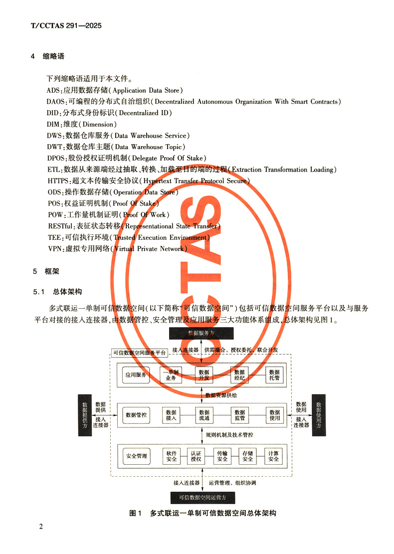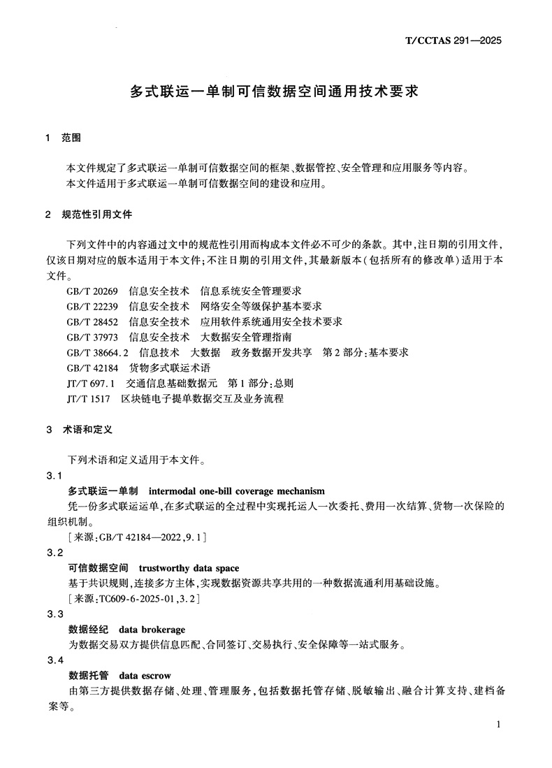 书名:多式联运一单制可信数据空间通用技术要求T/CCTAS 291—2025