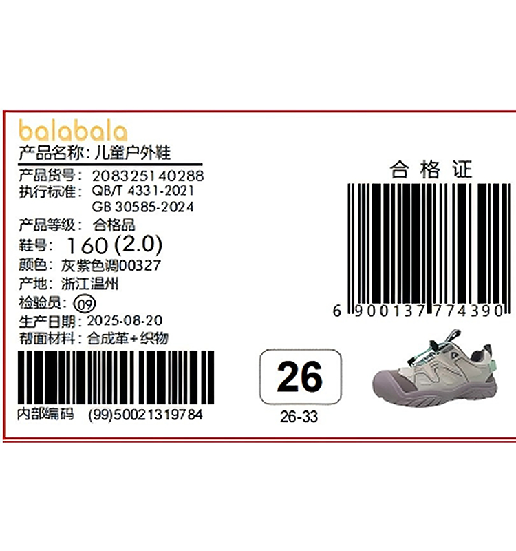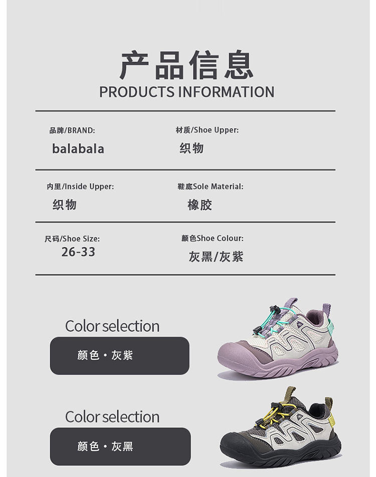 巴拉巴拉儿童运动鞋防撞护趾户外鞋男女童鞋春秋2025新款透气鞋子