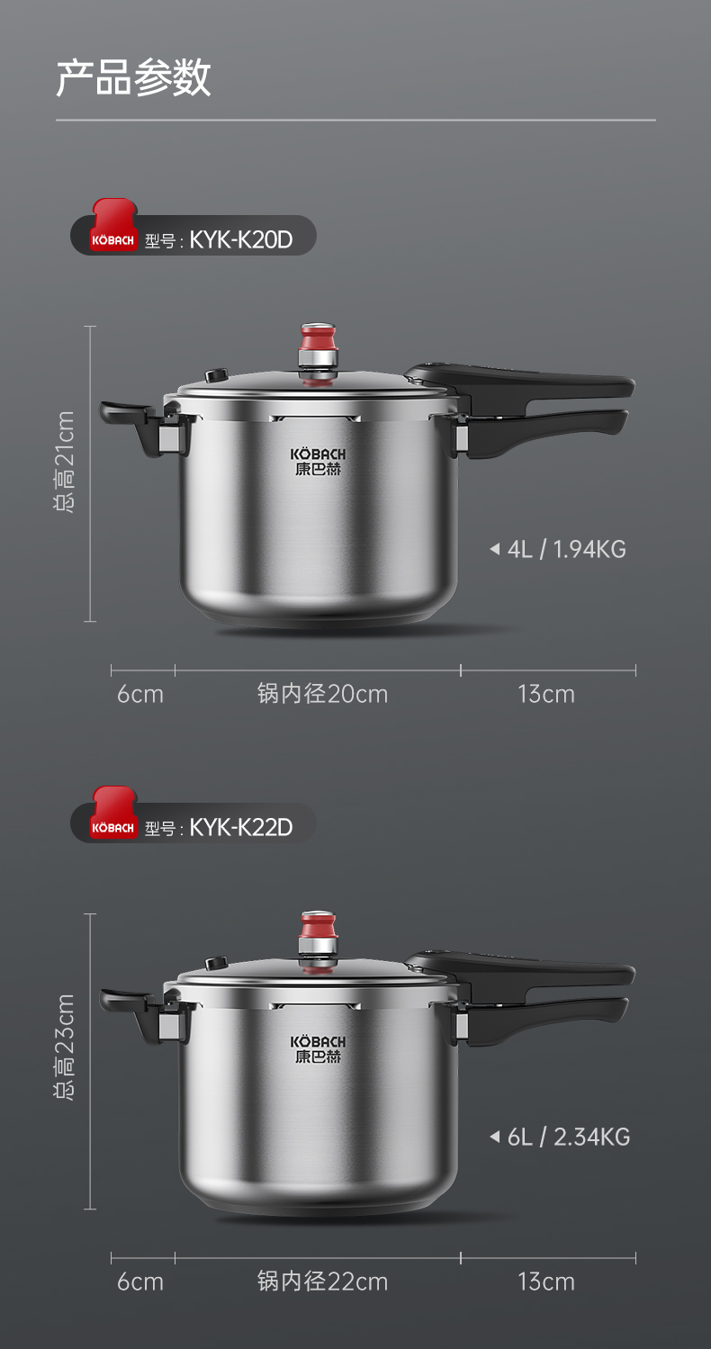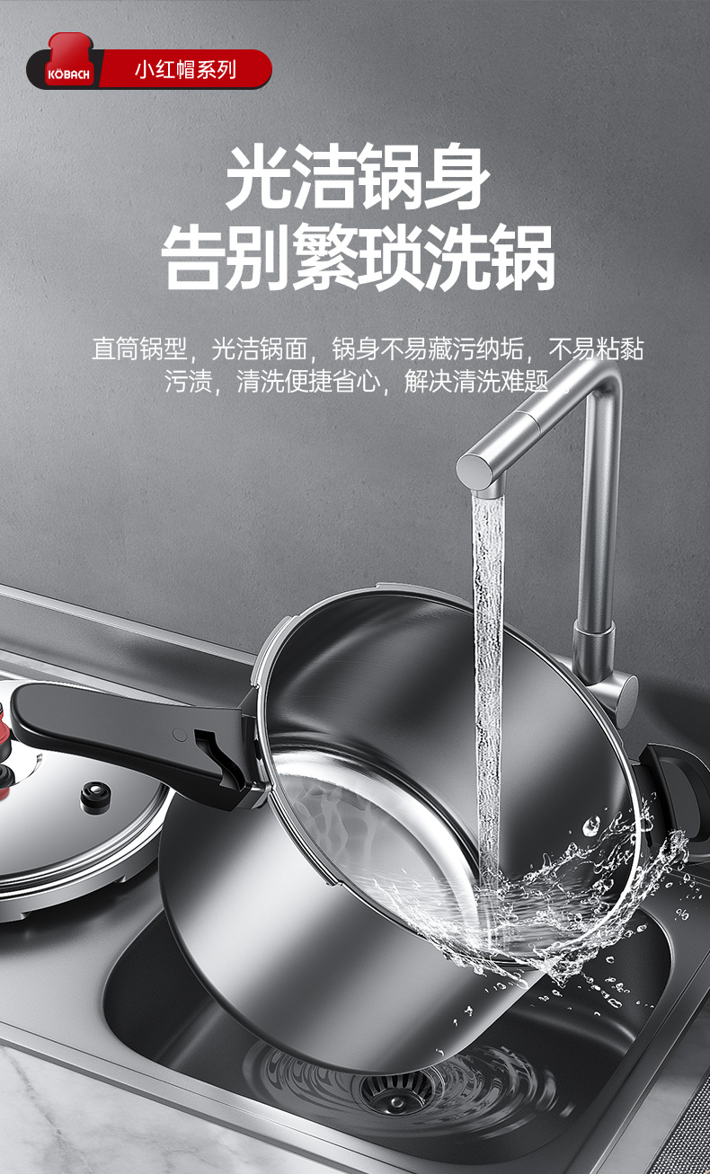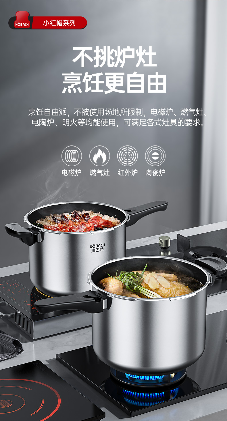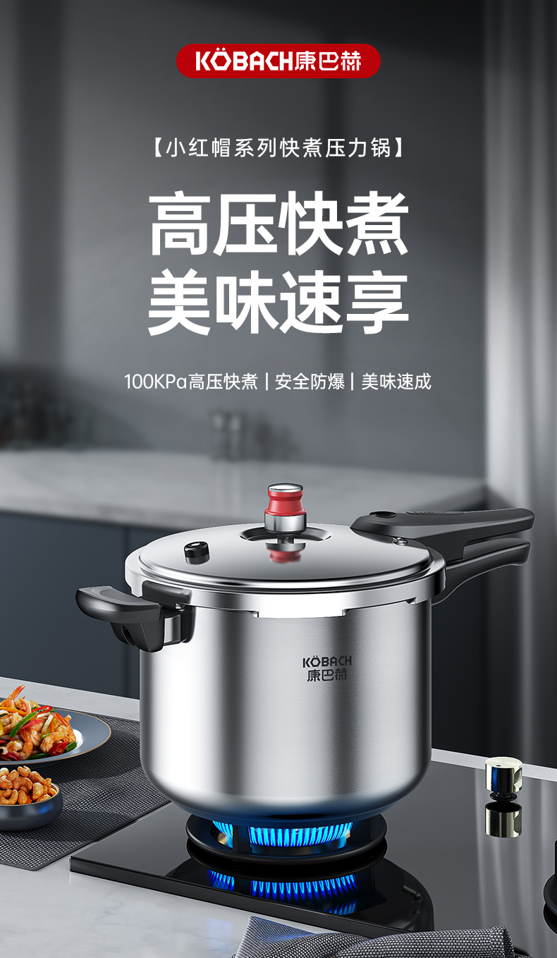 康巴赫高压锅304不锈钢小红帽压力锅快煮安全防爆
