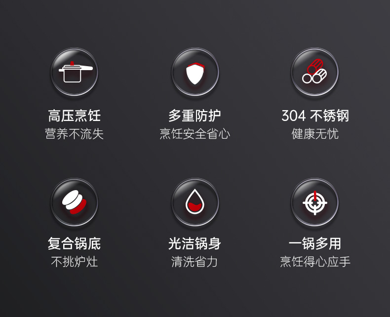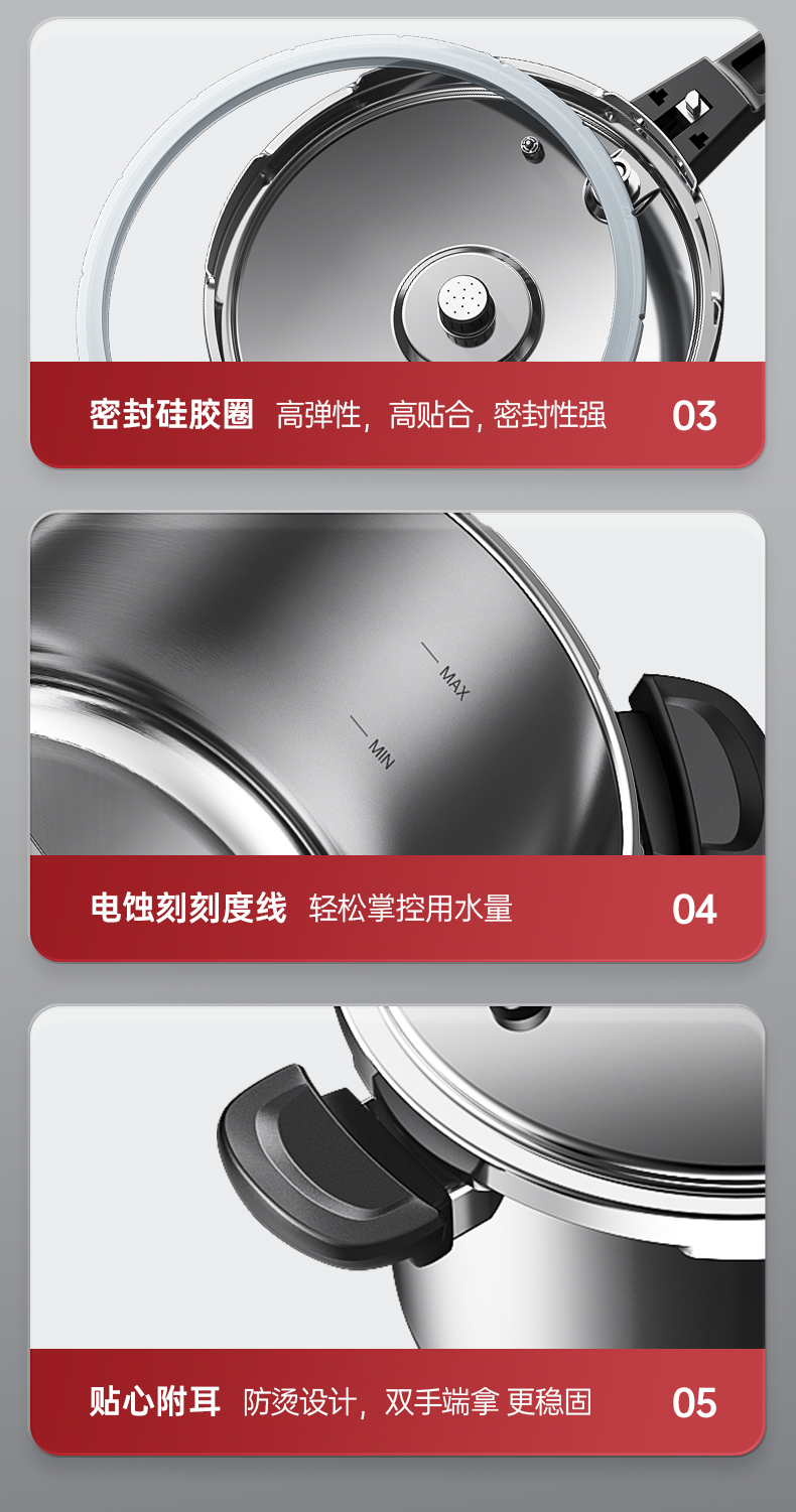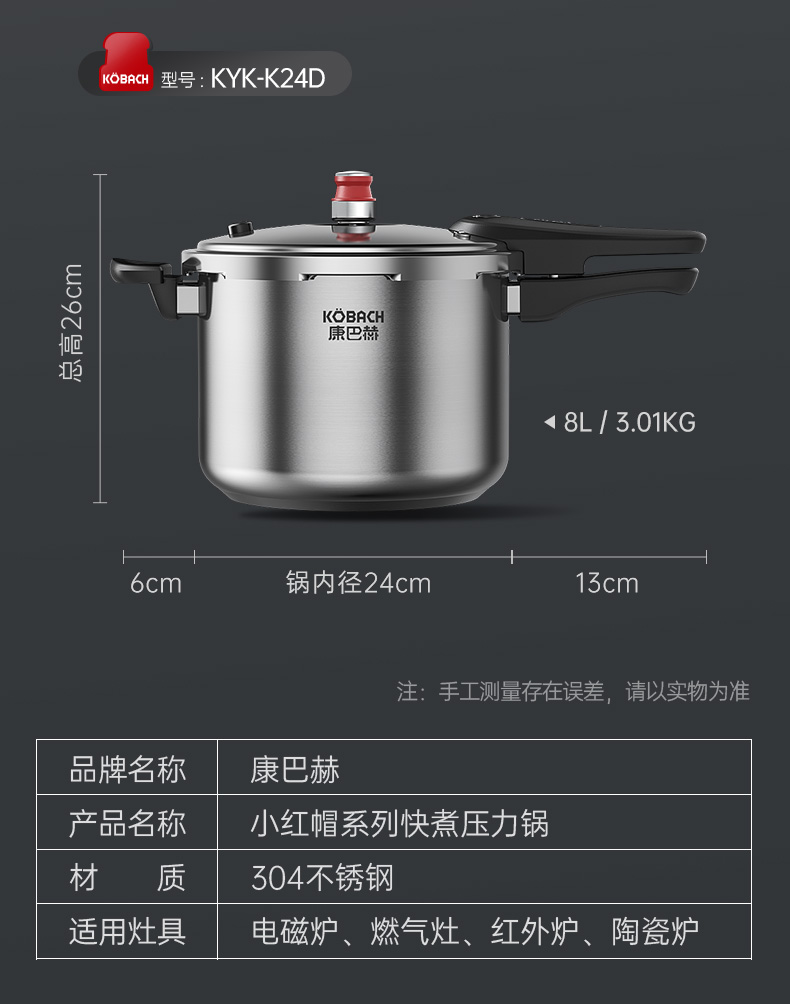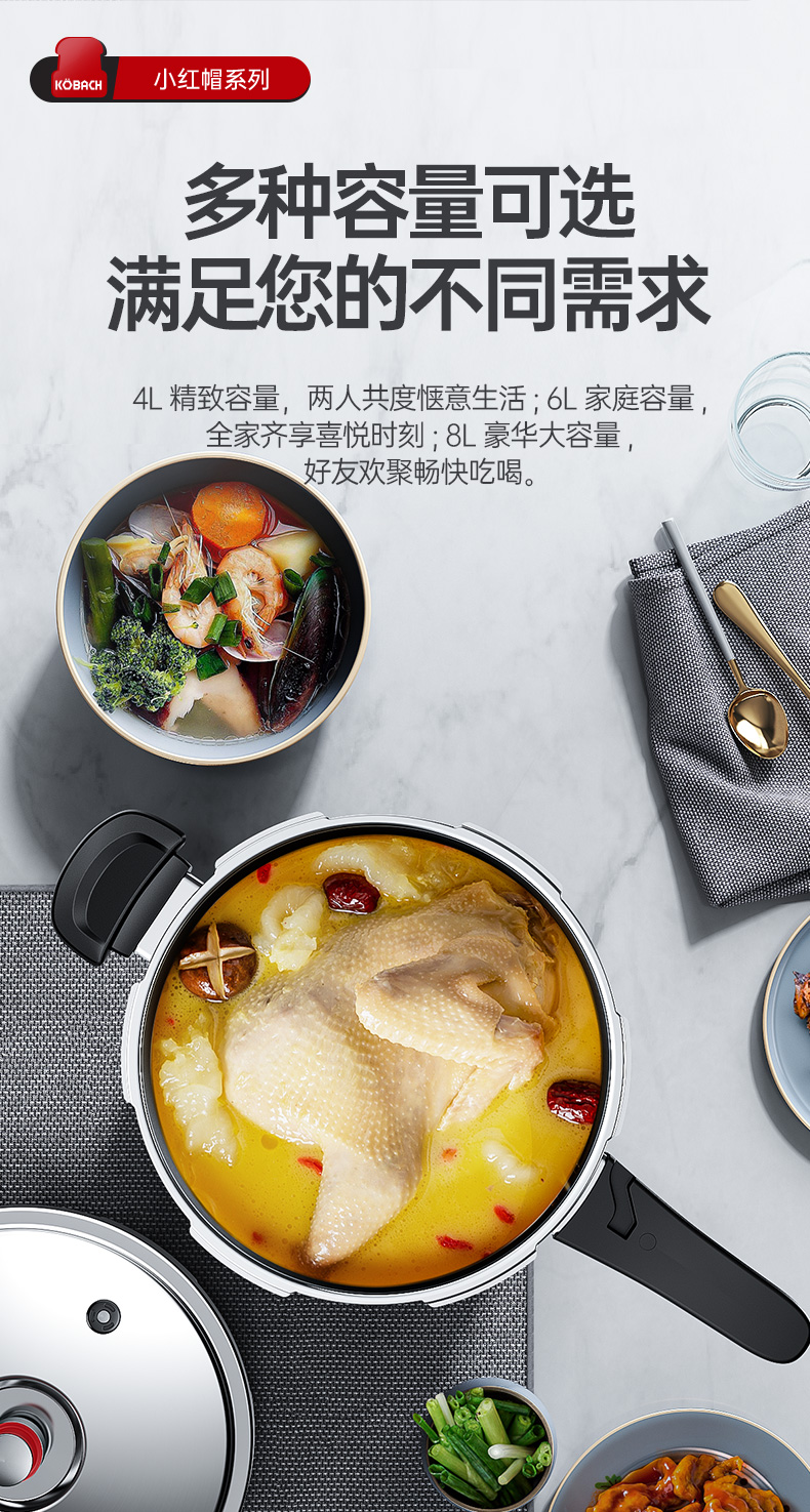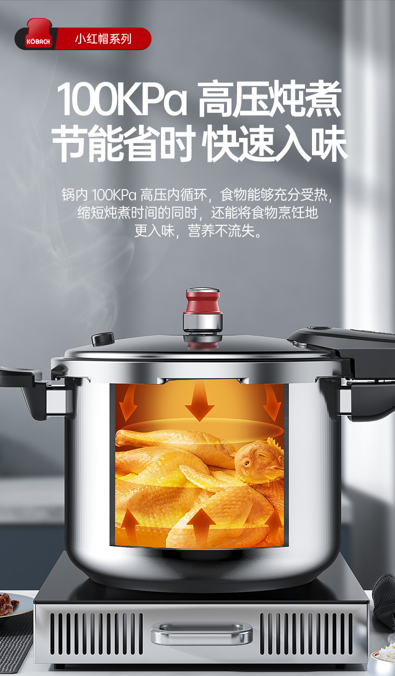 康巴赫高压锅304不锈钢小红帽压力锅快煮安全防爆