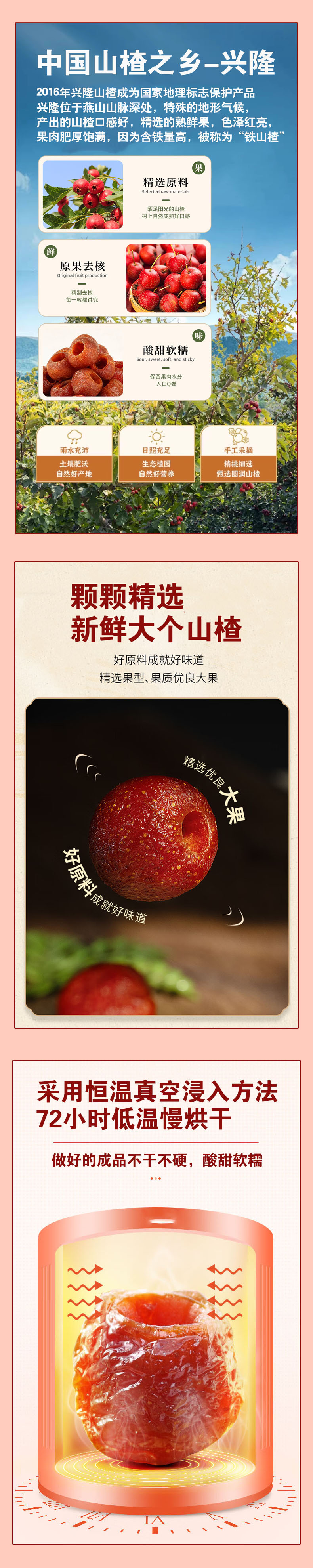 空心山楂,12袋组合,精选自然成熟的大个山楂,去核清洗,配料表干净,低温慢烘干,保留原果营养,不干不硬,酸甜软糯,个大,无核、肉厚,营养丰富,酸甜比例刚刚好M
