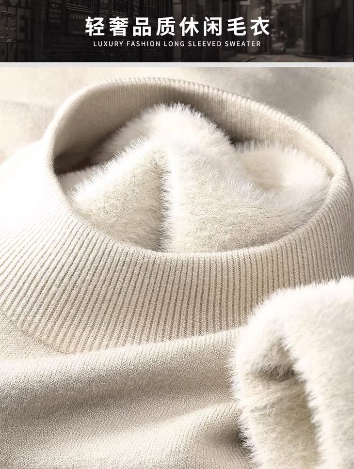 冬季新款加厚内搭毛衫半高领打底针织衫一体绒纯色中领毛衣男