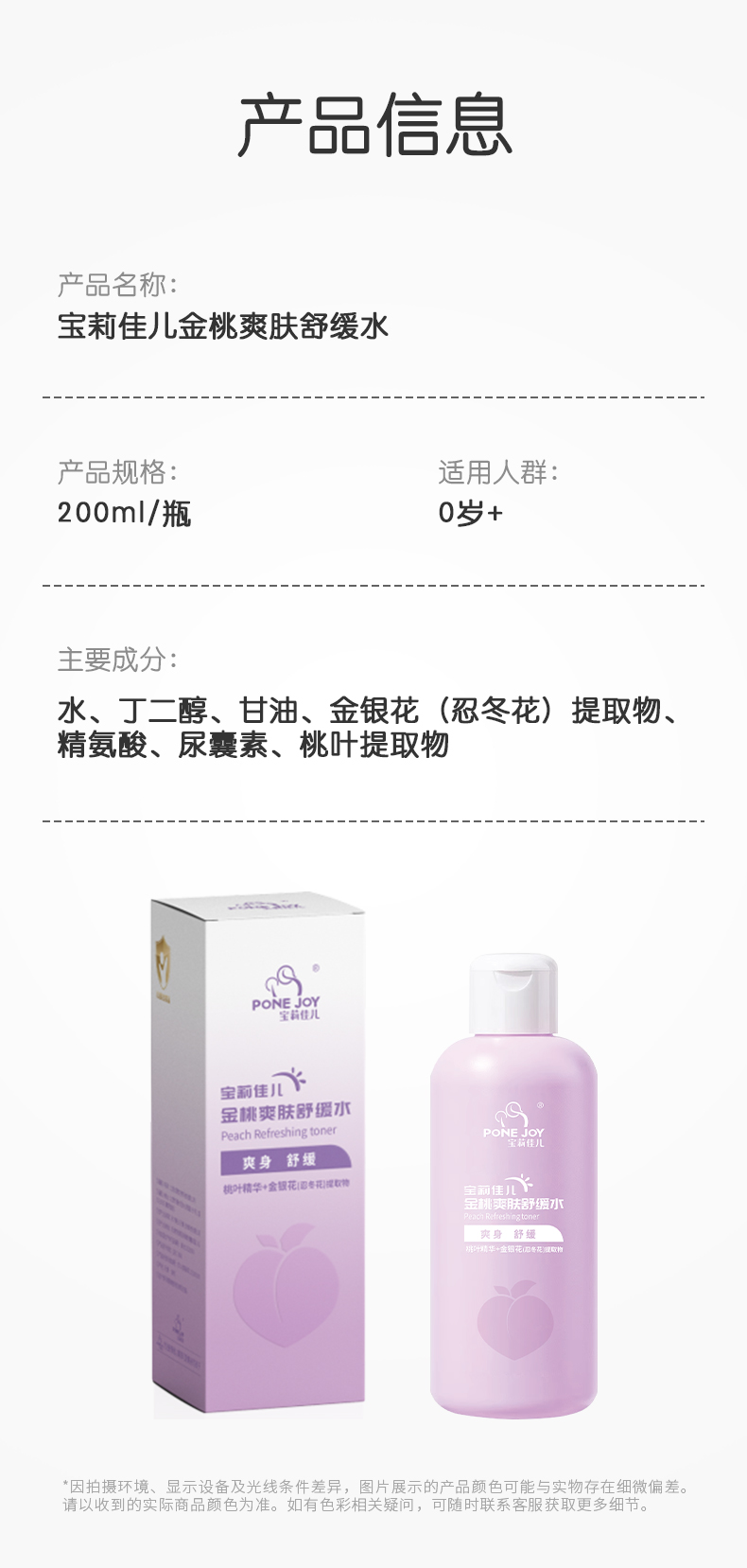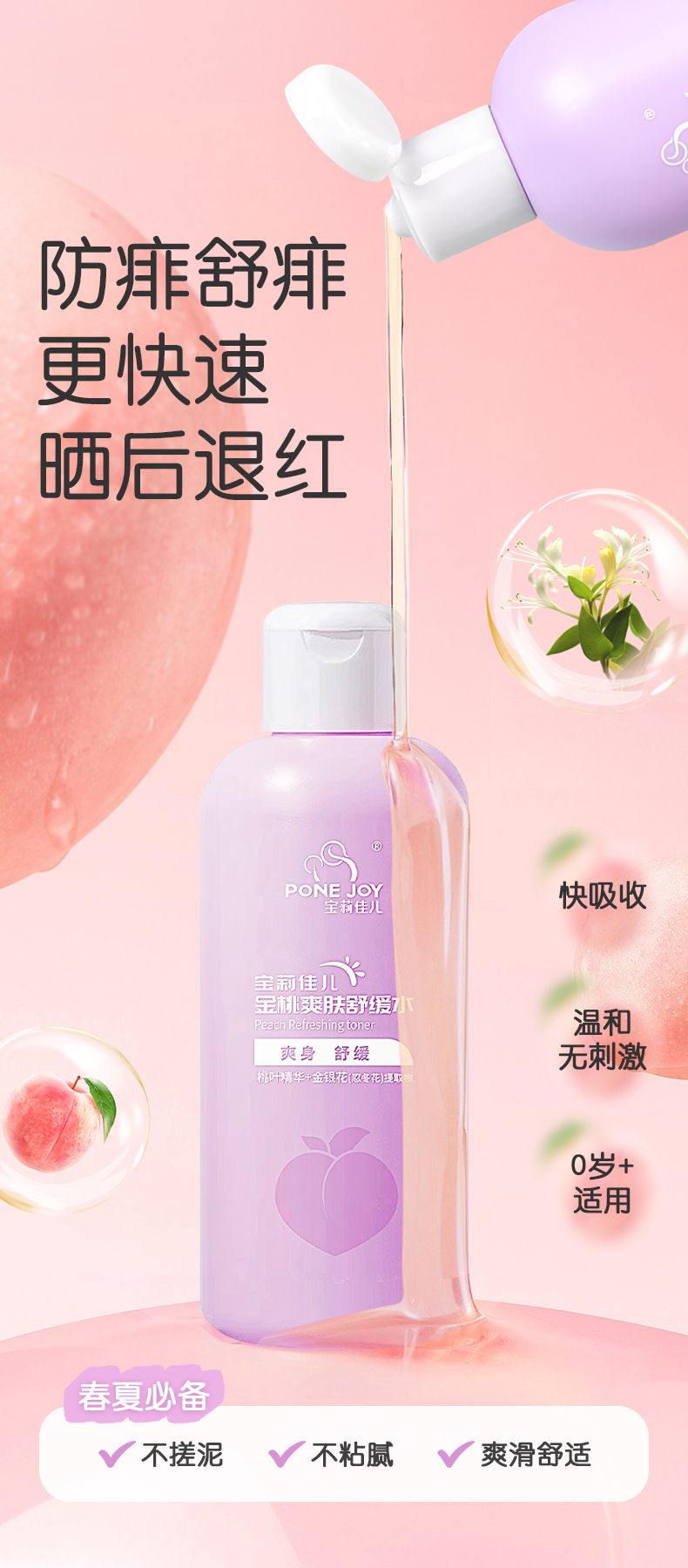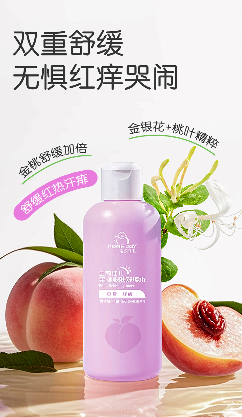 宝莉佳儿金银花桃子水热疹宝宝爽身露 爽身水 新生儿专用痱子水