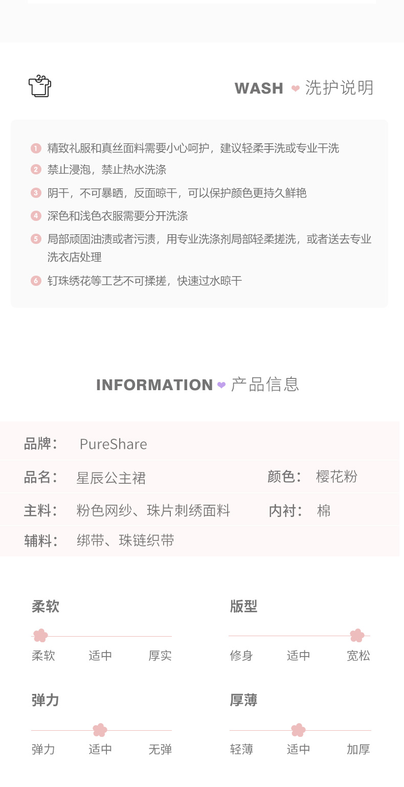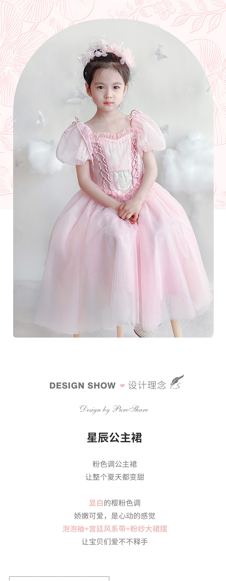 PureShare春夏新女童连衣裙气质公主裙演出时装周走秀款——粉色星辰公主