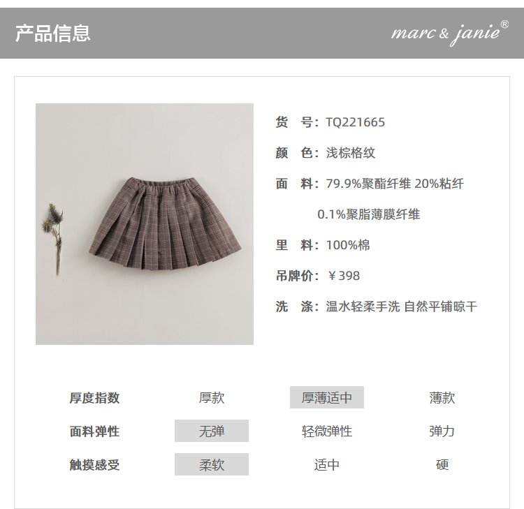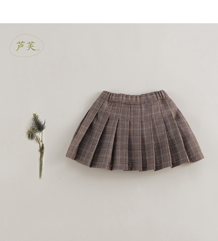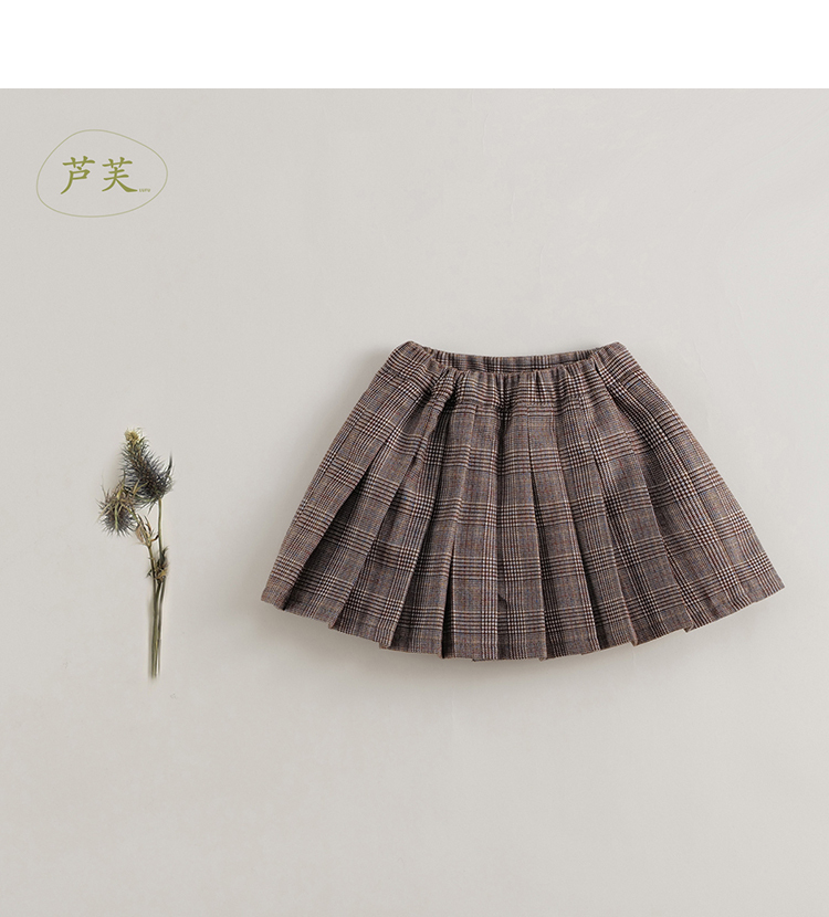 【马克珍妮 芦芙】秋装新款 女童经典格纹毛呢百褶裙221665