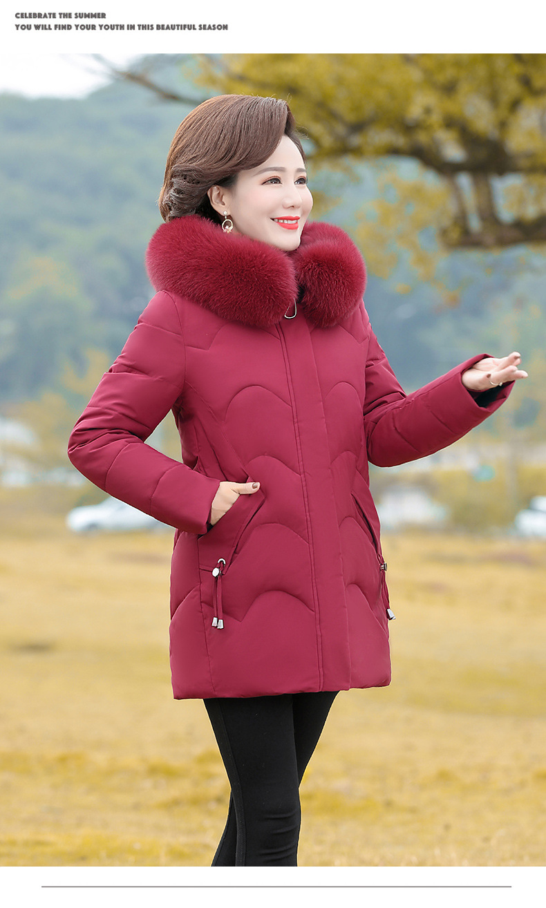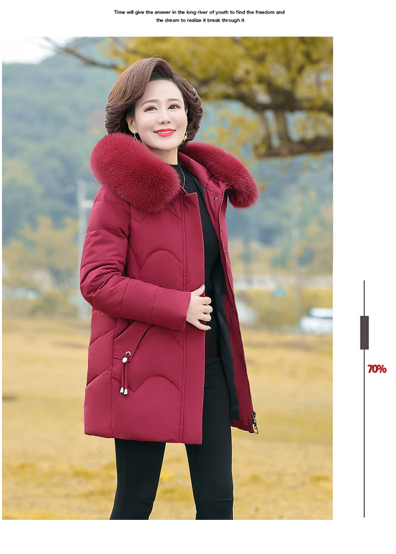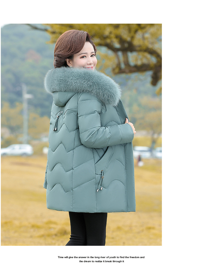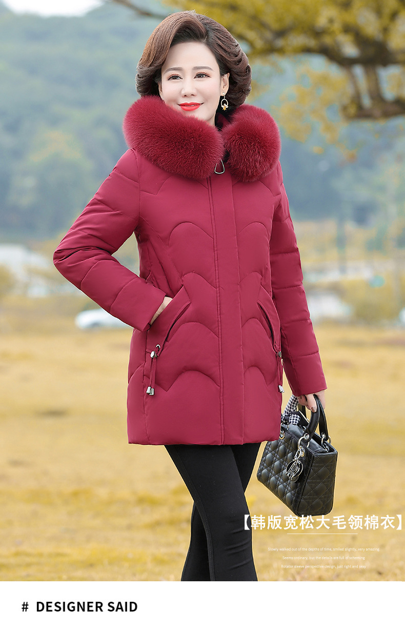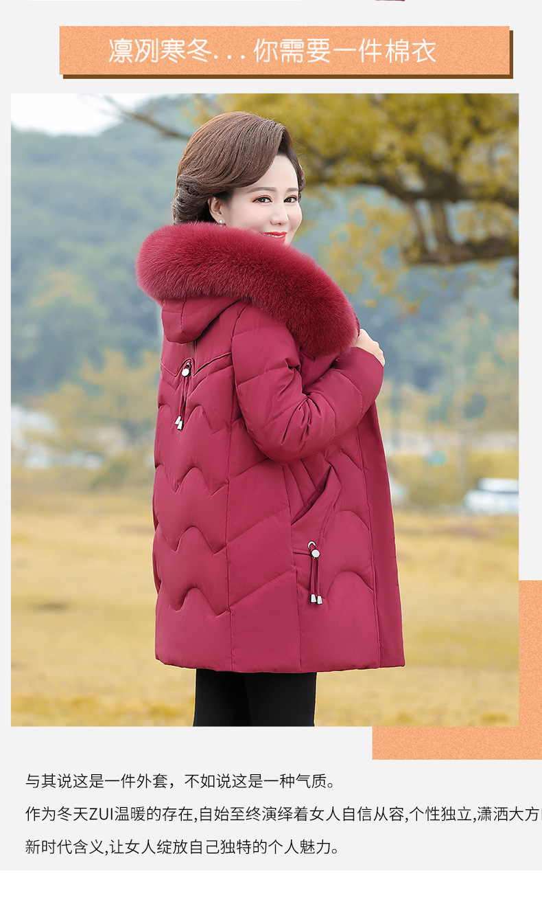 中老年棉衣女冬季加厚大毛领妈妈装羽绒棉服 洋气保暖外套