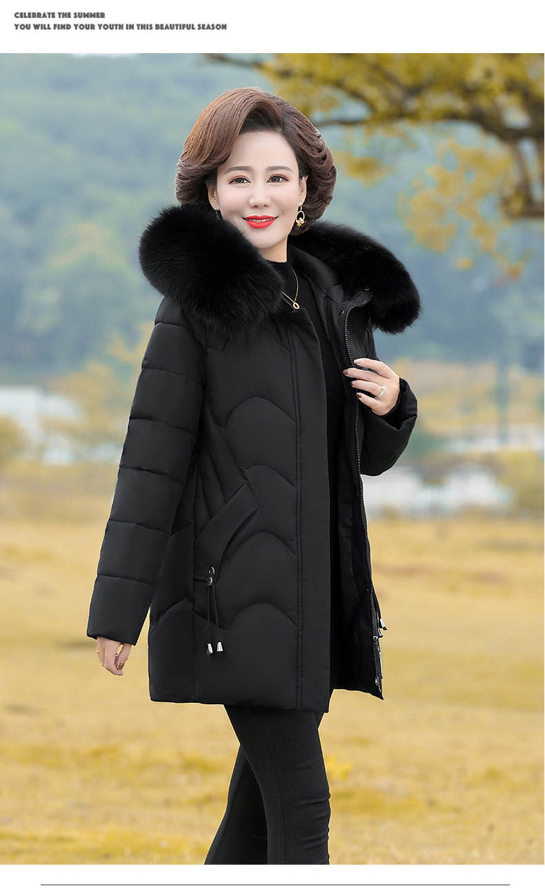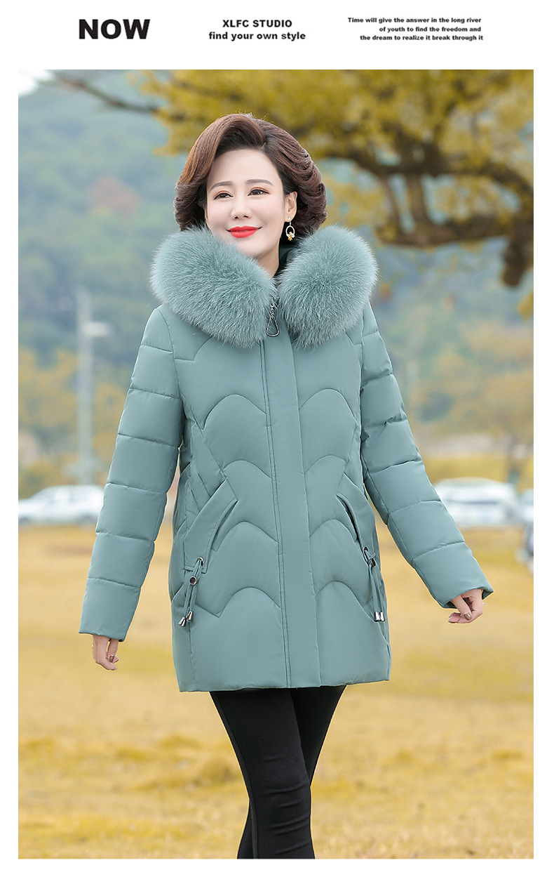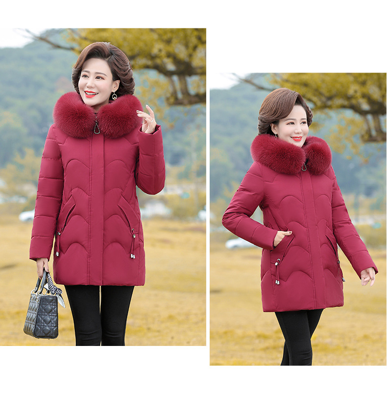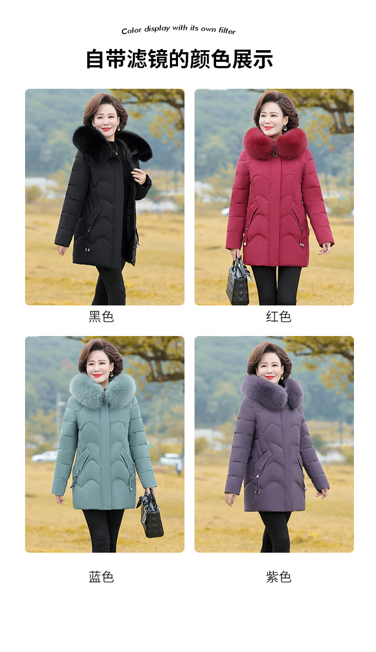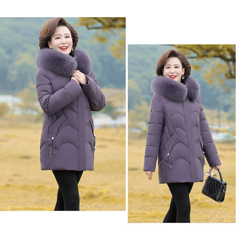 中老年棉衣女冬季加厚大毛领妈妈装羽绒棉服 洋气保暖外套