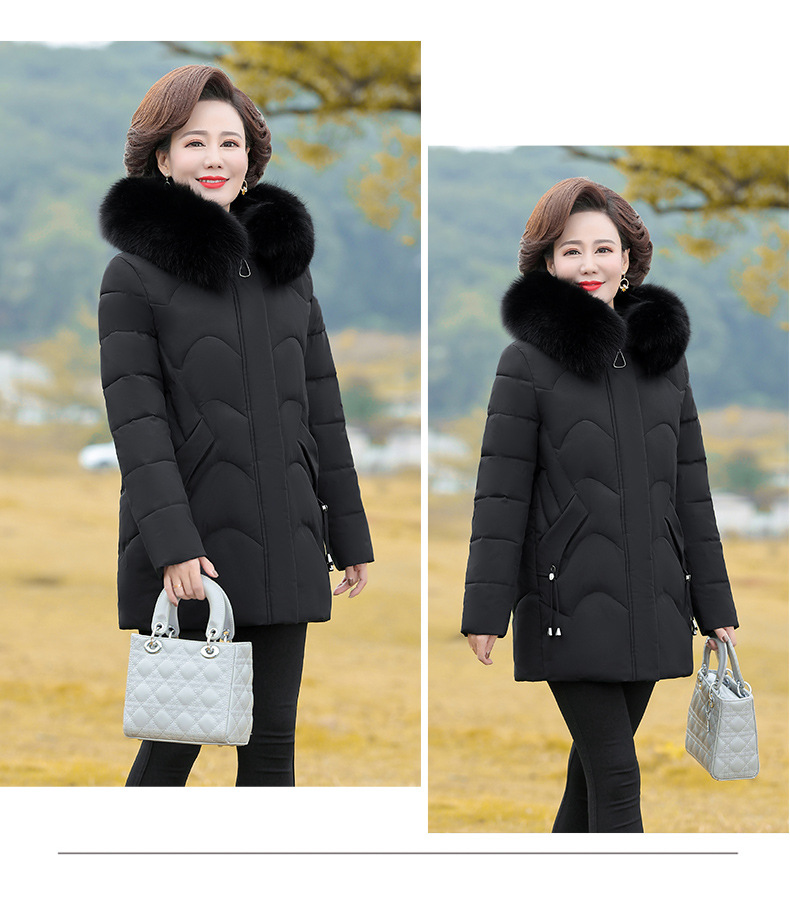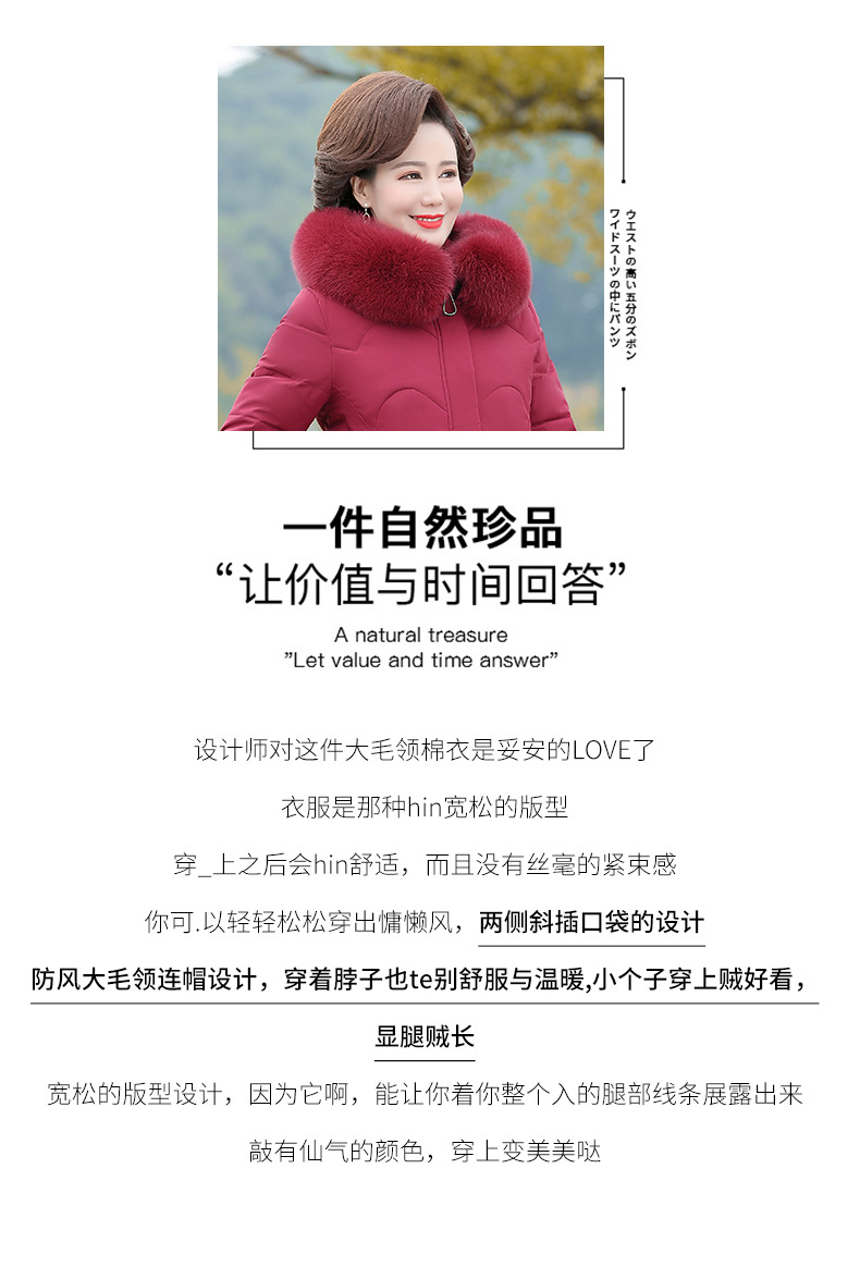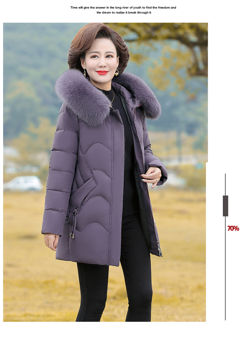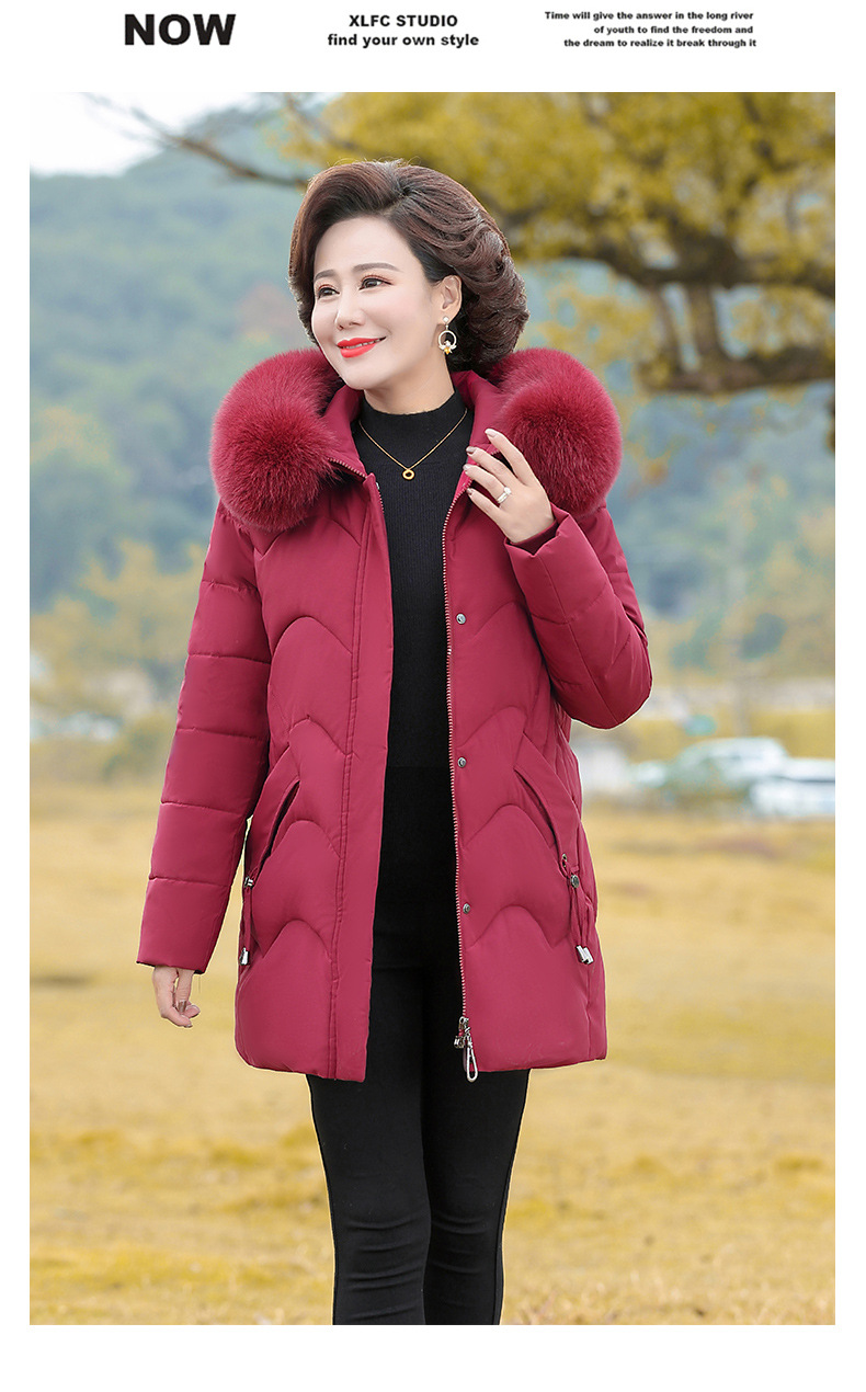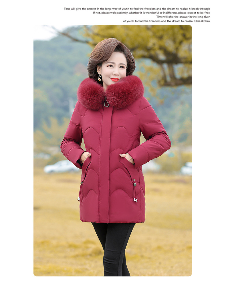 中老年棉衣女冬季加厚大毛领妈妈装羽绒棉服 洋气保暖外套