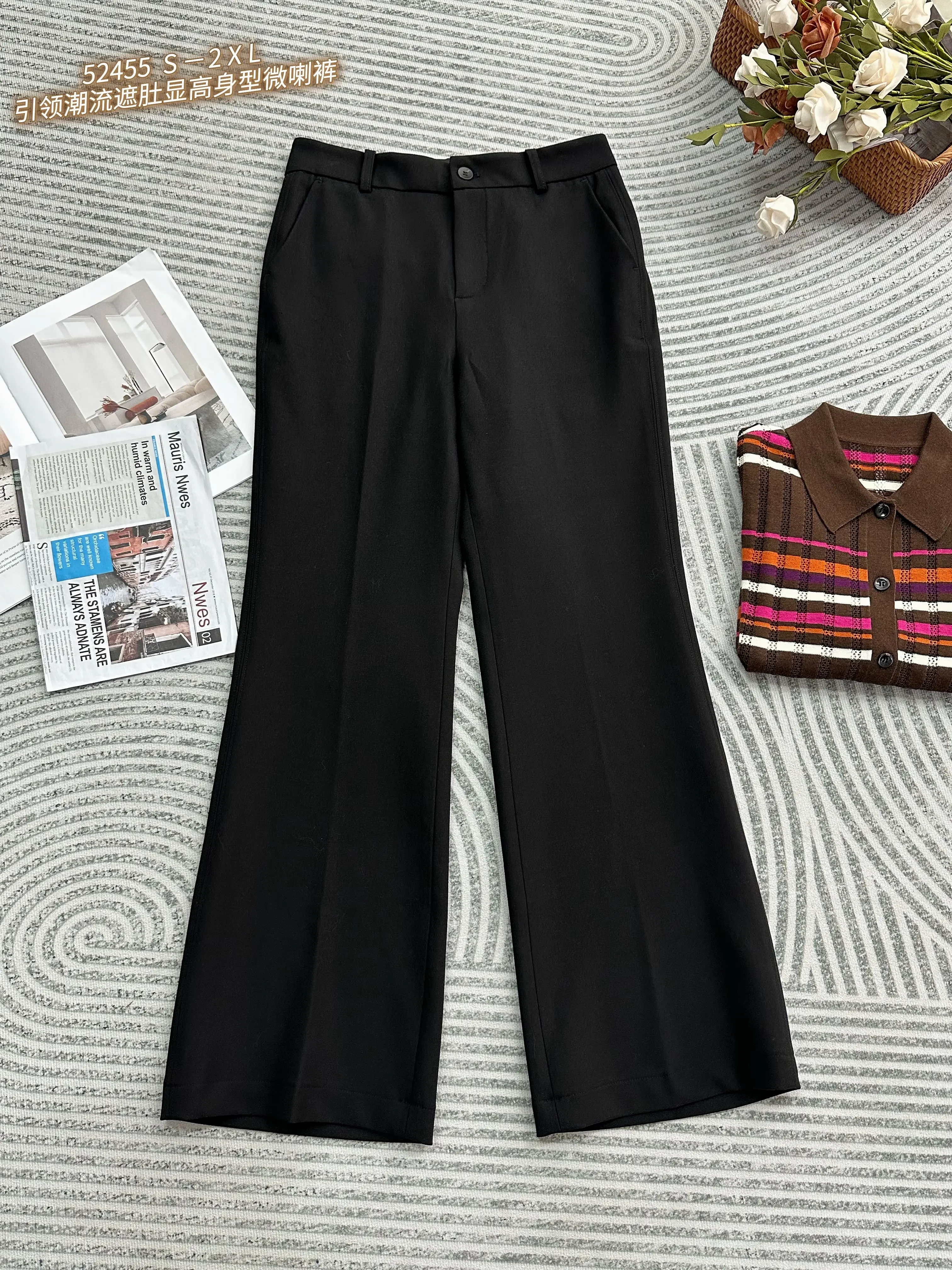Z52455#引领潮流遮肚显高身型微喇裤
