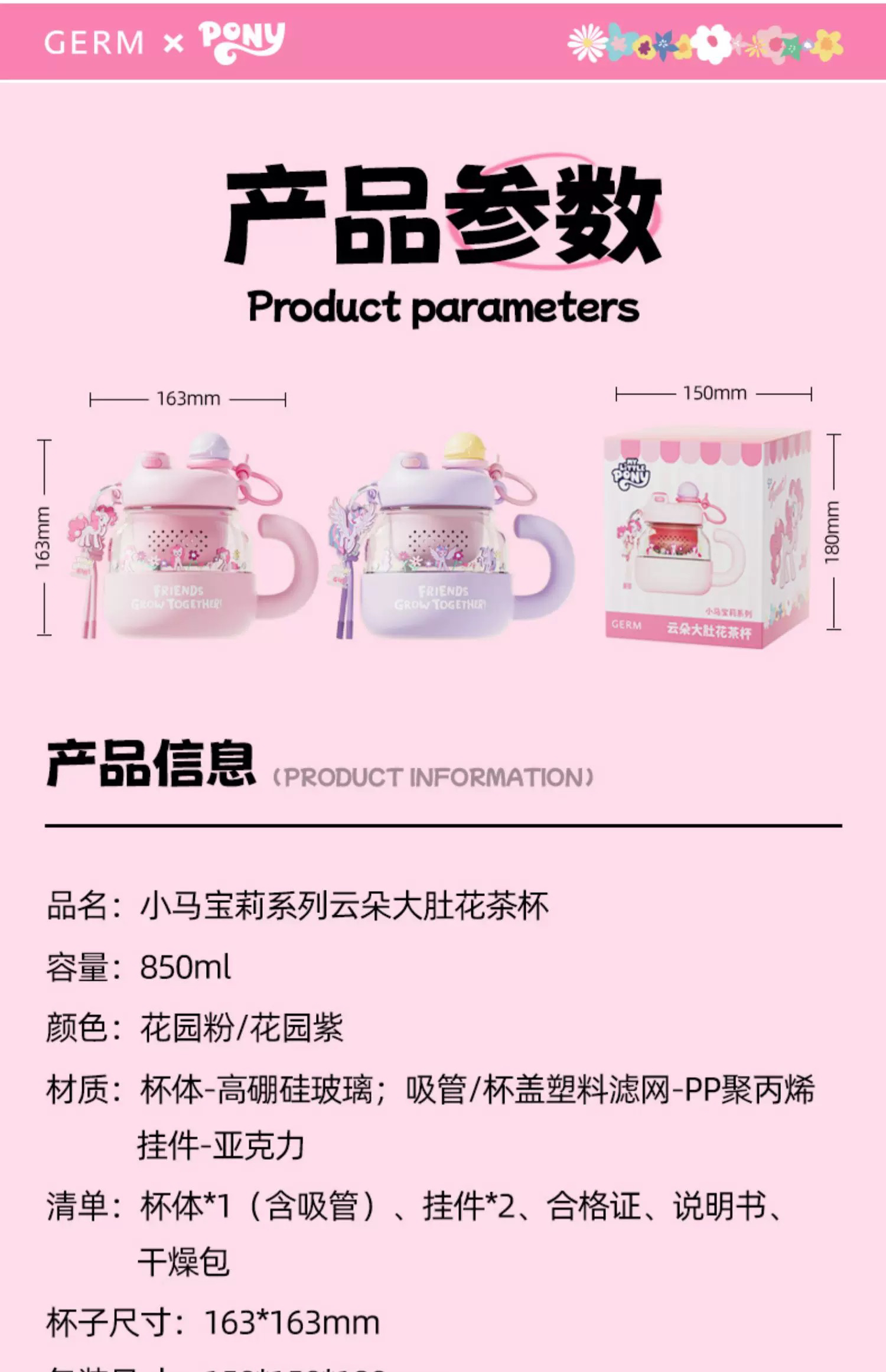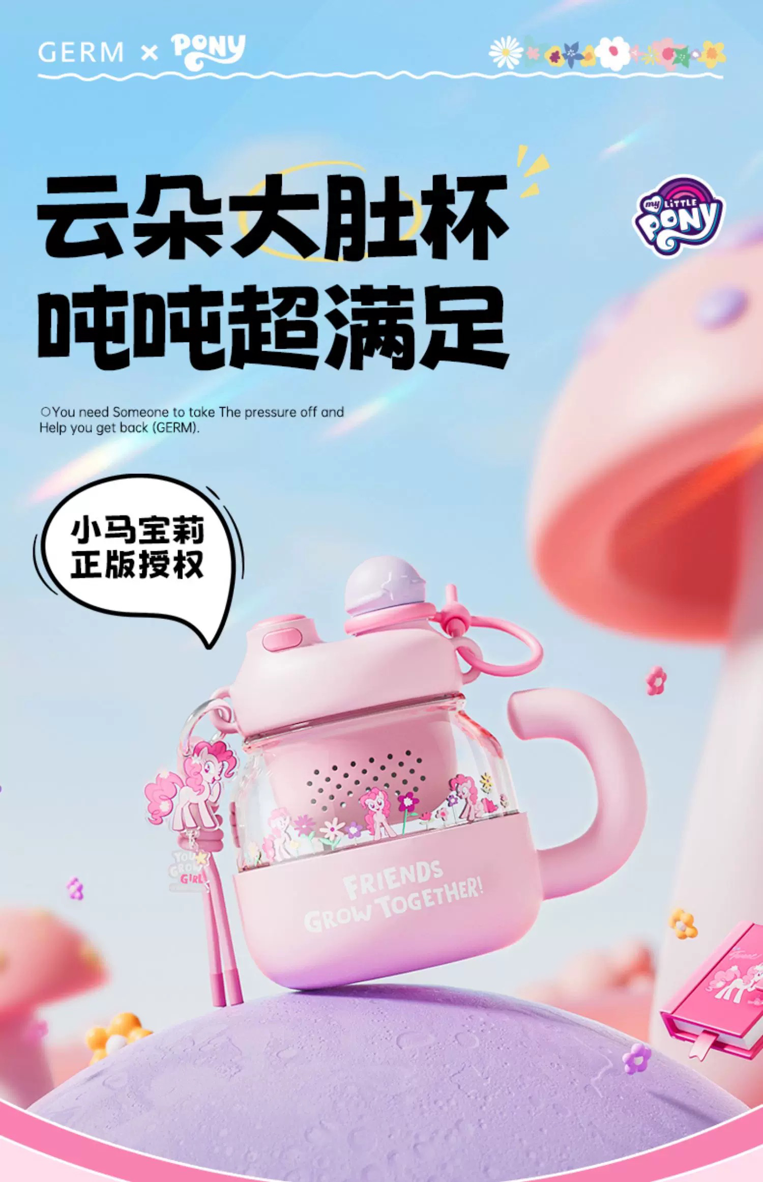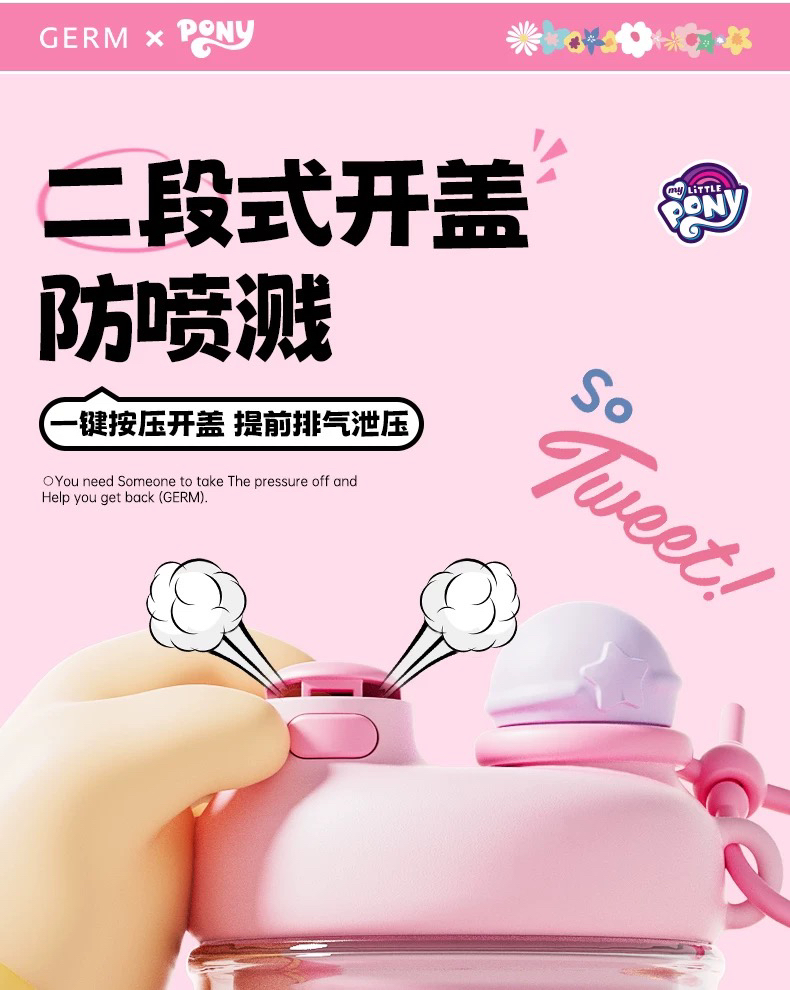 格沵 杯壶类保温杯小马云朵大肚花茶杯