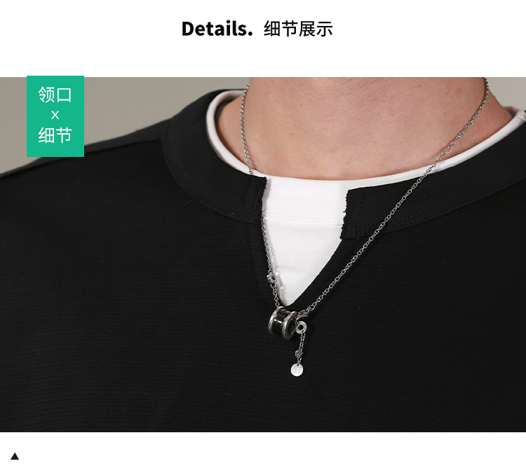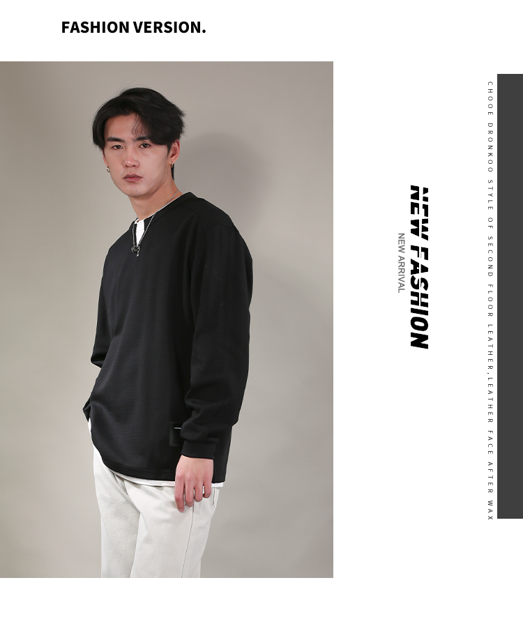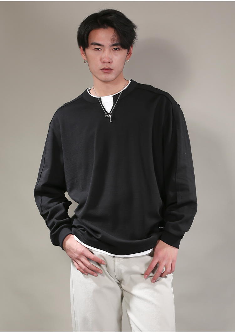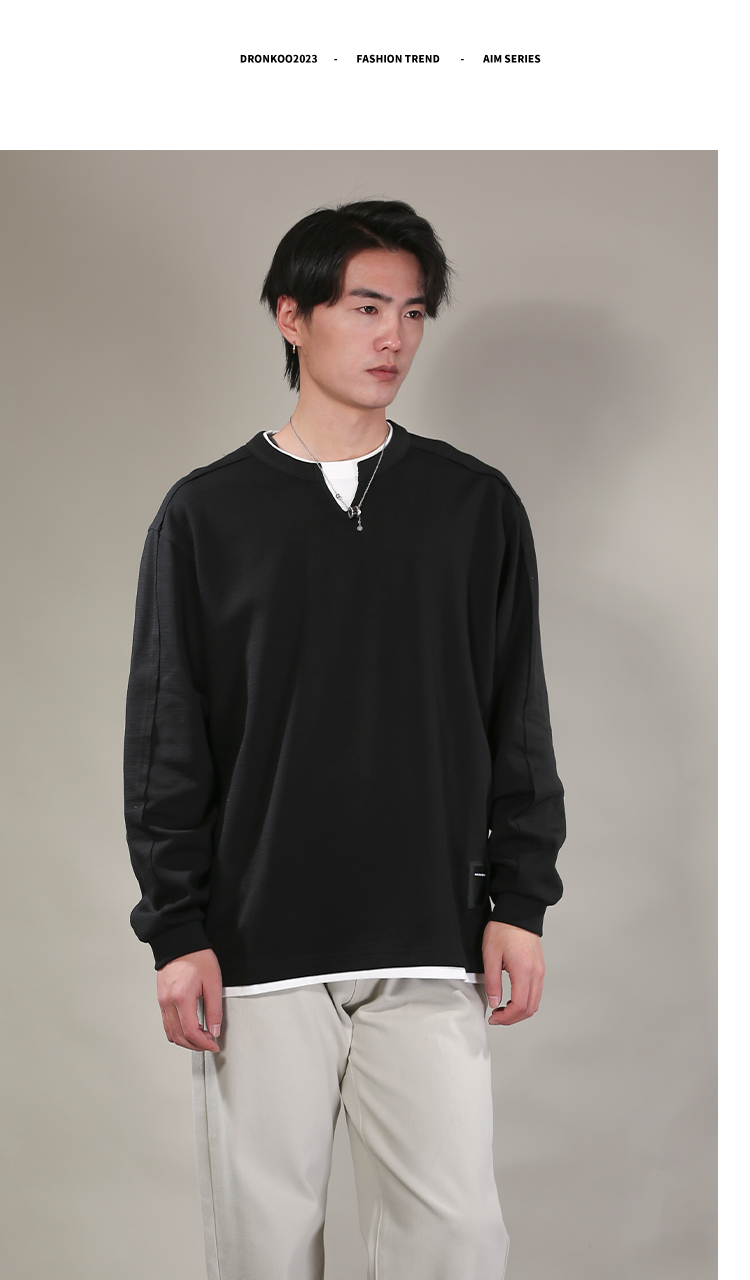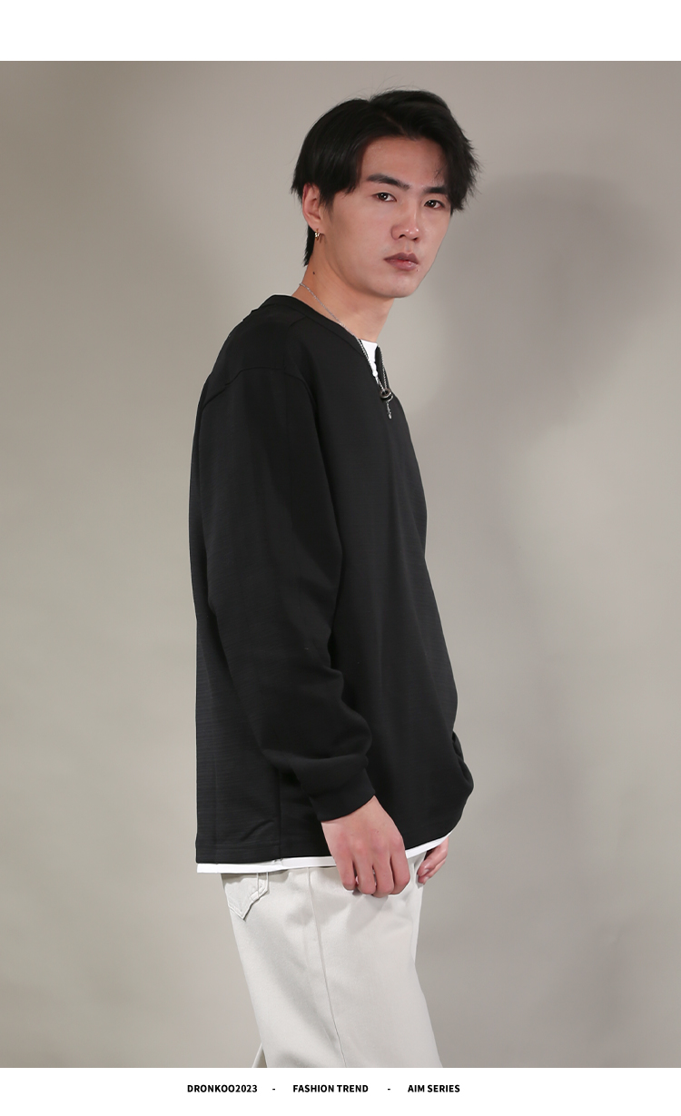 DRONKOO 2026 圆领小V领口下摆拼接T恤假两件长袖中厚T恤