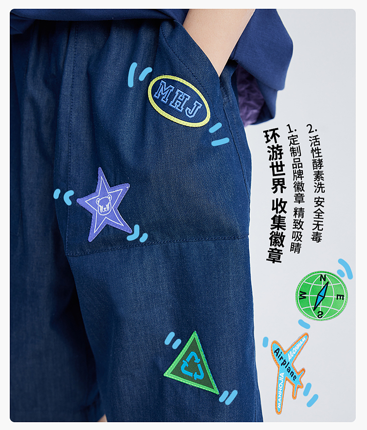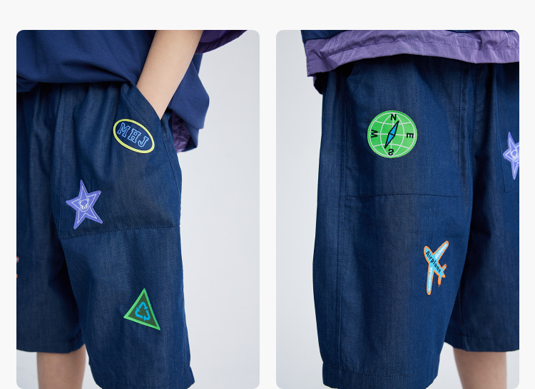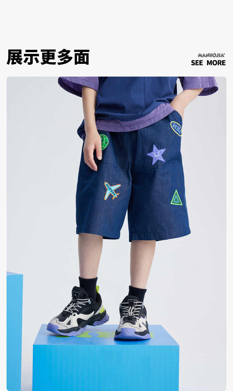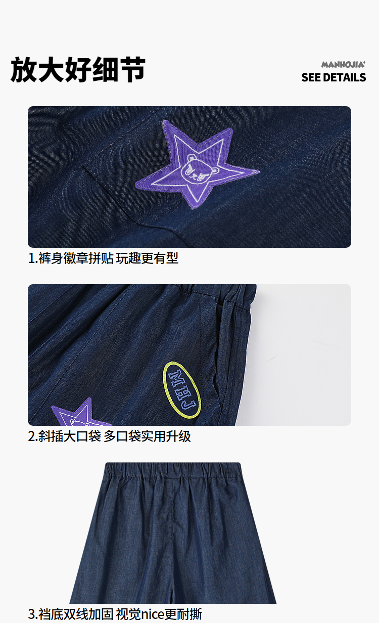 漫画家潮童装活性宽松工装轻薄透气防晒防蚊垂感阔腿长裤牛仔短裤