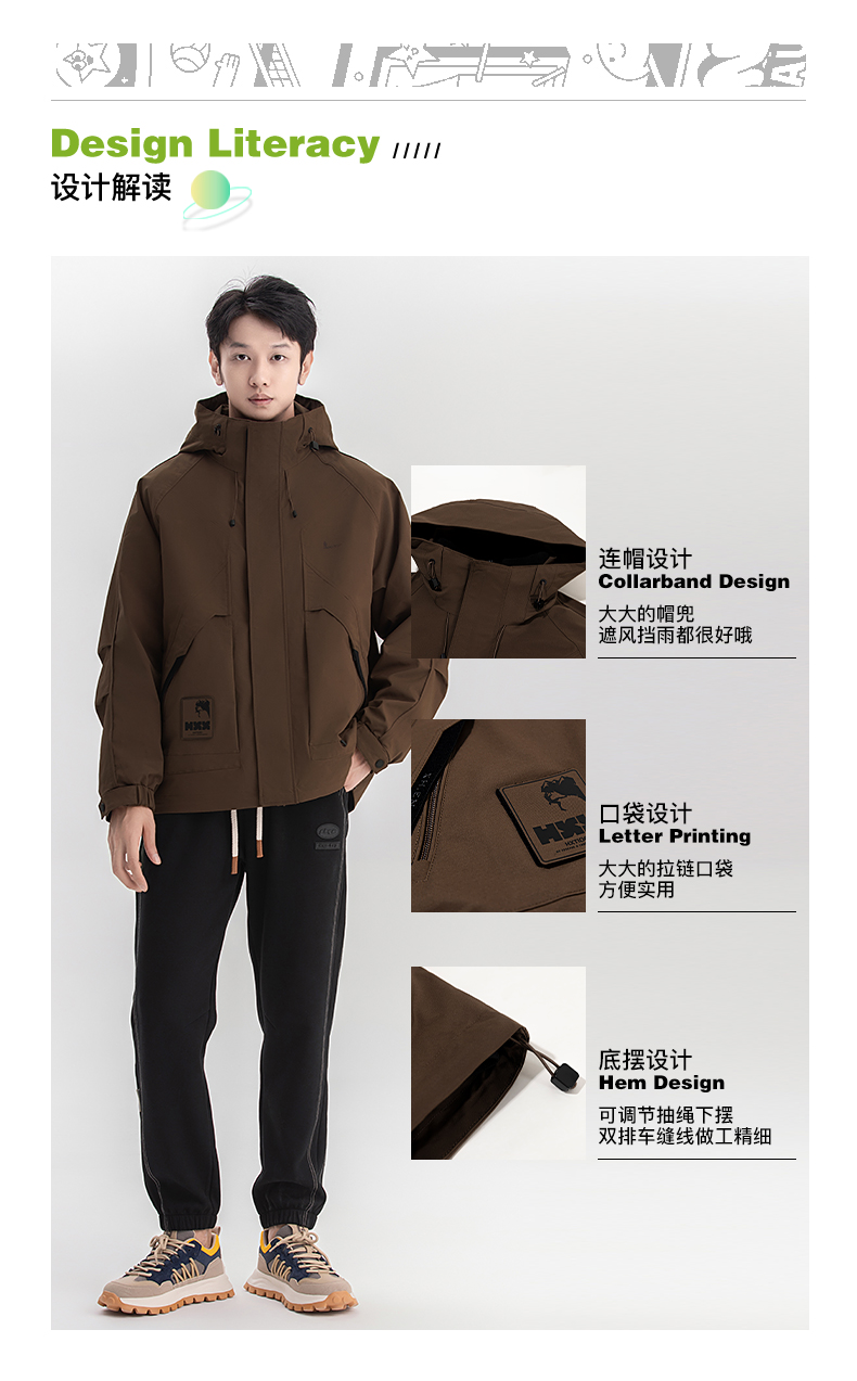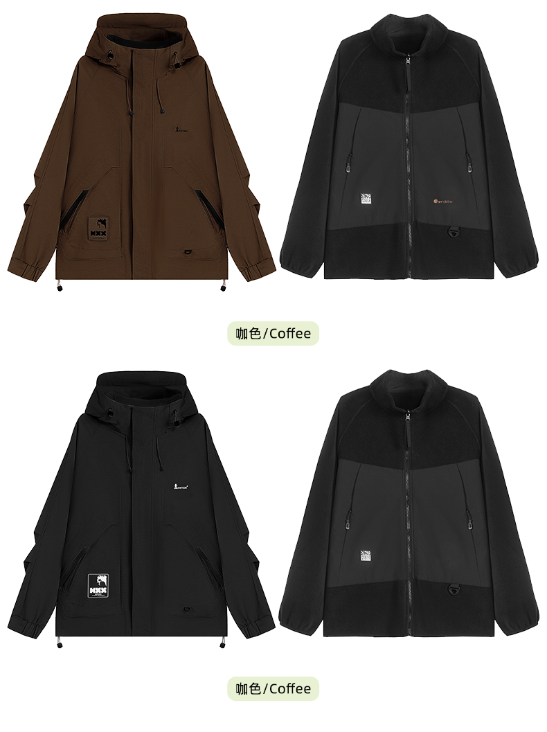 【热卖爆款】HXTIDE 春秋冬季两件套带帽茄克衫三合一冲锋衣户外登山/S105340006101
