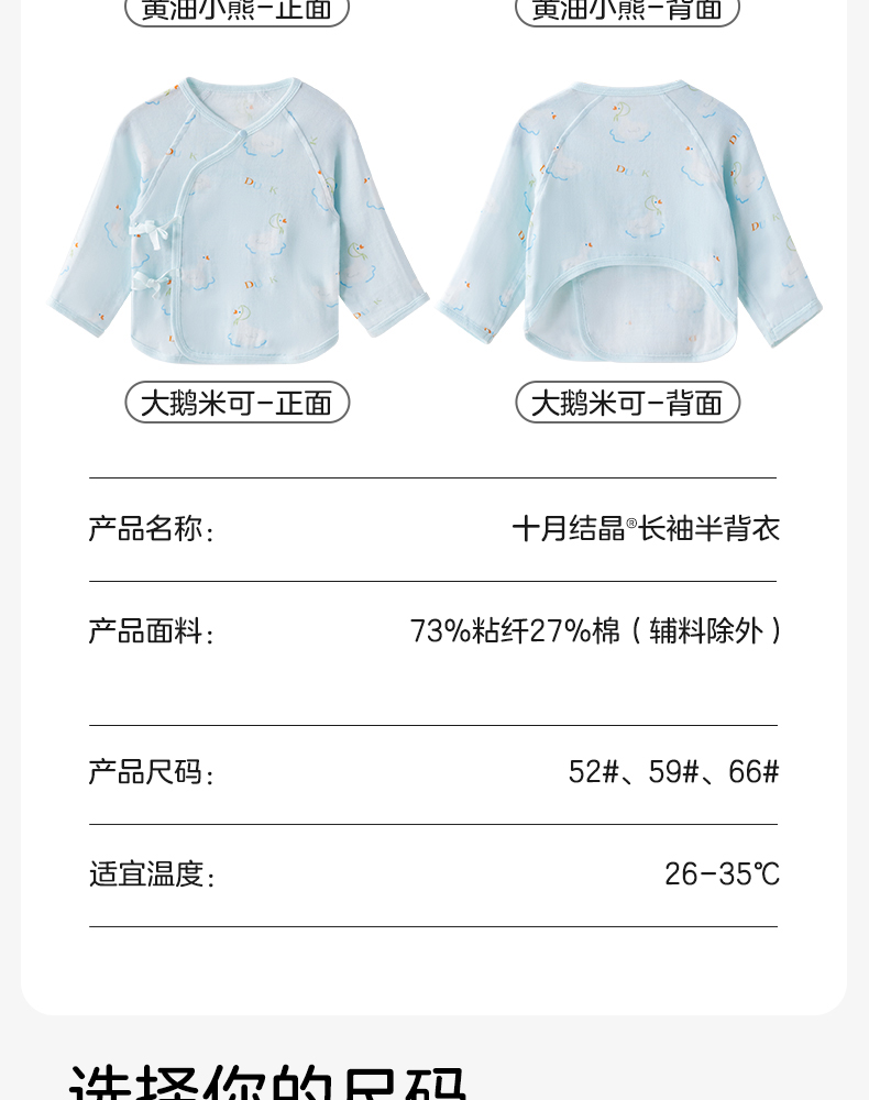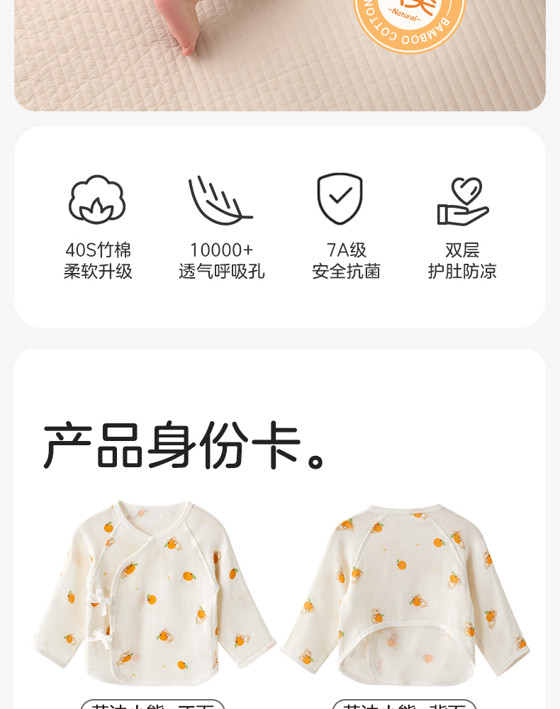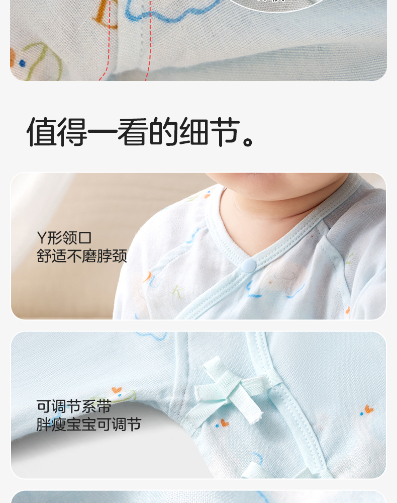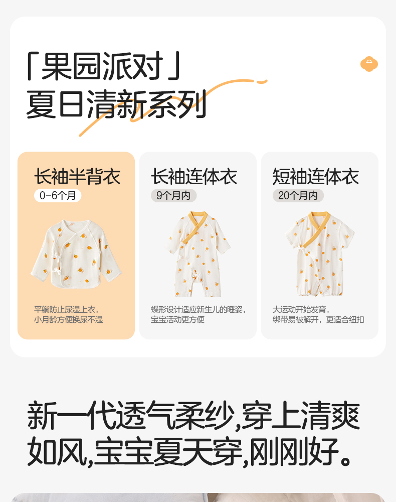 【任选两件,买一送一】新生儿夏季轻薄款竹棉长袖透气清爽排汗半背衣