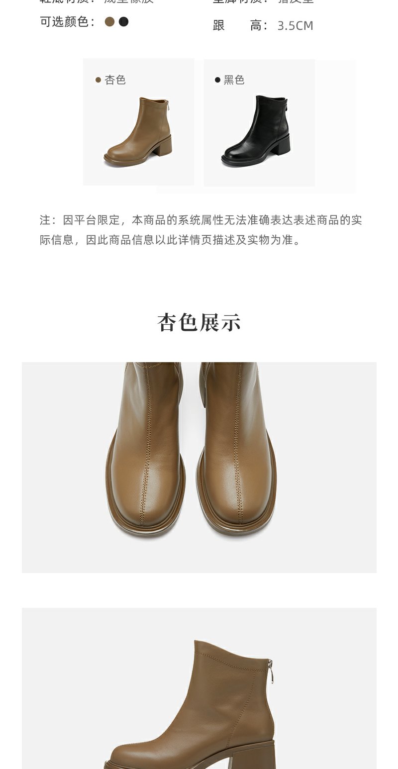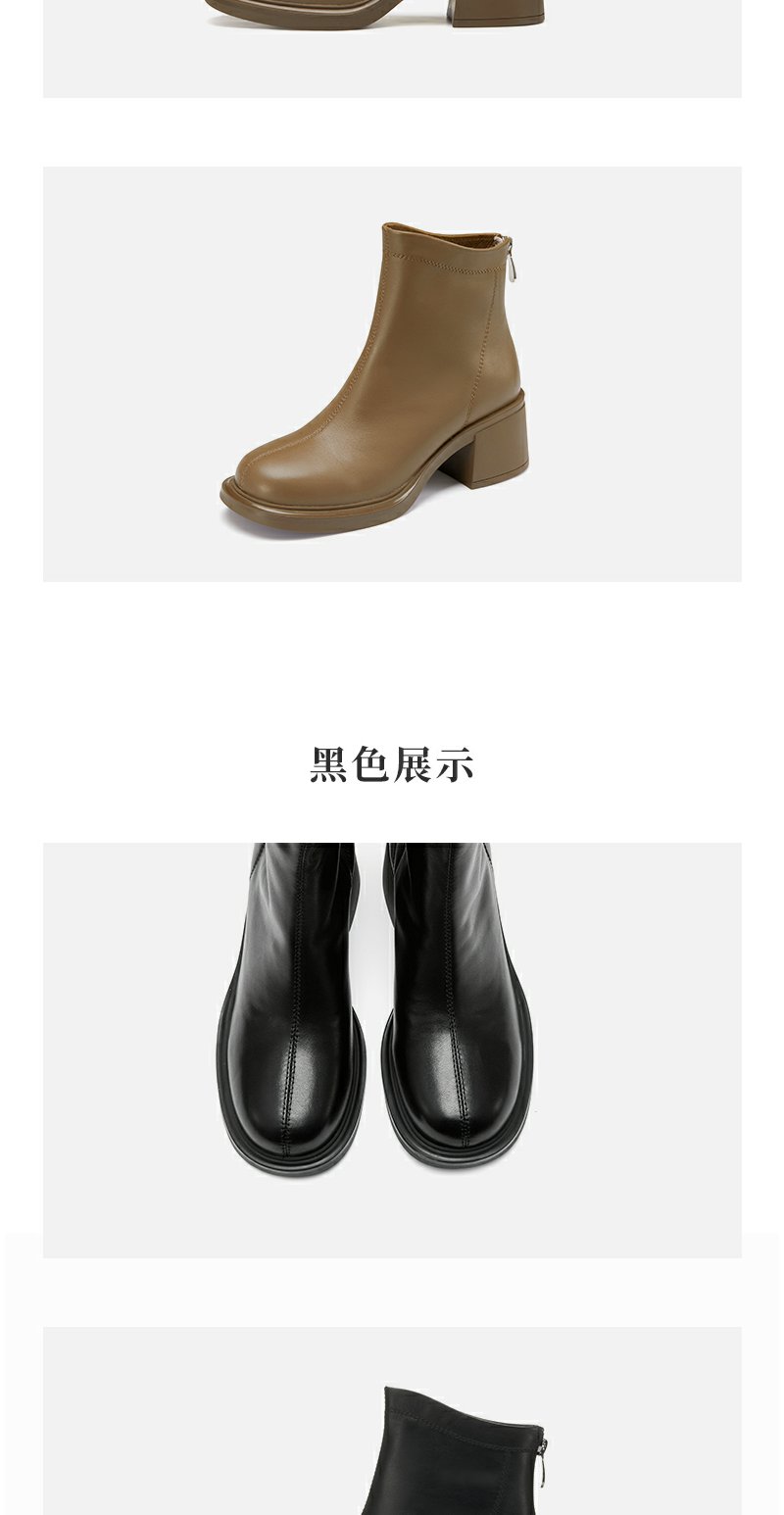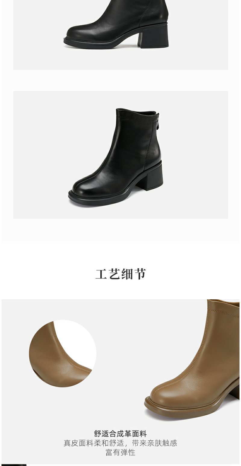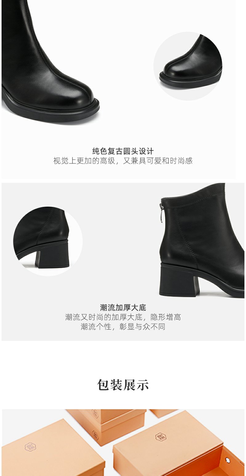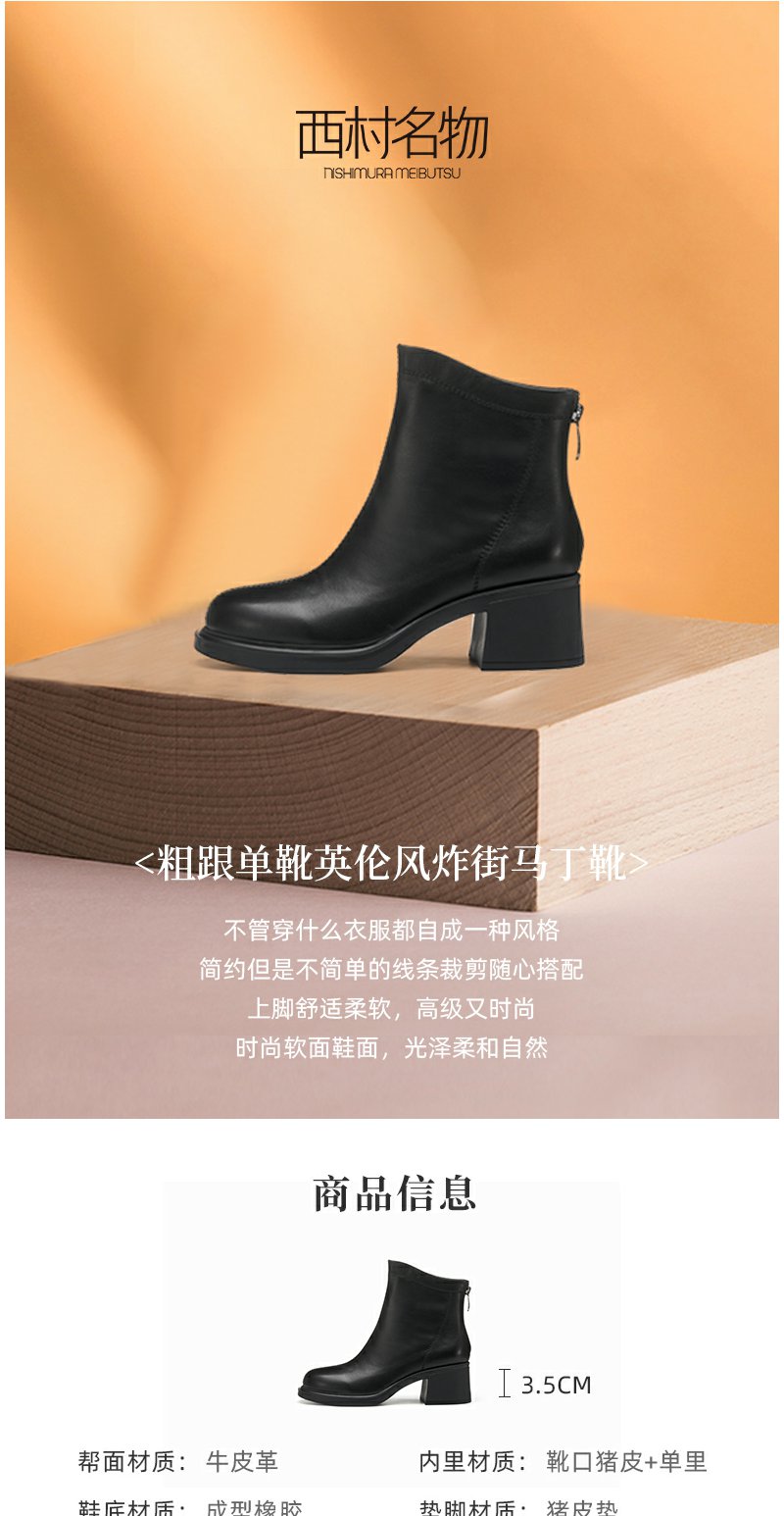 西村名物2022冬季新款牛皮酷飒短靴粗跟英伦风ins厚底机车靴44161