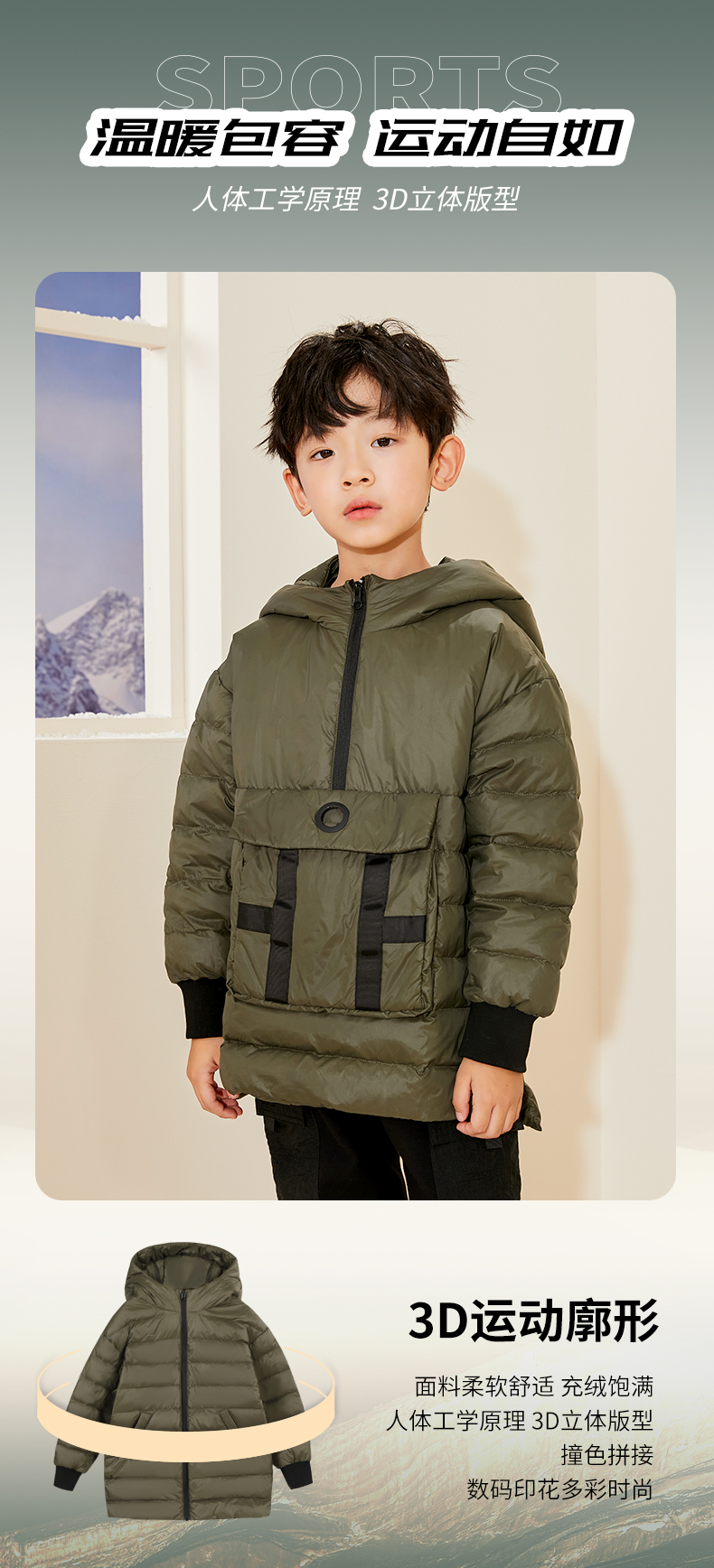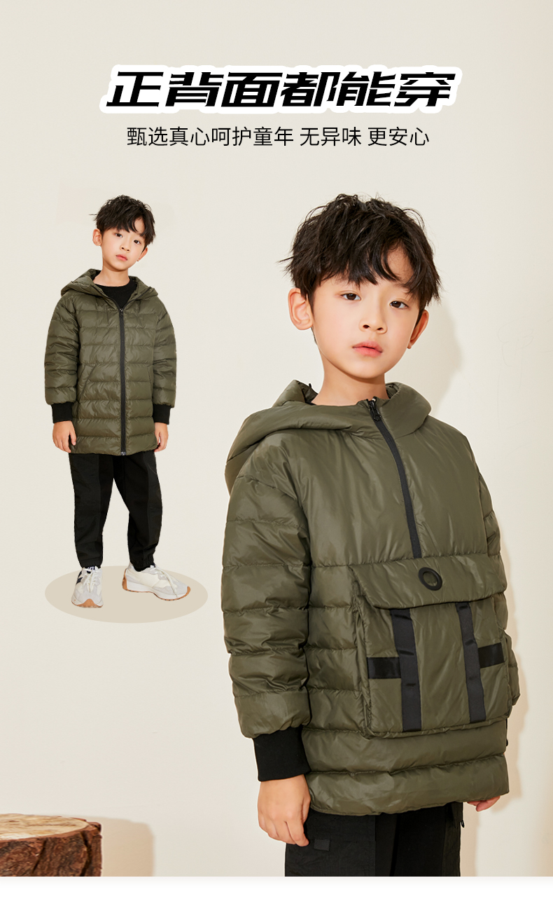 【男童90白鹅绒羽绒服】22年秋冬新品男童连帽中长款羽绒服时尚前后两穿外套
