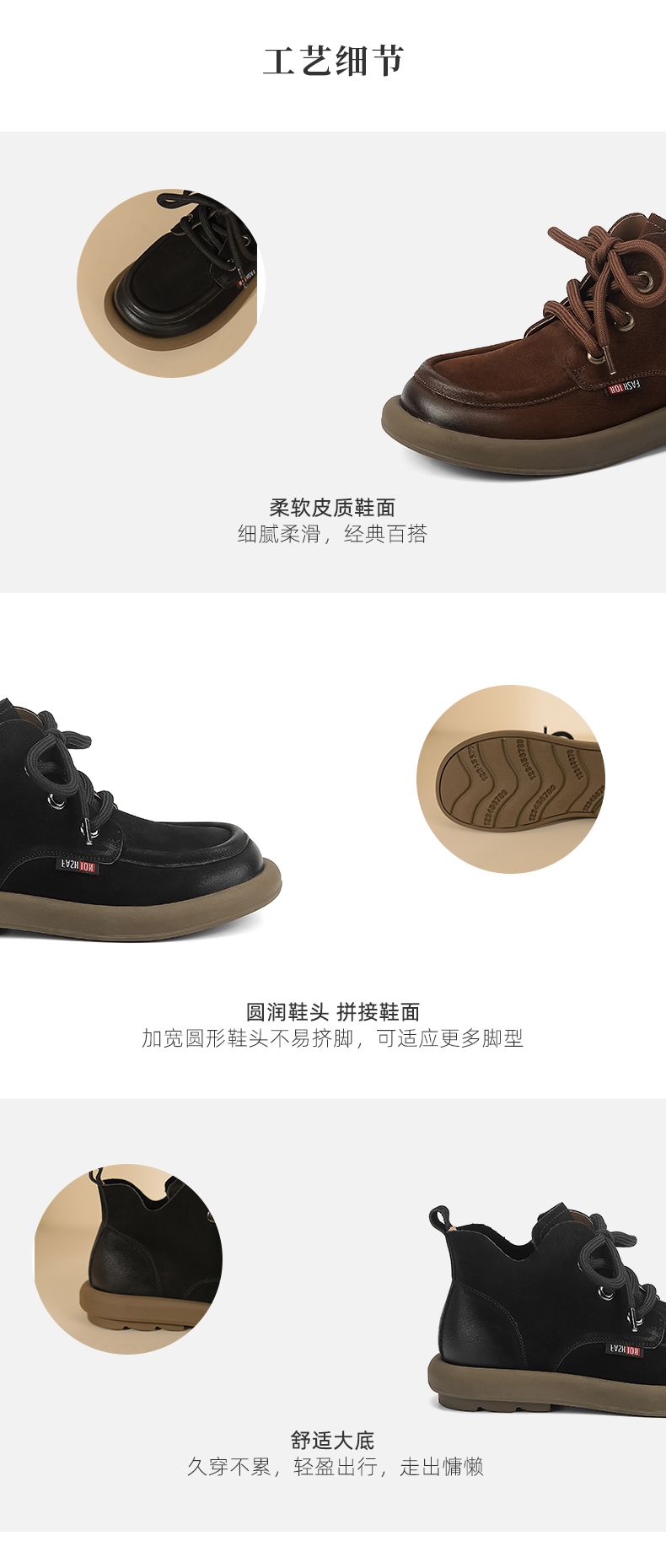 西村名物2023秋季新款百搭舒适圆头平底短靴复古马丁靴真皮软底T23DS44701