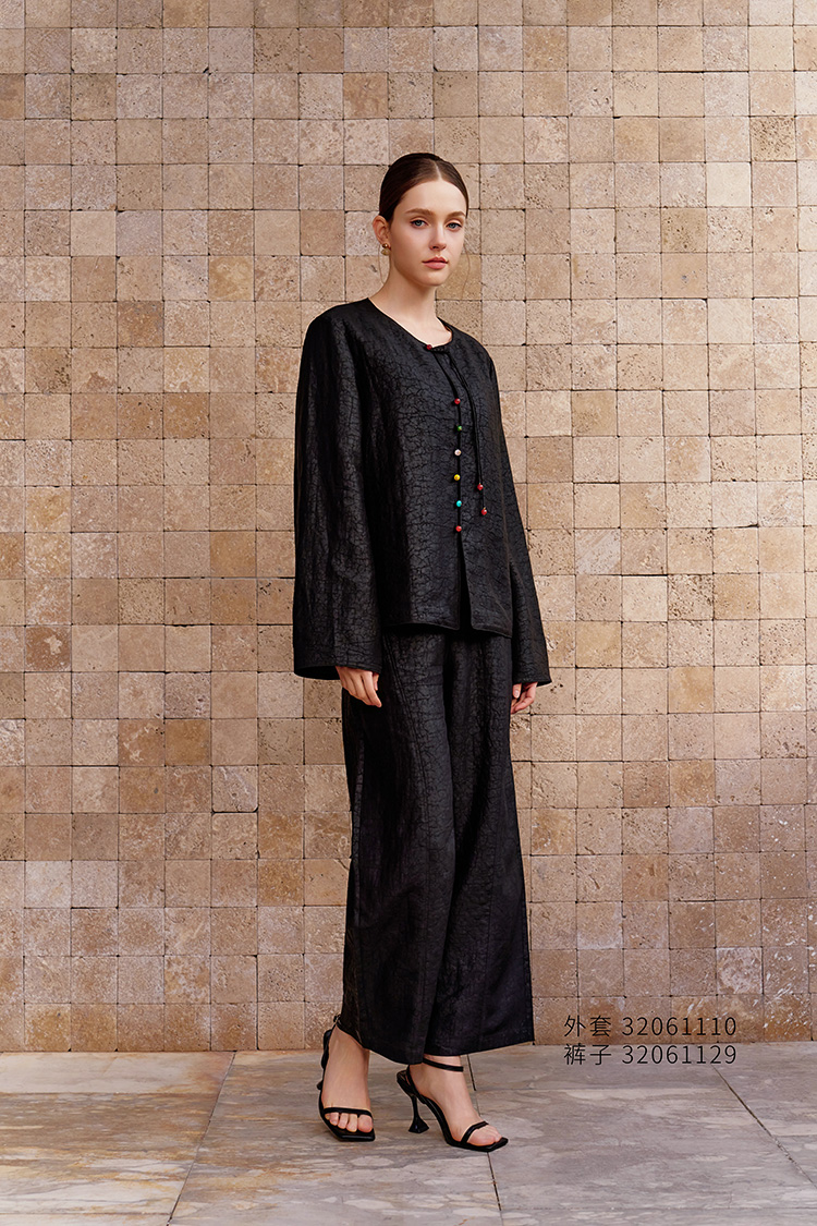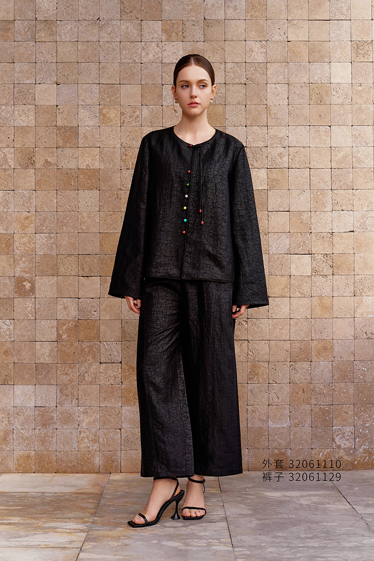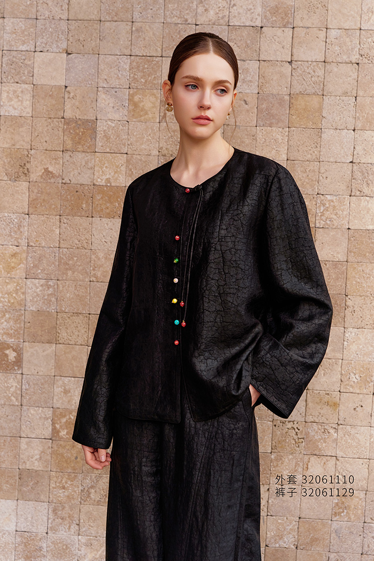 【碎裂纹复古外套】26年春夏新品100%桑蚕丝圆领真丝小外套