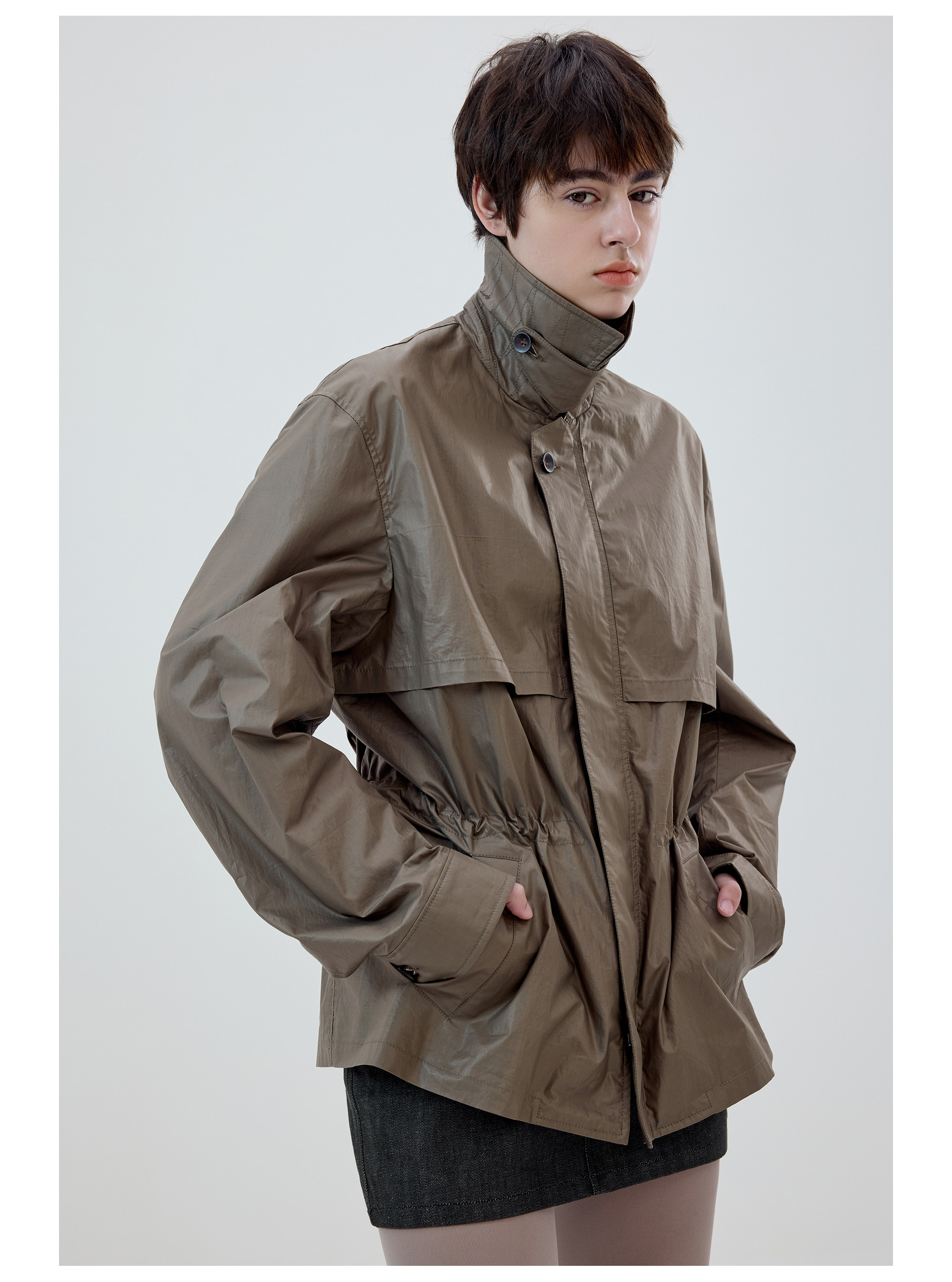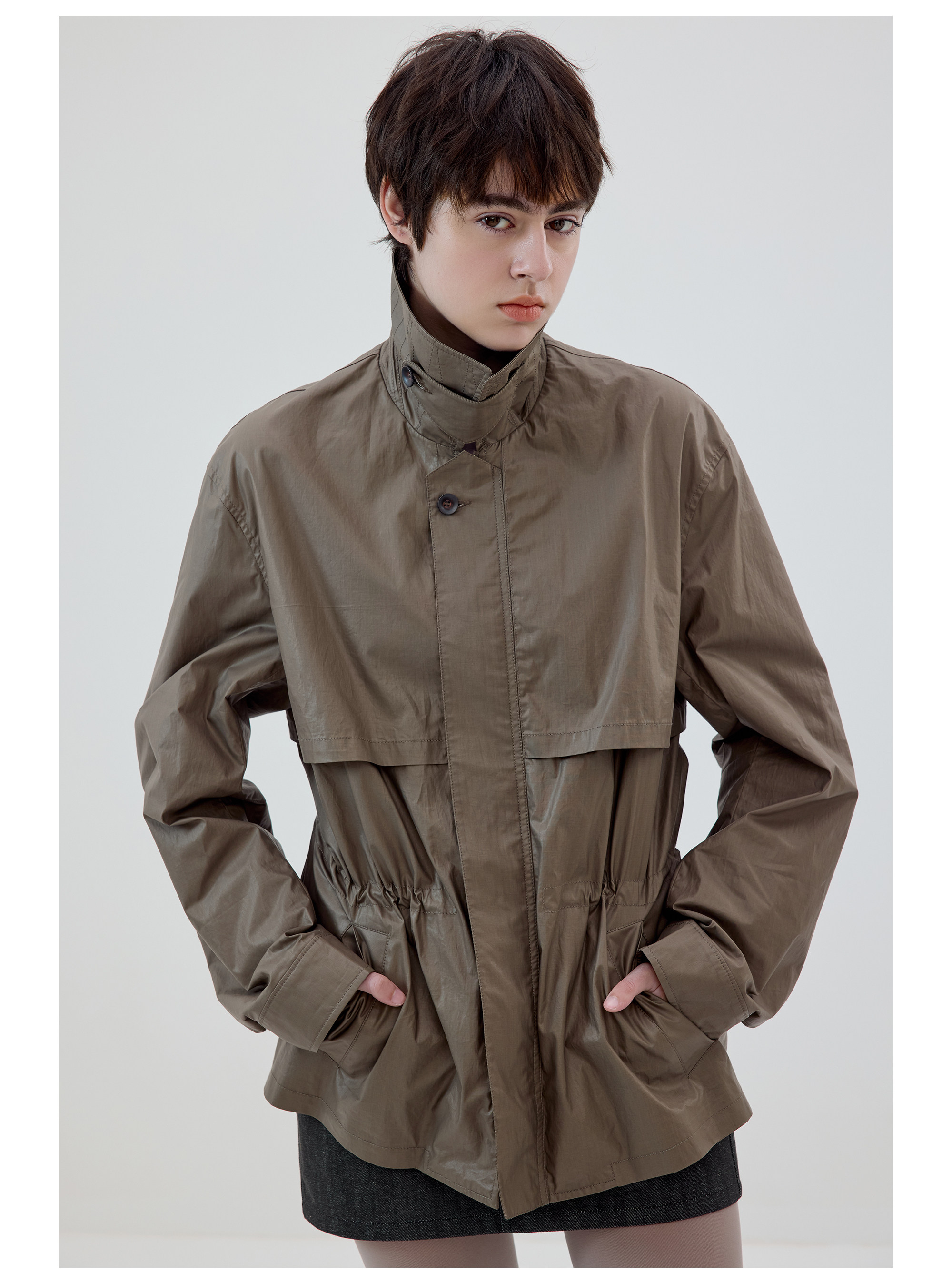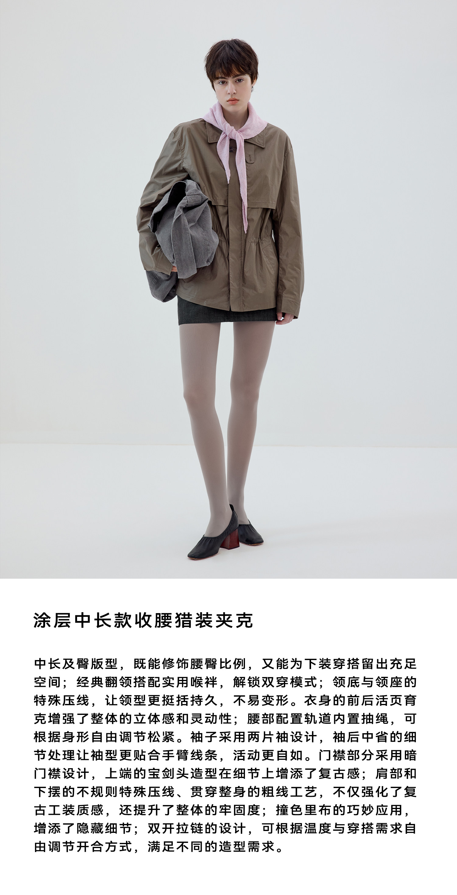 Simple Project/Y2608/涂层中长款收腰猎装夹克