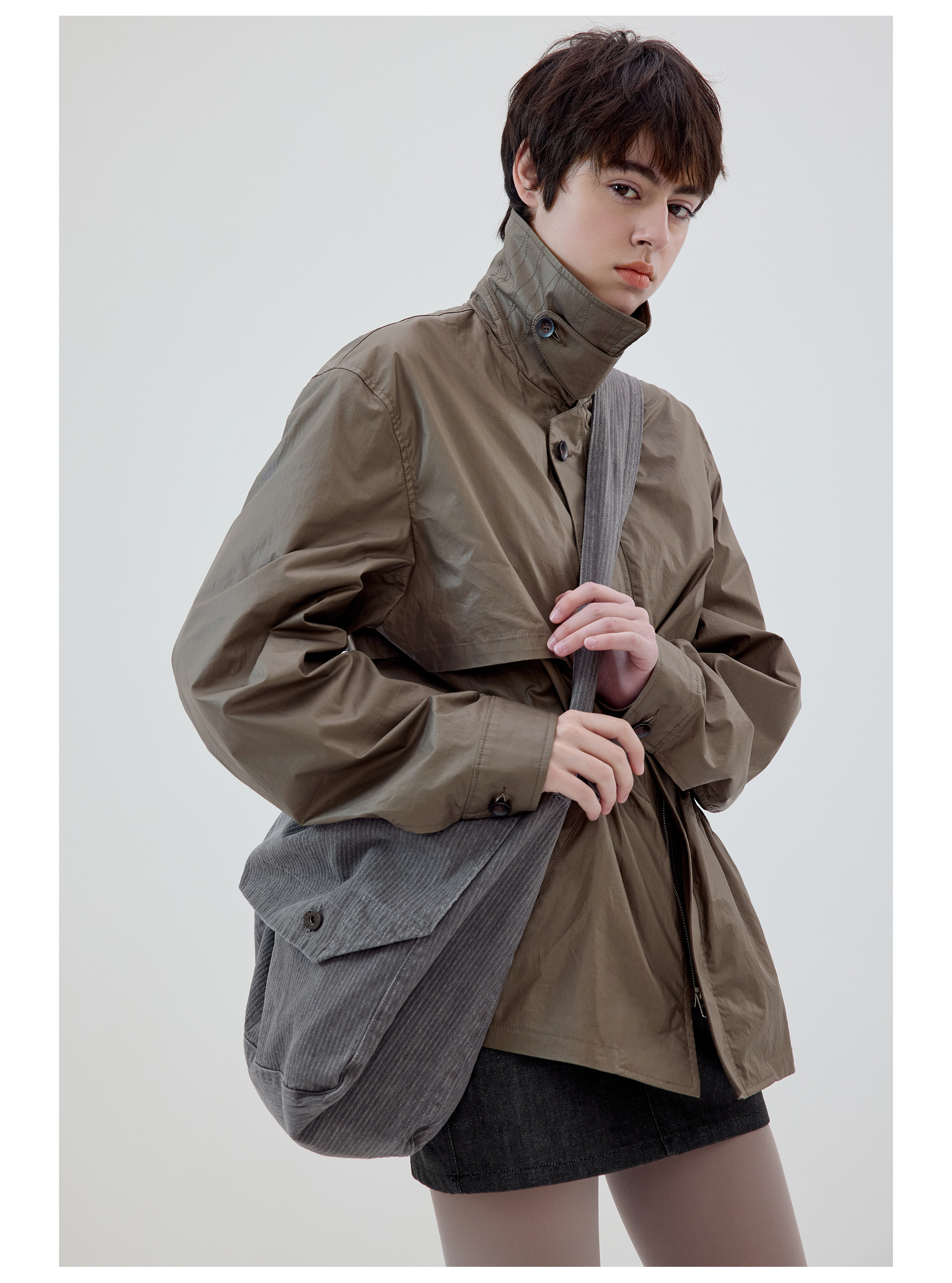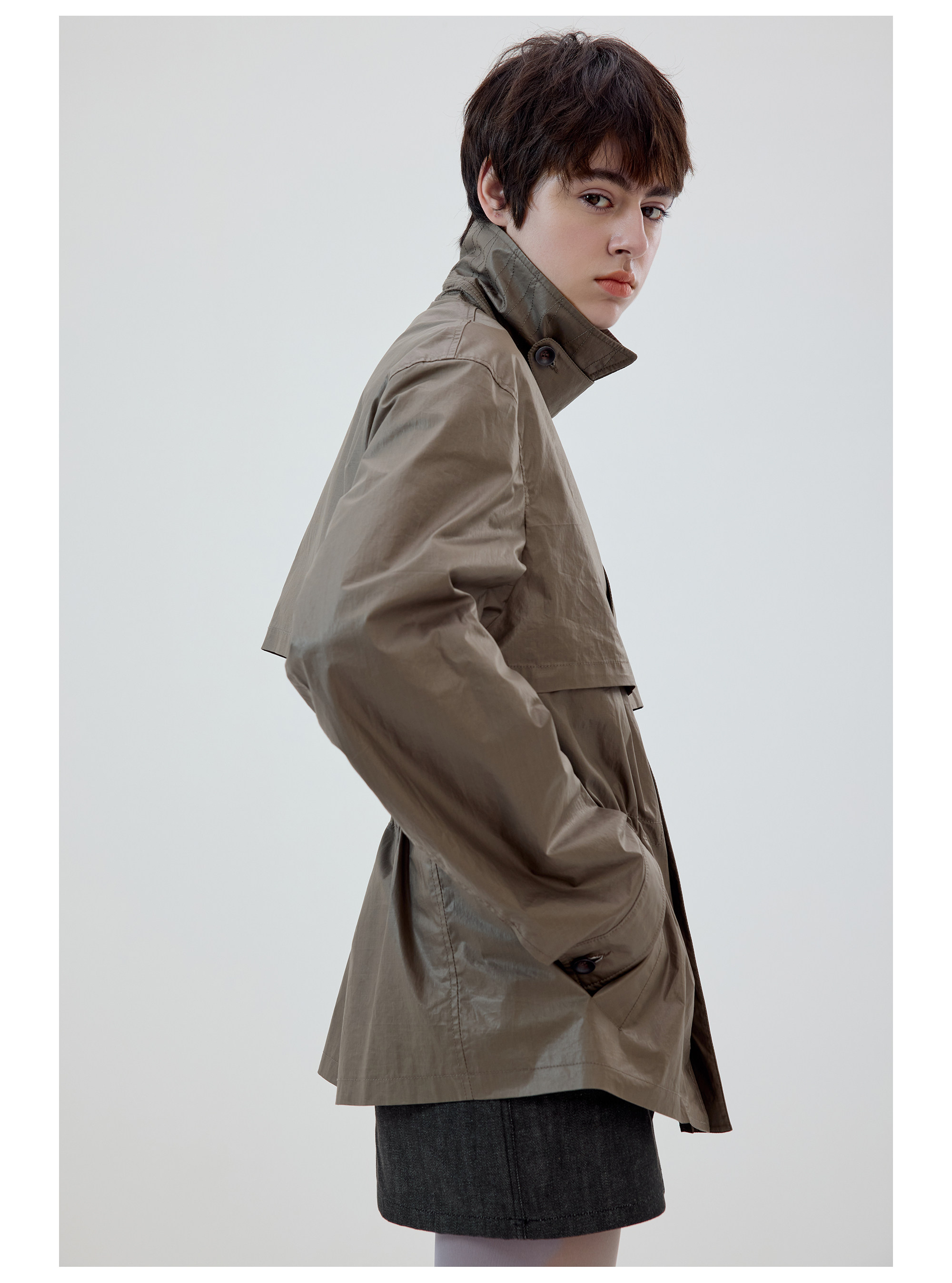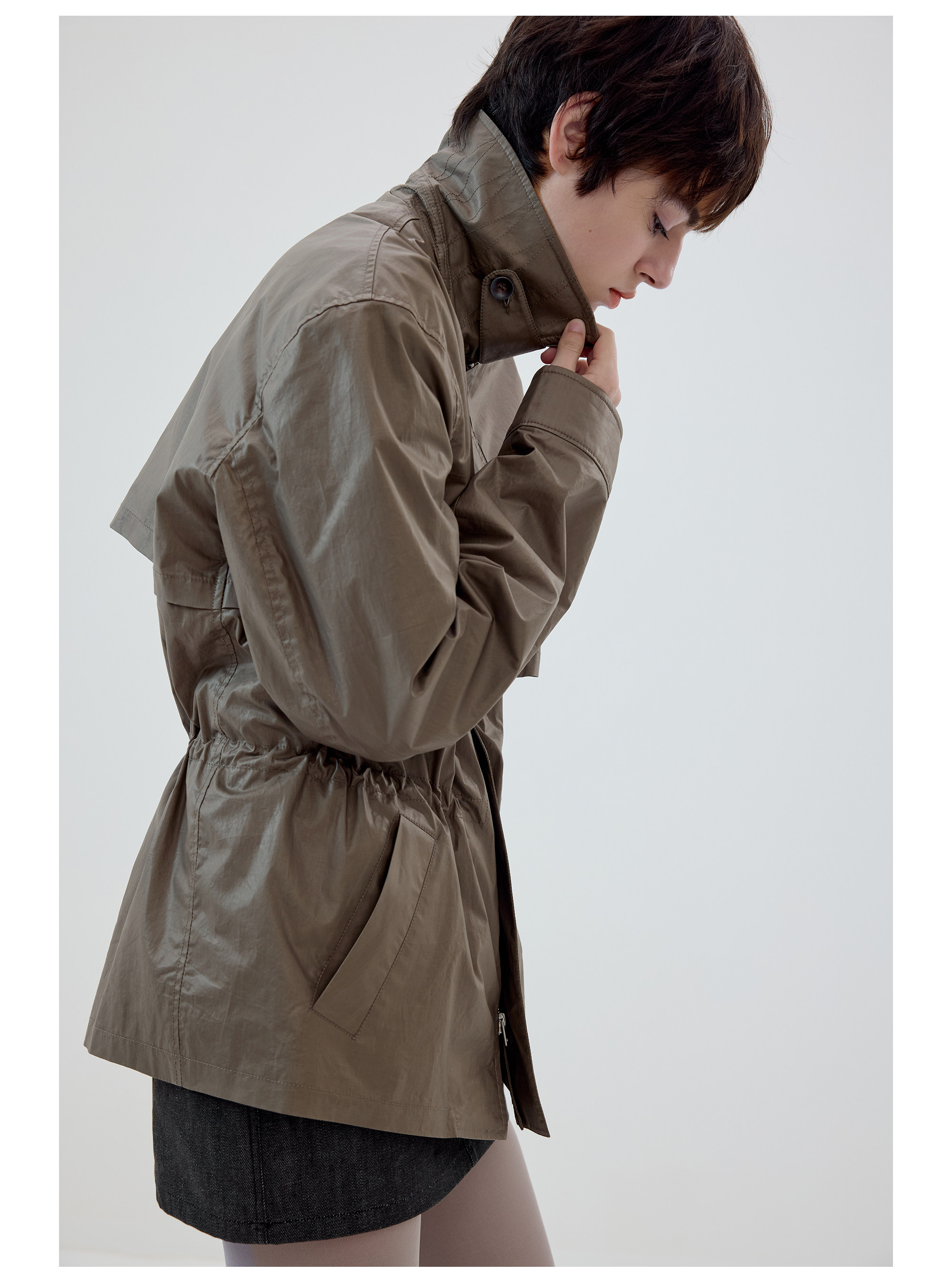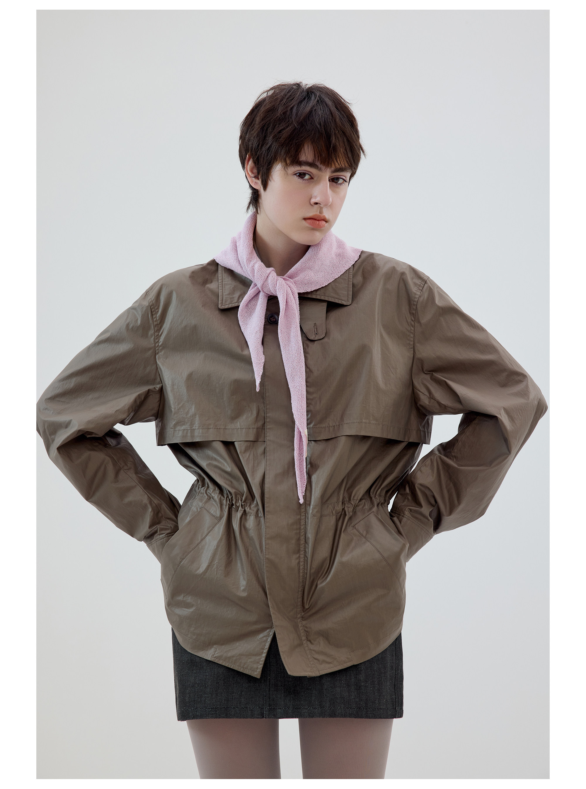 Simple Project/Y2608/涂层中长款收腰猎装夹克