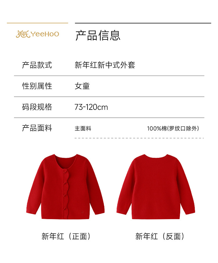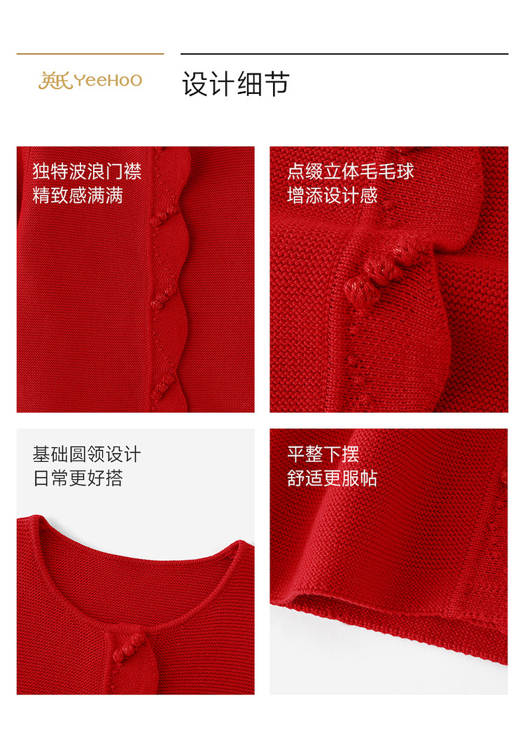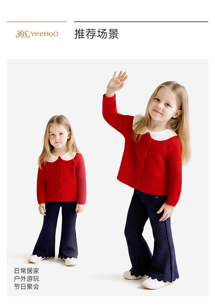 英氏女童毛衣儿童新款超好看红色针织衫新年喜庆童装YRWWJ1S001A