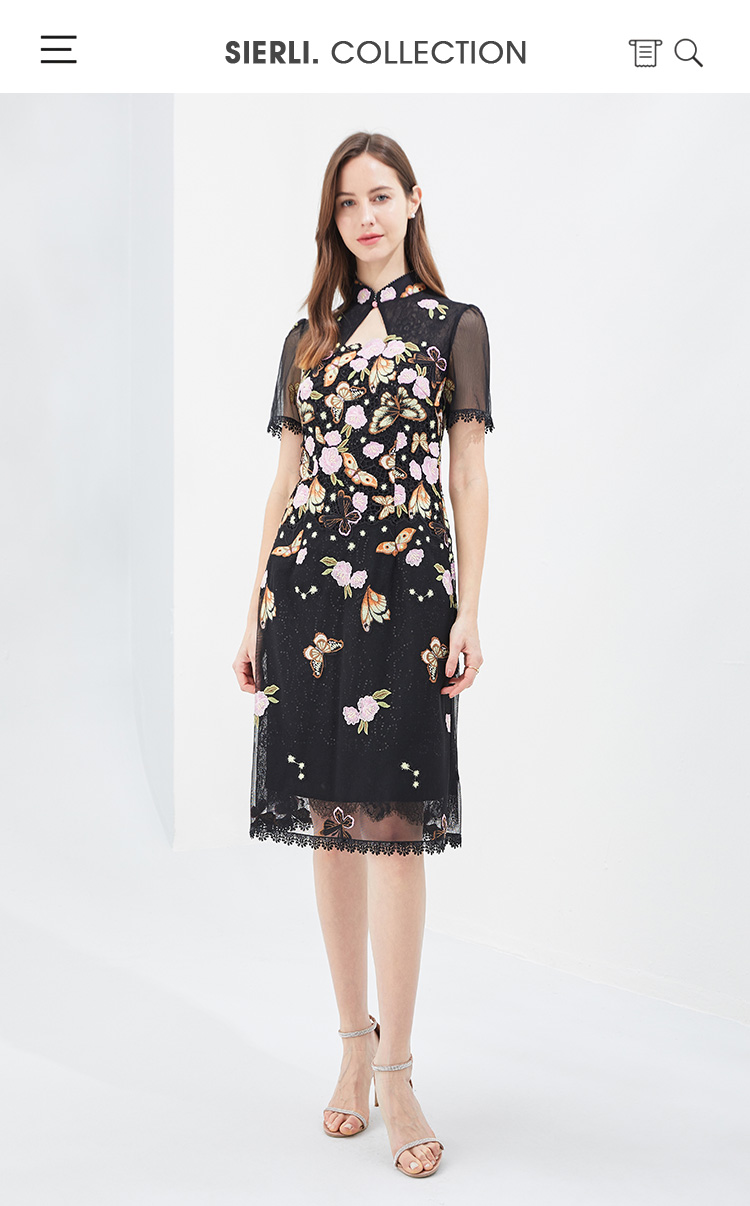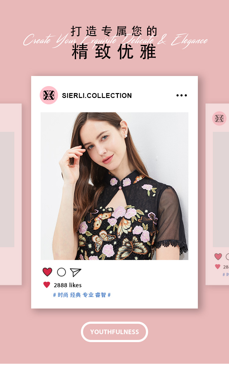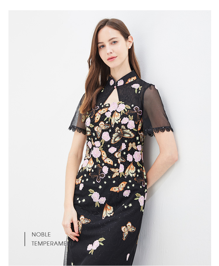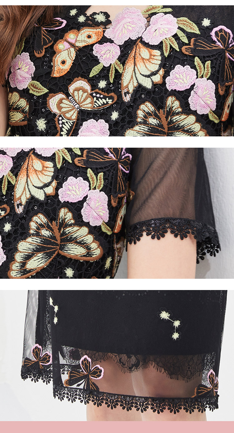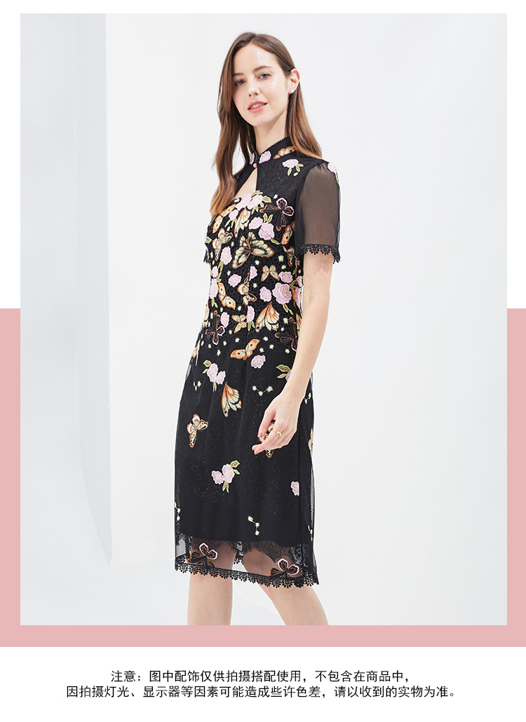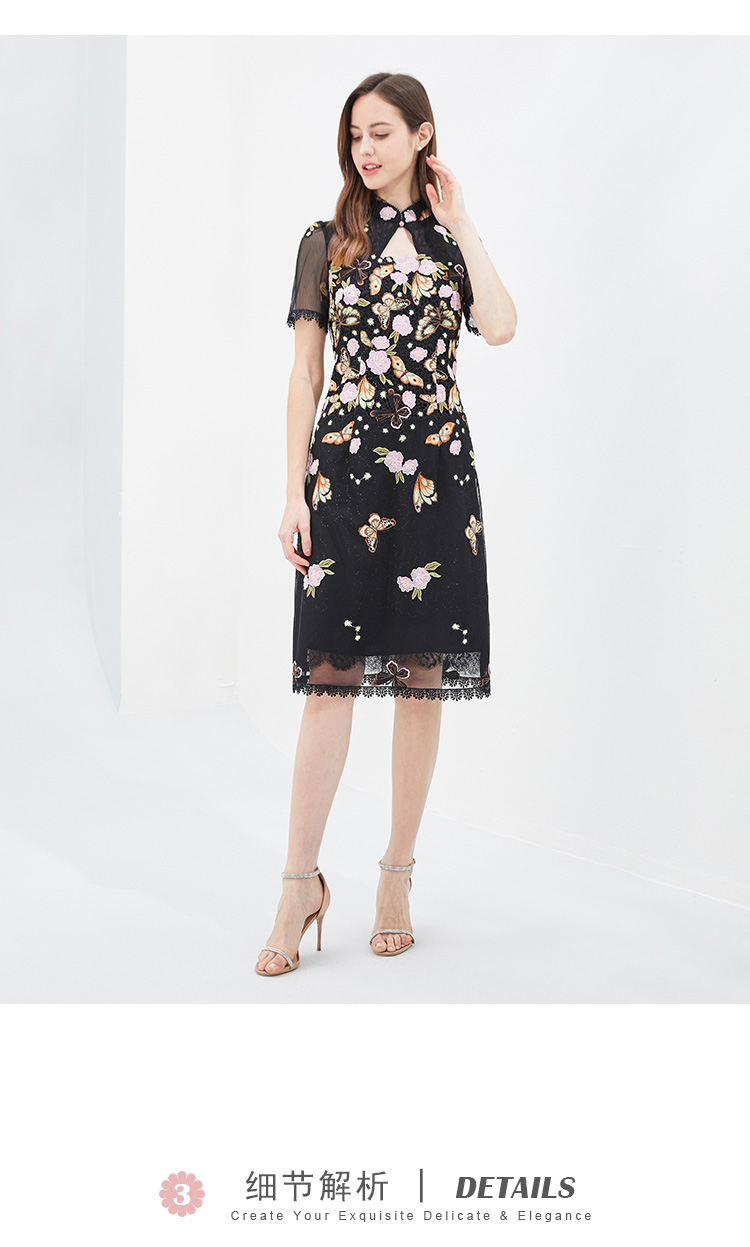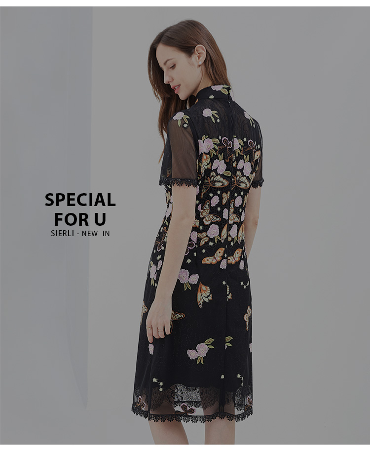 PG85E斯尔丽斯尔丽瑟俪2021年夏季上新 优雅蝴蝶定位绣合体蕾丝裙
