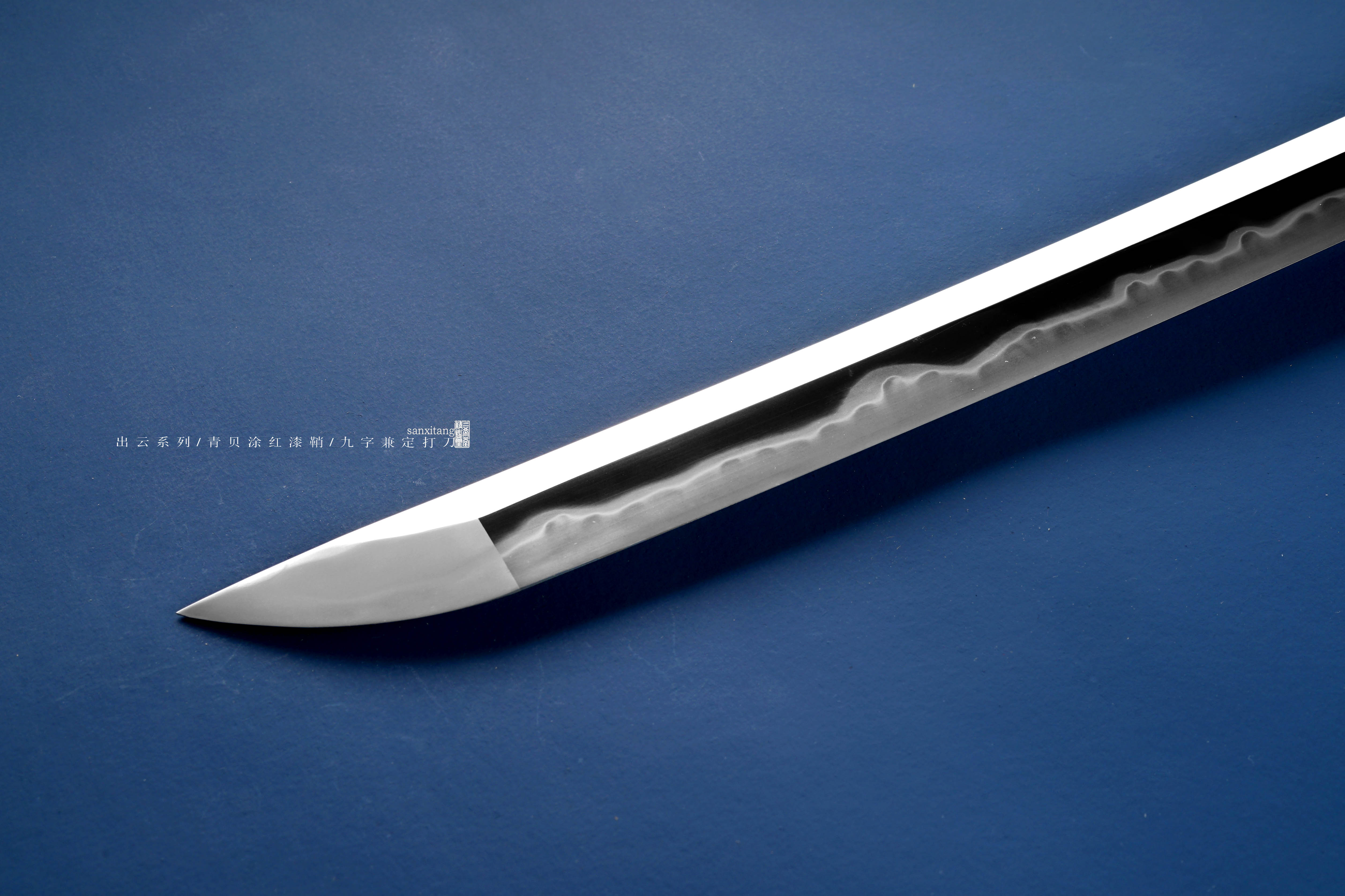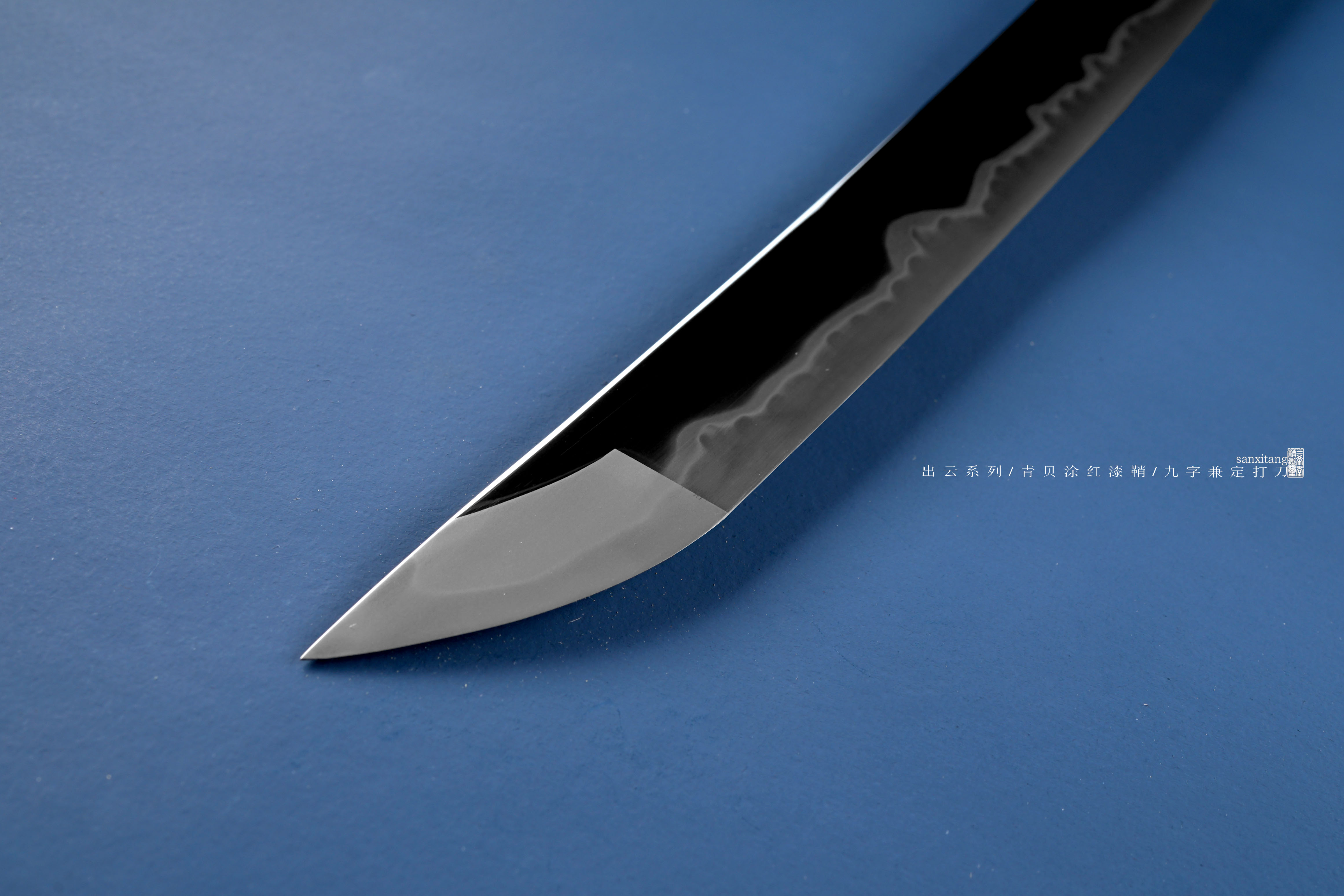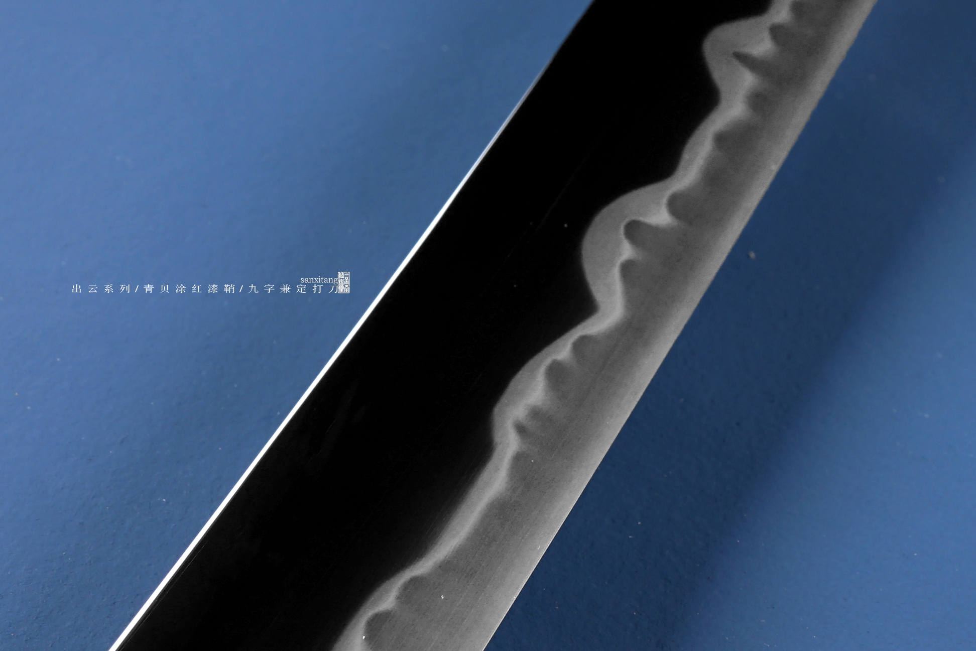 现货两只 这个大家都很熟悉了 茎上有"临兵闘者皆阵列在前"九个字 这句话被称为九字真言 再配上匠人名字 这只刀因此被称作九字兼定 我们正式开始给大家定制 我们自己锻打的8000余层高碳钢 传统方法覆土烧刃 刀的弧度是淬火的时候自然形成的 手工用各种磨刀石一道一道磨出来的 点线面清晰分明 线条挺拔立体 三色明显 表面柔顺细腻 柄和鞘不再像入门级别的一样是通用鞘了 都是全手工根据刀条一比一制作的 贴合度可以说是完美 镶天然牛角型制还原日式味道 这一步的成本能买一把入门级别的刀了 日本进口真丝柄卷+大颗粒珍珠鱼皮 手工缠绳 质感相当不错 传统天然大漆鞘 朱漆撒贝母 档次很高 这只作品可以说是现代美学和传统工艺的完美结合 我自己很满意的一把好刀 今年我们6800和9800两个价格的日本叨作品 工期最迟不超过2个月 全部保证品控和效率 年后也会专门做一个进度查询平台 让大家可以自行查看爱刀做到哪一步了 非常感谢各位支持 这只作品大家自己玩或者送礼都相当合适!!