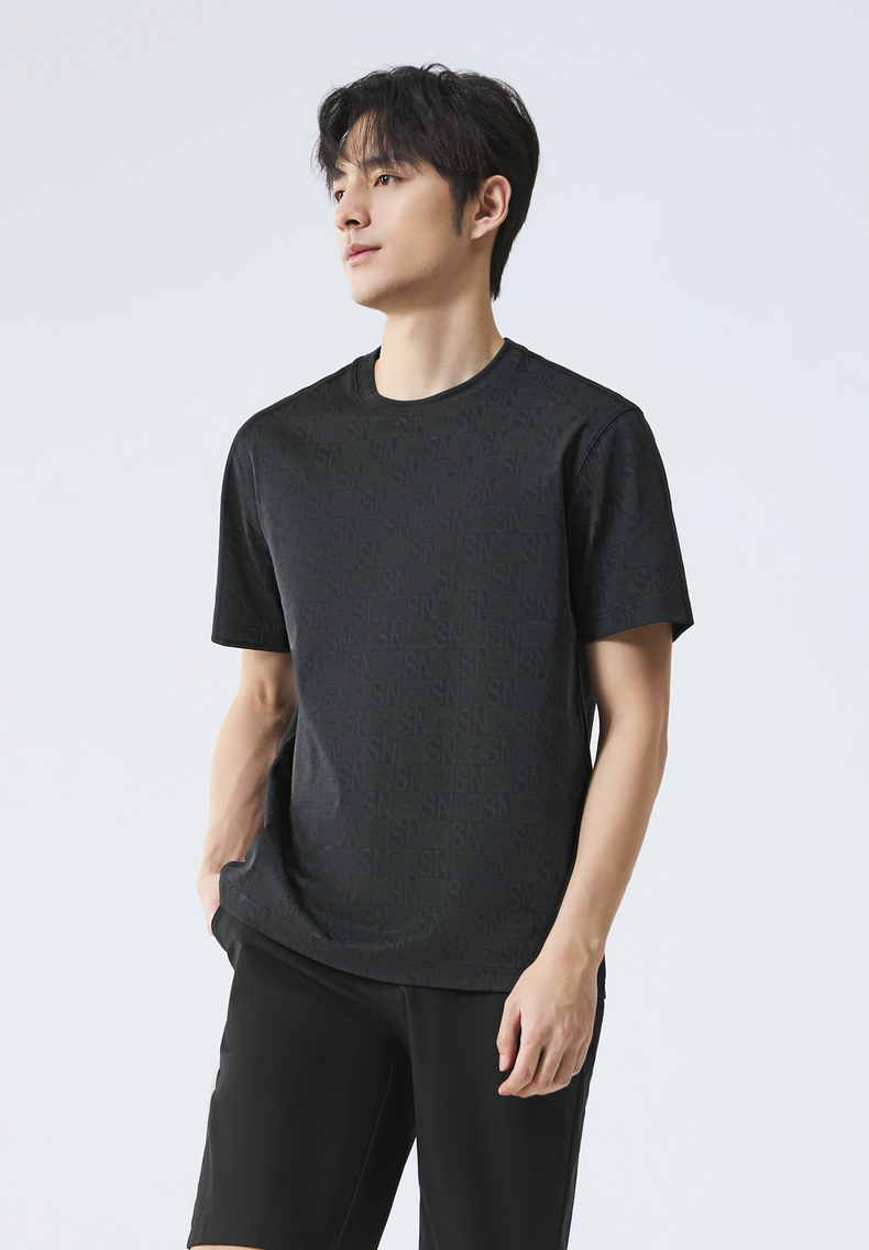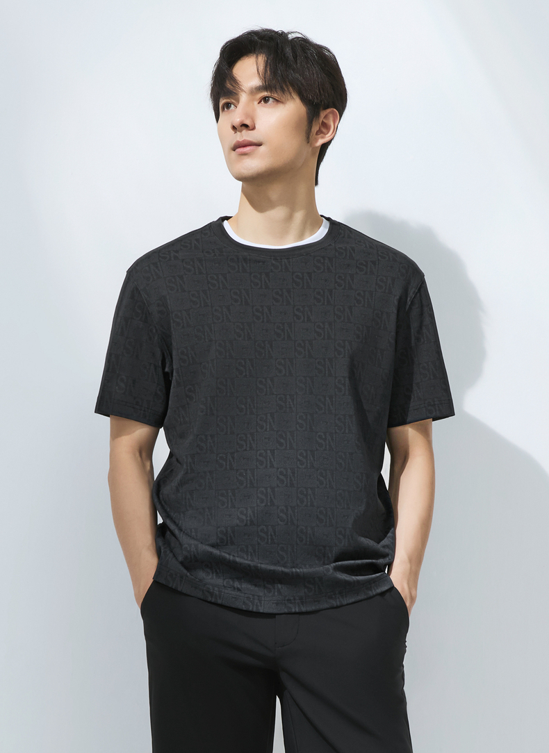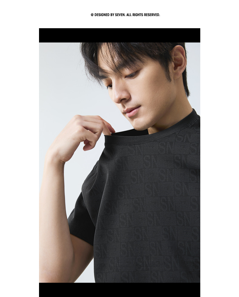 【罗马布/满身印花】柒牌短袖T恤男夏季新款字母满印休闲圆领上衣128T70400