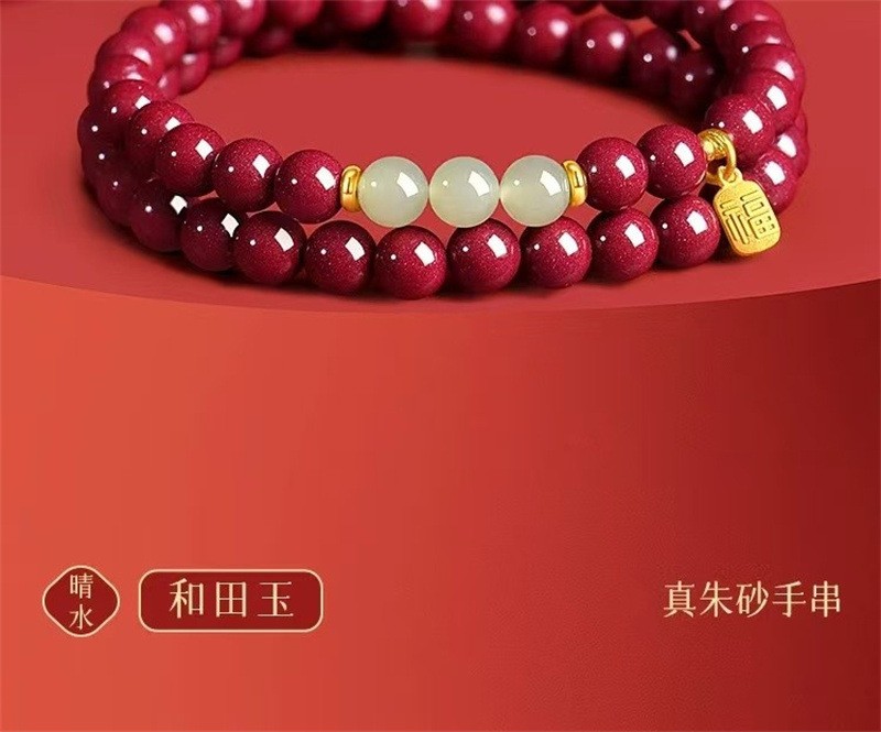 颜值爆表!~2025爆款高品质情绪稳定朱砂和田玉手串,静心,治愈不安情绪