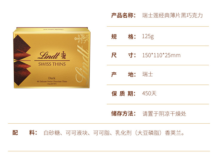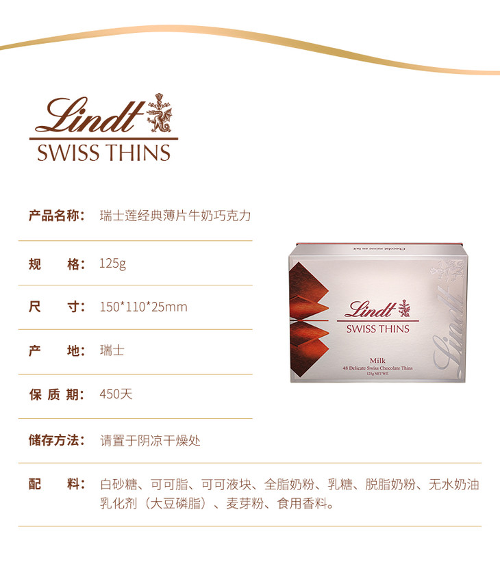 瑞士莲瑞士经典薄片-牛奶/黑巧克力125g 精巧纤薄 香滑浓郁 040195-1/040195-2
