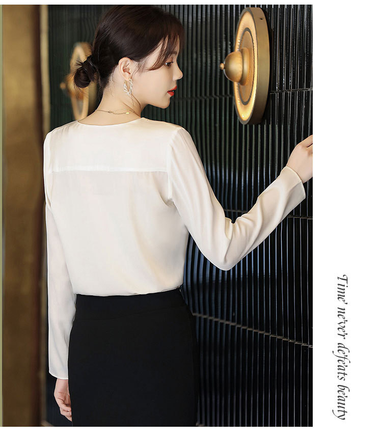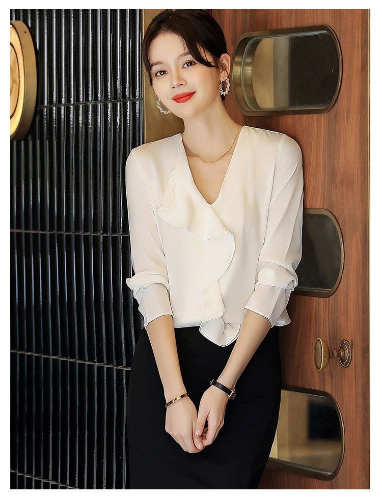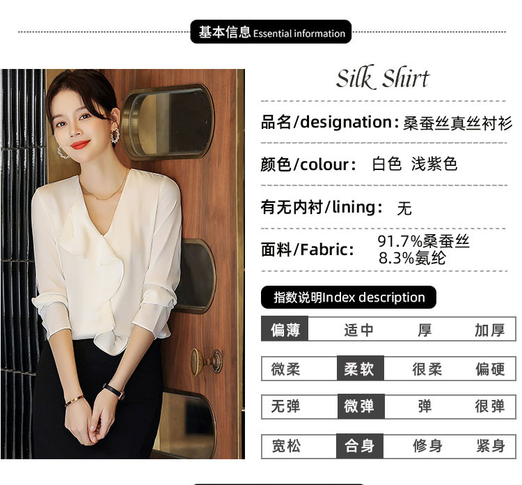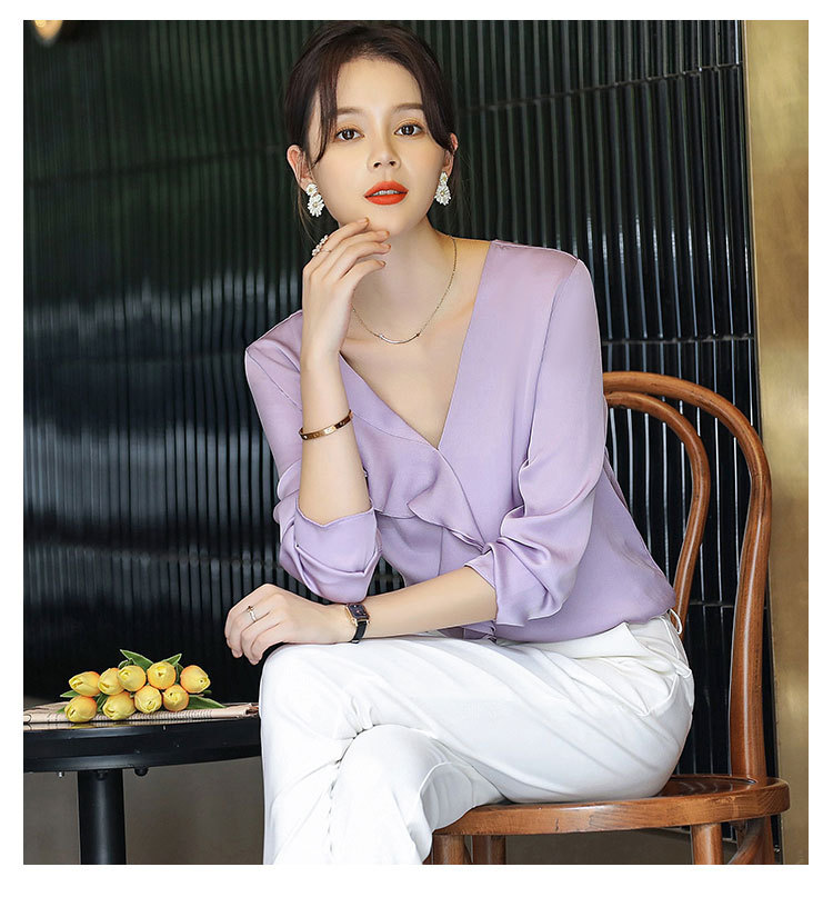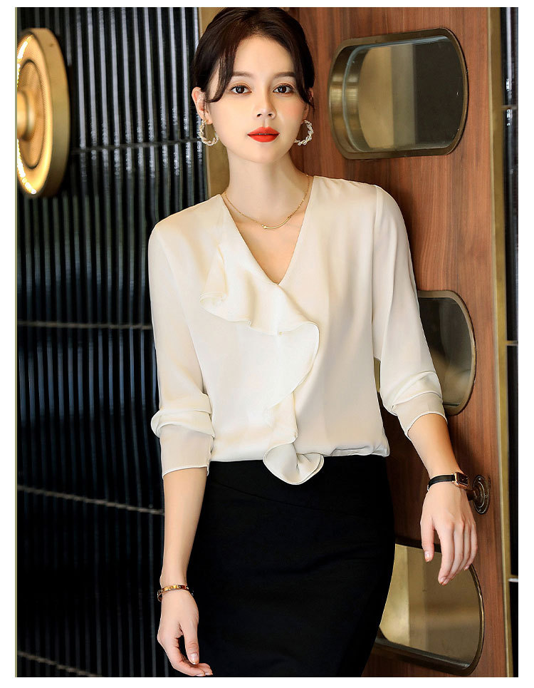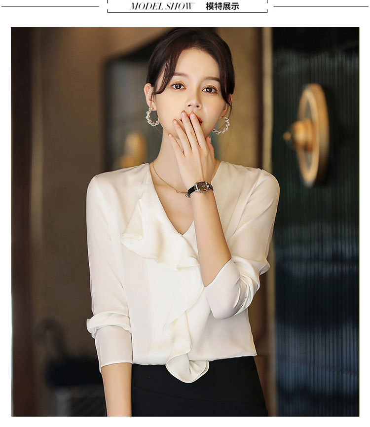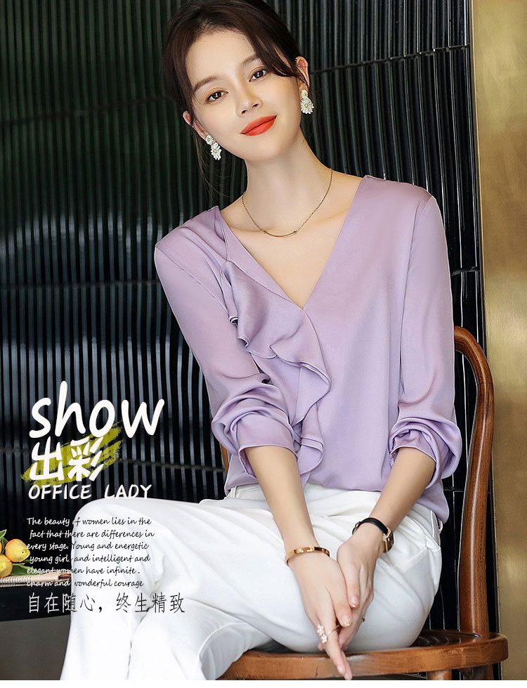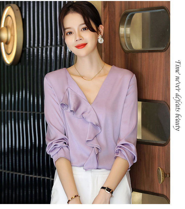 秋装新款,重磅真丝衬衣小衫上衣荷叶边v领长袖桑蚕丝衬衫LS-XZ8210